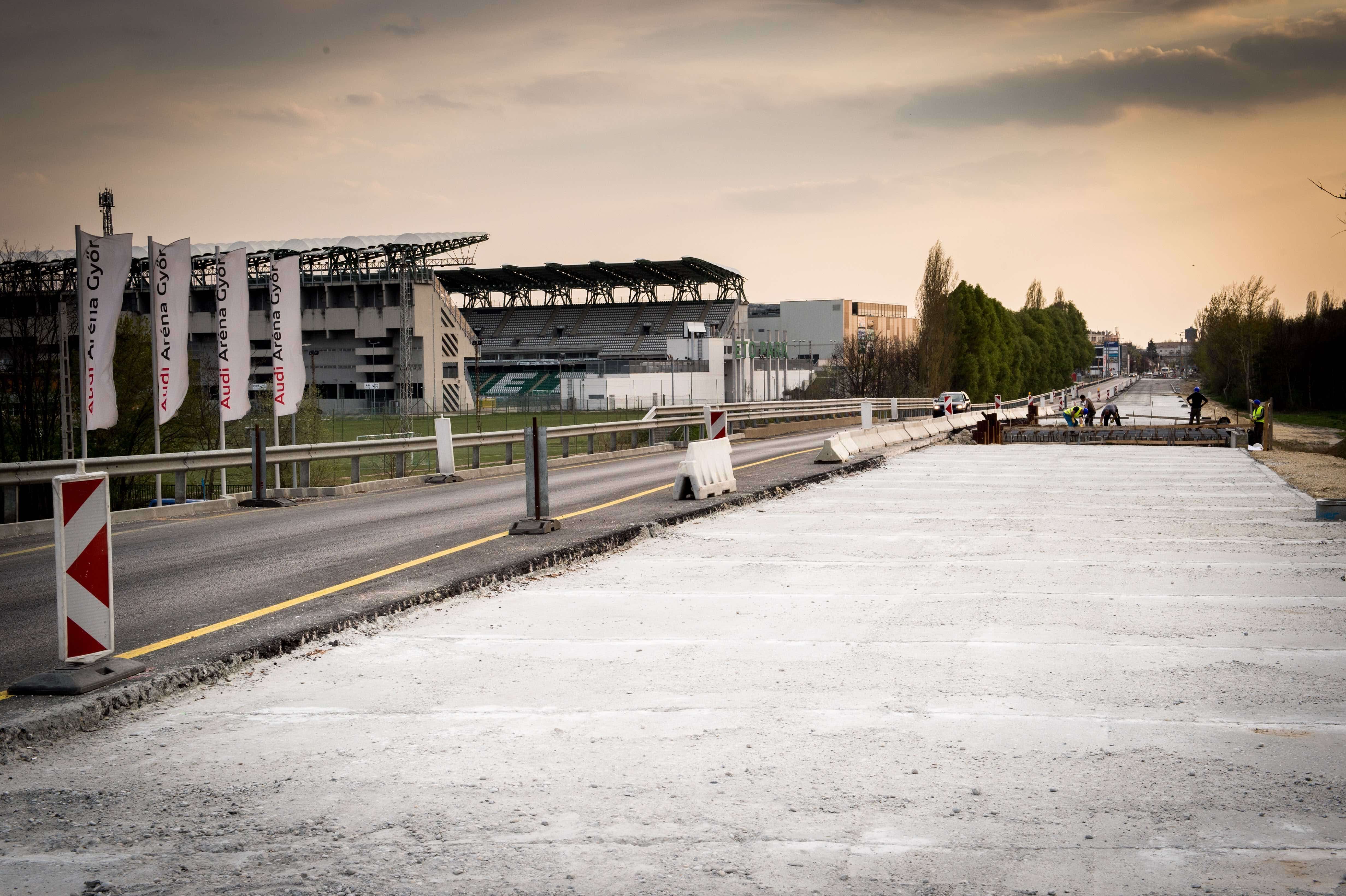 Az Strabag a győri Ipar utcai csomópont és a likócsi körforgalom között mintegy 1 kilométer hosszan dolgozik tavaly nyár óta.