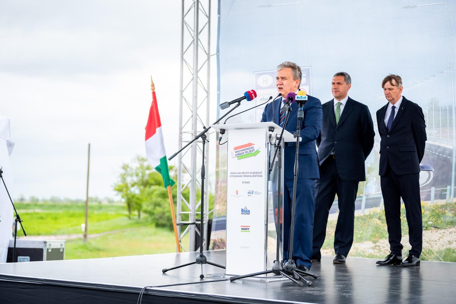 Harminc éve várt beruházást kaptak meg a térségben élők - derült ki a Csongrád megyei nagylaki elkerülőút átadásán, csütörtök délelőtt. Az összesen több mint 5 kilométernyi útszakaszt érintő fejlesztést a Nemzeti Infrastruktúra Fejlesztő Zrt. (NIF) megbízásából a Bács-Kiskun megyei Duna Aszfalt Kft. és Hódút Kft. végezte el fővállalkozóként, a csongrádi Délút Kft. pedig alvállalkozóként vett részt a munkálatokban.