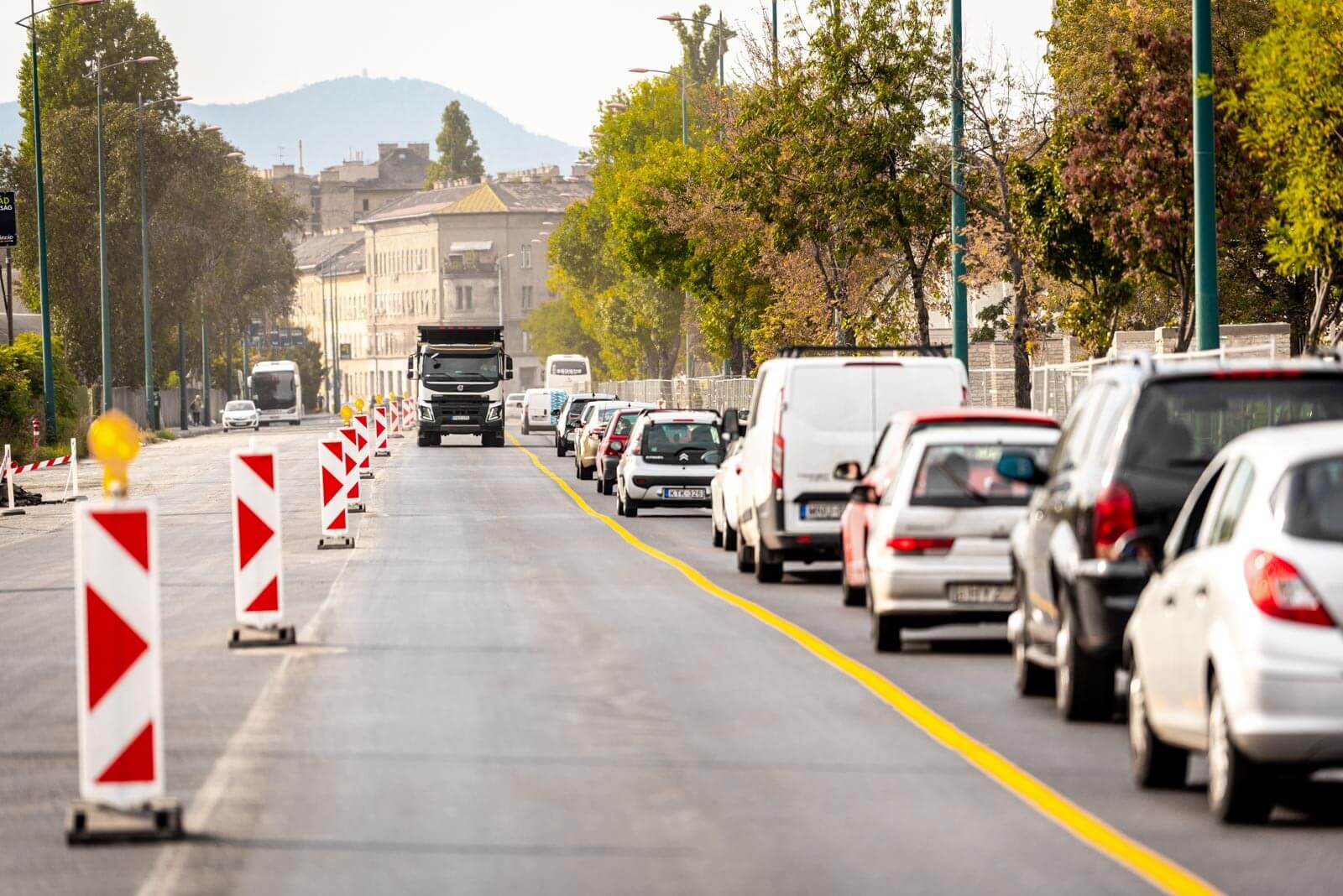 A burkolatfelújítás miatt forgalmi rend változása van érvényben, a 2x2 sávos közlekedés 2x1 sávosra szűkült, a meglévő buszparkolók ugyanúgy megmaradtak, viszont a stadion felőli oldalon végig autós parkolóhelyek lesznek kialakítva, és a forgalmi iránnyal megfelelően mind a két sáv mellett kerékpársávot kap a szakasz.