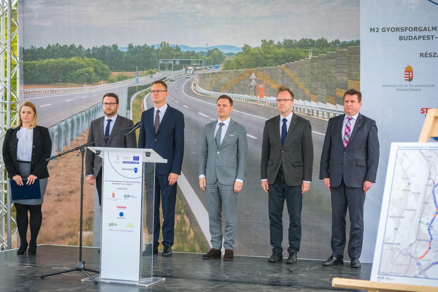 Átadták az M2-es gyorsforgalmi út Budapest és Vác közötti szakaszának 2x2 sávos pályáját közel 20 kilométeren, amely a Strabag kivitelezésében készült el közel 33 milliárd forintból.