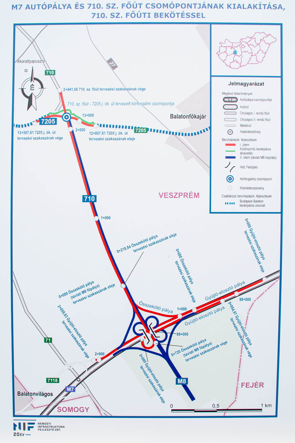 Egy új autópálya-csomópont első ütemét adták át az M7-es autópályán a meglévő 710. számú főút bekötésével. A fejlesztés eredményeként egy Balatonfűzfőt, Balatonakarattyát és Balatonkenesét elkerülő, 2,4 kilométer hosszú, 2x1 sávos új út készült el, a csomópont új gyűjtő- és elosztósávokkal épült meg az M7-es autópálya jobb és bal oldalán. A projekt több mint 7,3 milliárd forintból valósult meg a Duna Aszfalt Kft. és a Hazai Építőgép Társulás Zrt. közös munkávájal.