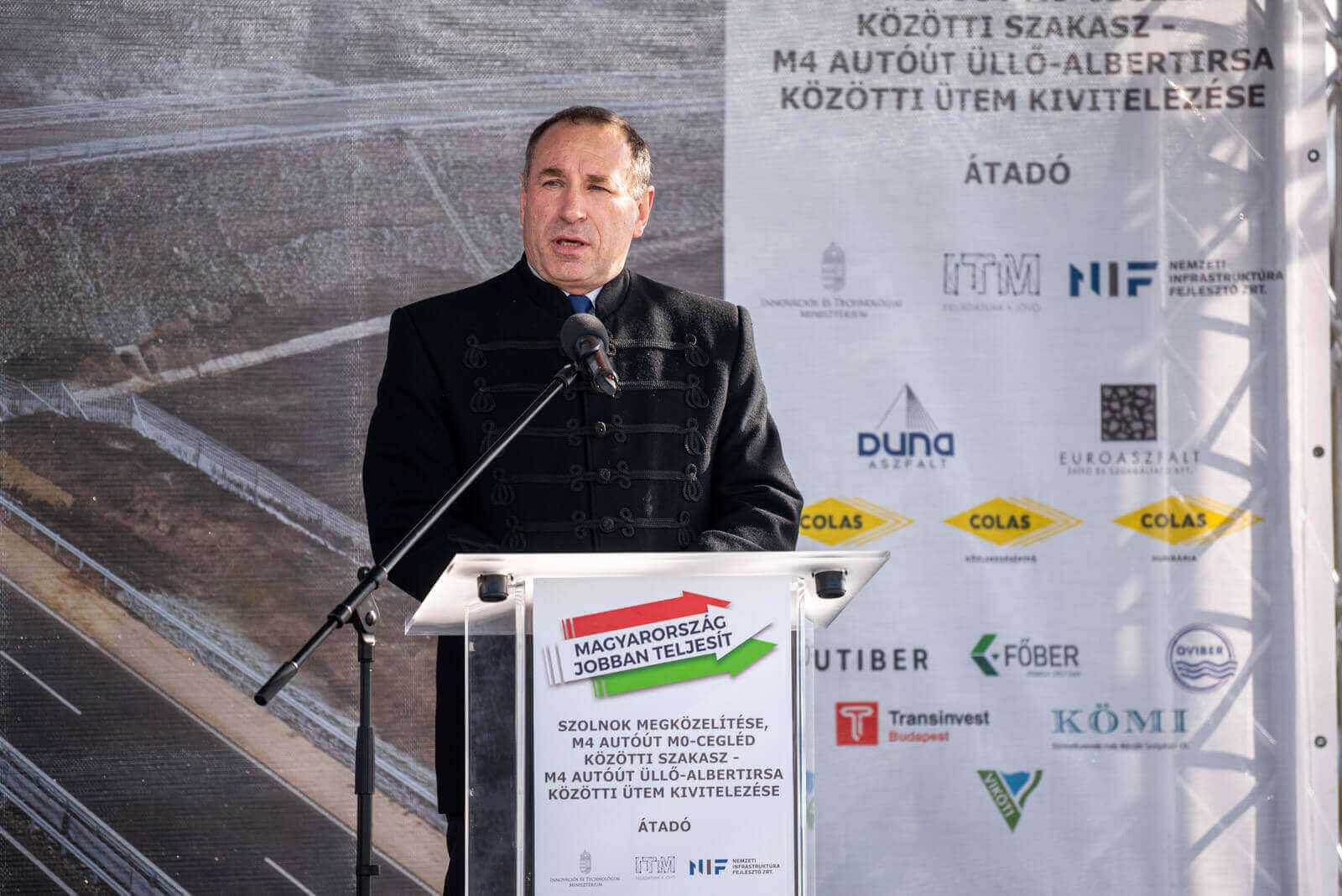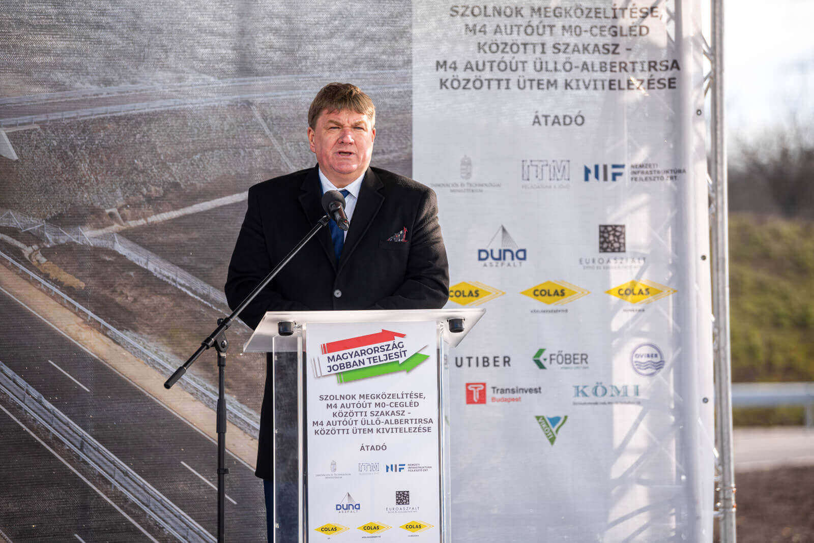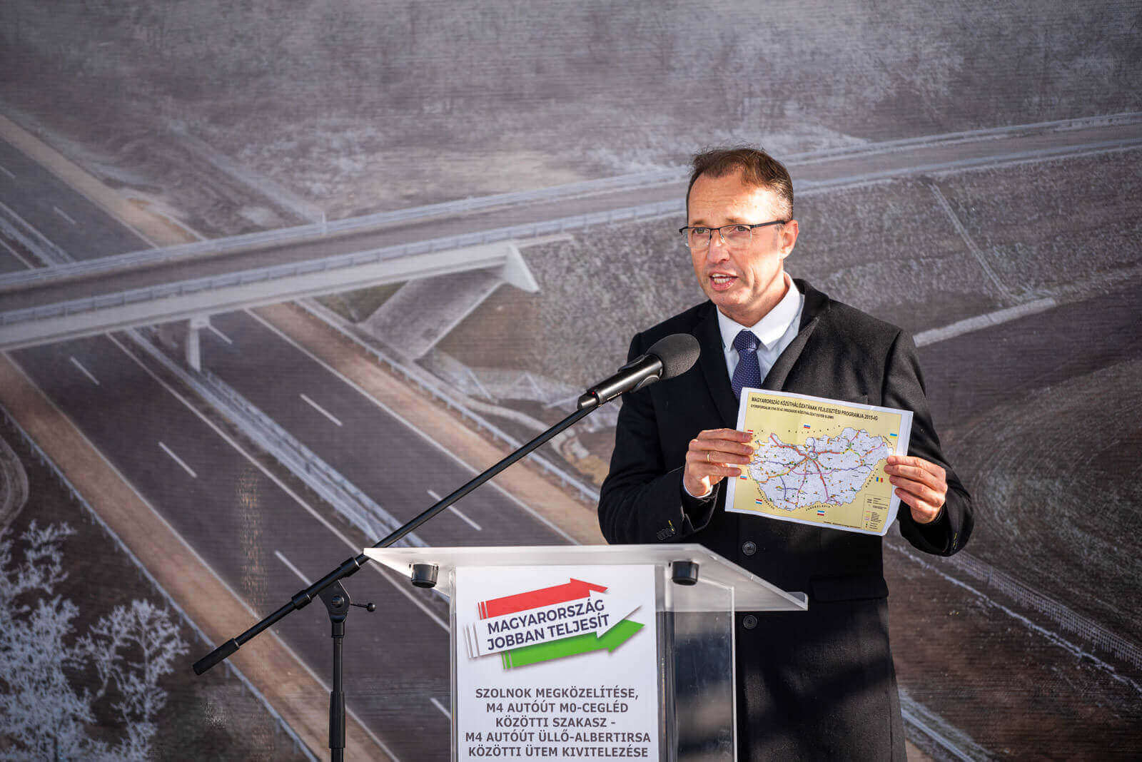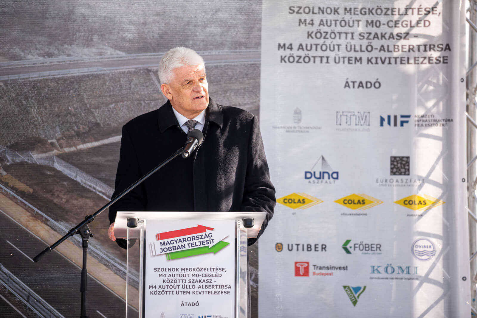 A pénteki átadón az Innovációs és Technológiai Minisztérium (ITM) közlekedéspolitikáért felelős államtitkára is részt vett. Mosóczi László hangsúlyozta, az M4-es autóút fejlesztése mindkét kiemelt kormányzati cél megvalósítását elősegíti. "Beköti a gyorsforgalmi hálózatba Szolnokot, és újabb magas színvonalú közúti összeköttetést létesít Erdély, Románia felé" - fogalmazott az államtitkár.