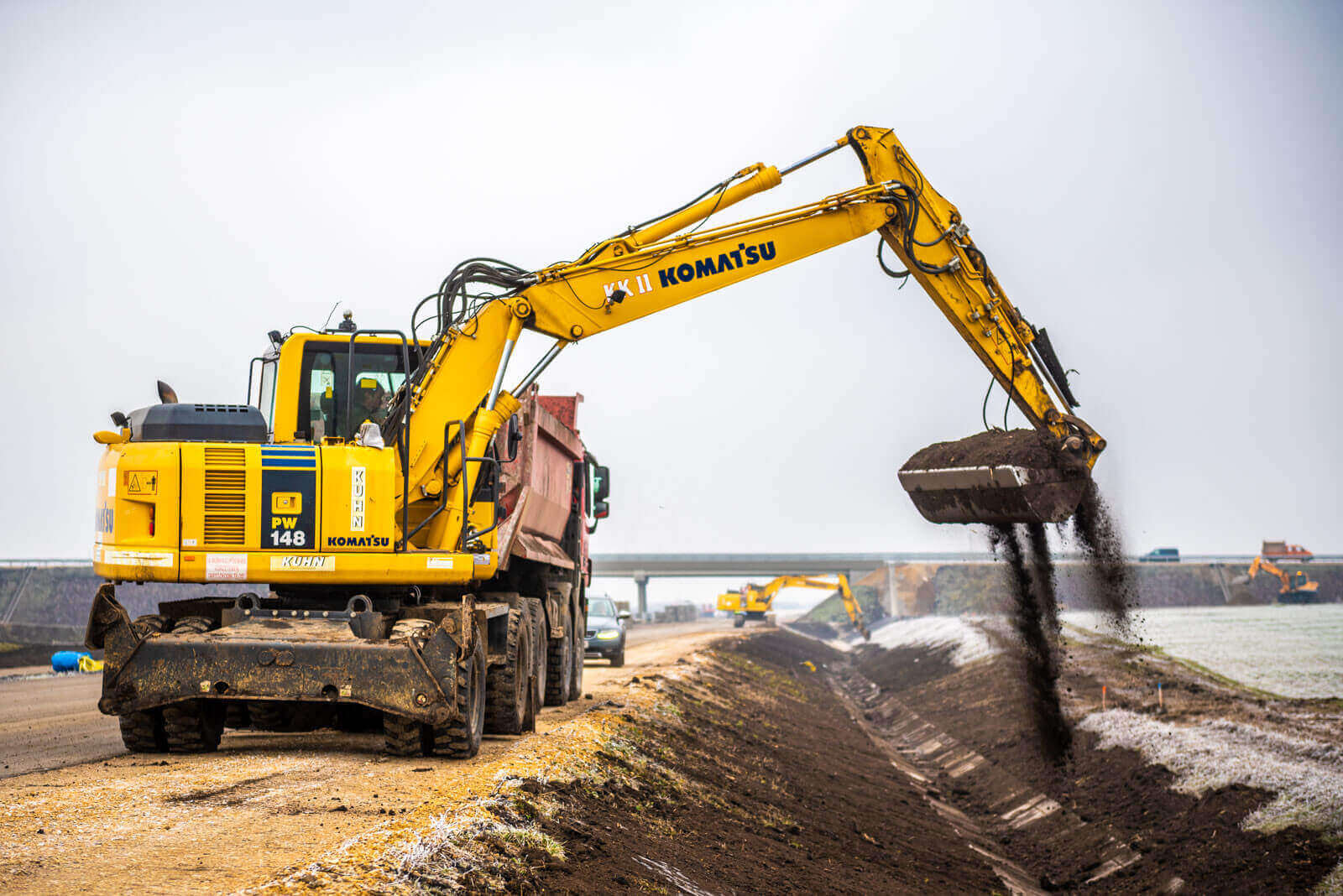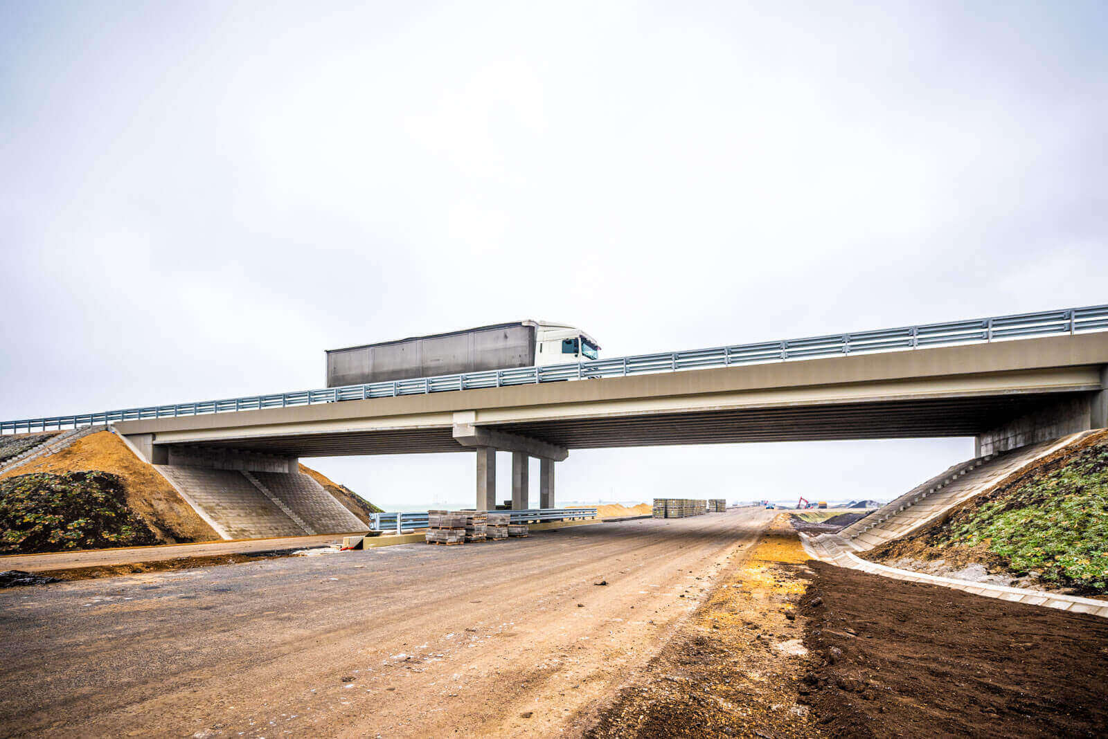 A déli szakaszon elkészültek a nagytömegű földmunkák, és kiépítették a CKT- és az aszfalt alaprétegeket is.