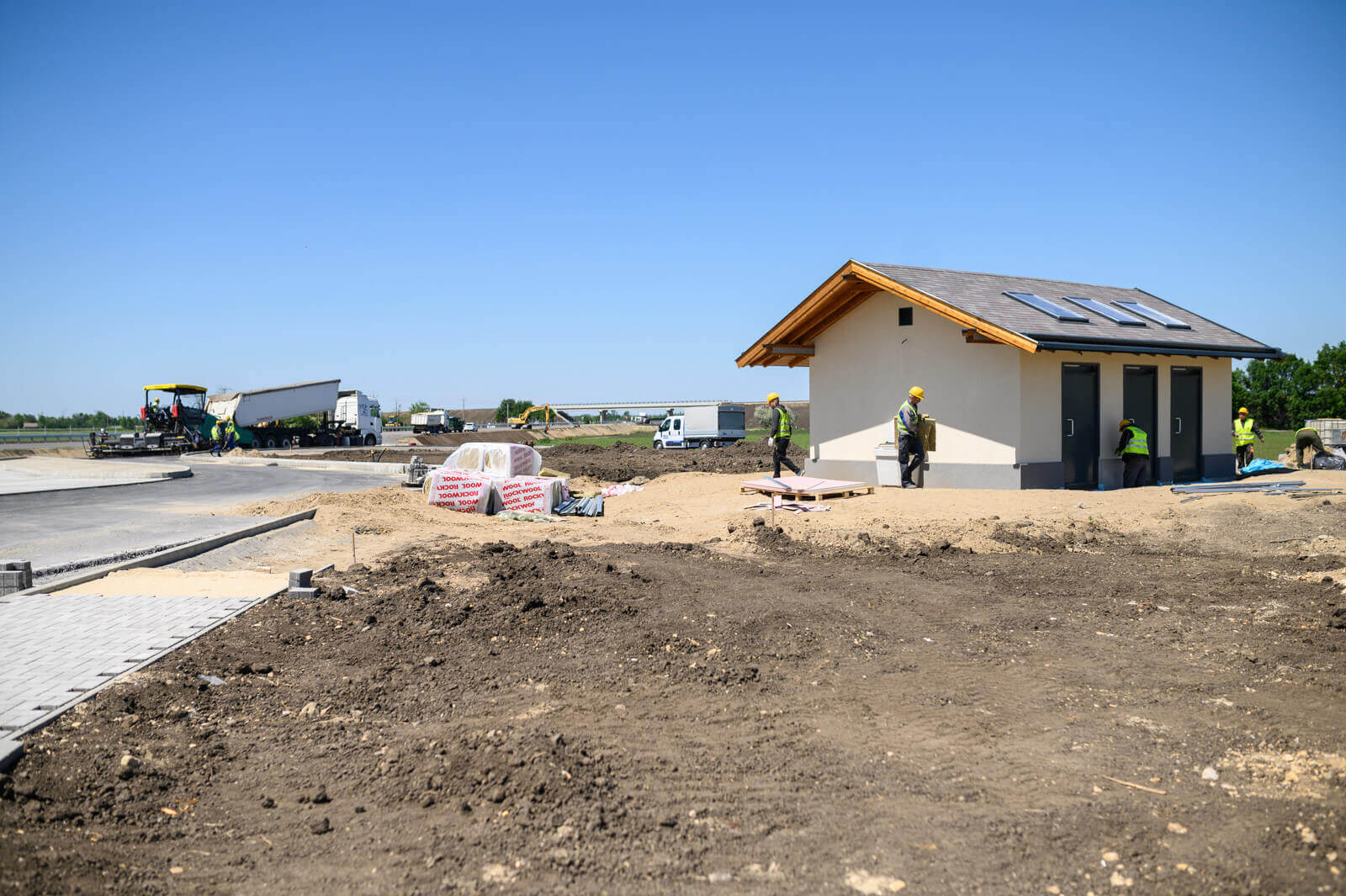 Befejezéshez közeledik továbbá a mosdók épületeinek kialakítása, valamint a belső úthálózat kiépítése. Továbbá a kétsopronyi pihenő létesítése is előrehaladott állapotban van jelenleg, ezek mellett pedig az utólagosan elrendelt D-1 öntözőcsatorna hídépítése a cölöpösszefogó gerendánál tart.