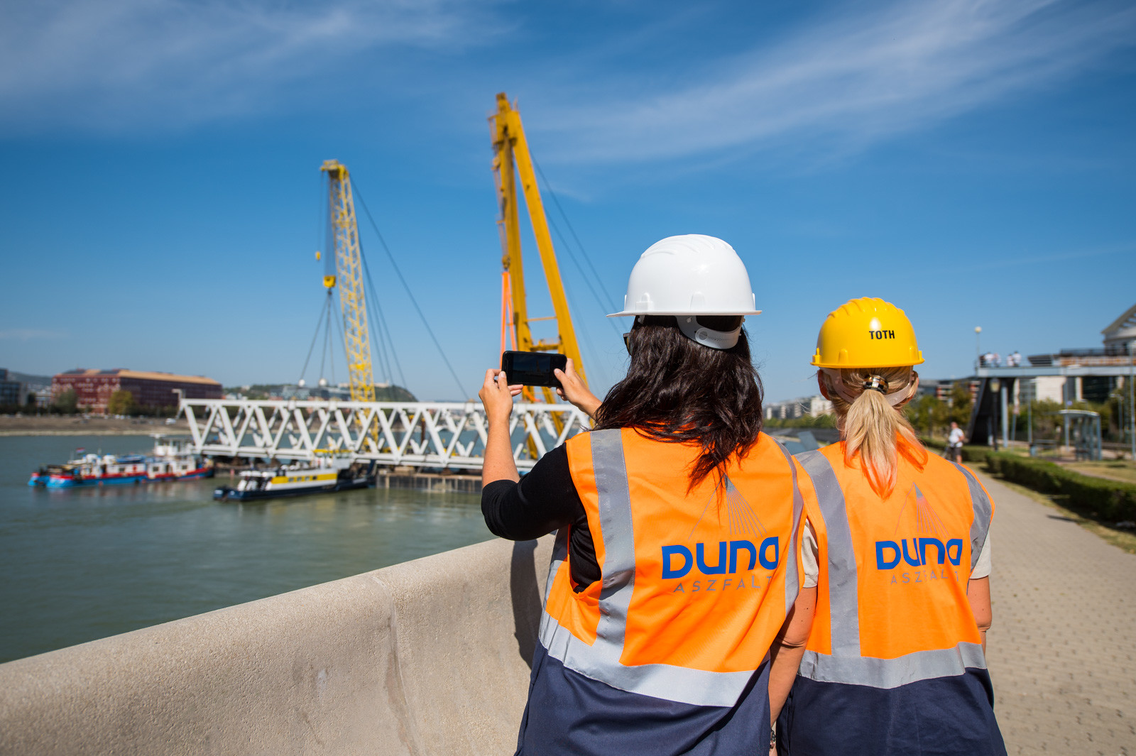 Annak érdekében, hogy az átemelés végrehajtása sikeres legyen, az elmúlt napokban közel 70 ember dolgozott a hídépítés helyszínén és további 65 a csepeli előszerelő területen.