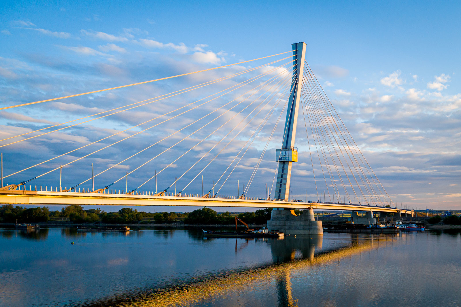 A Monostori híd a Duna legmagasabb hídjaként jött létre. A hétezer tonnás acélszerkezetű híd kétsávos, nehéz járművek és munkagépek is használhatják.