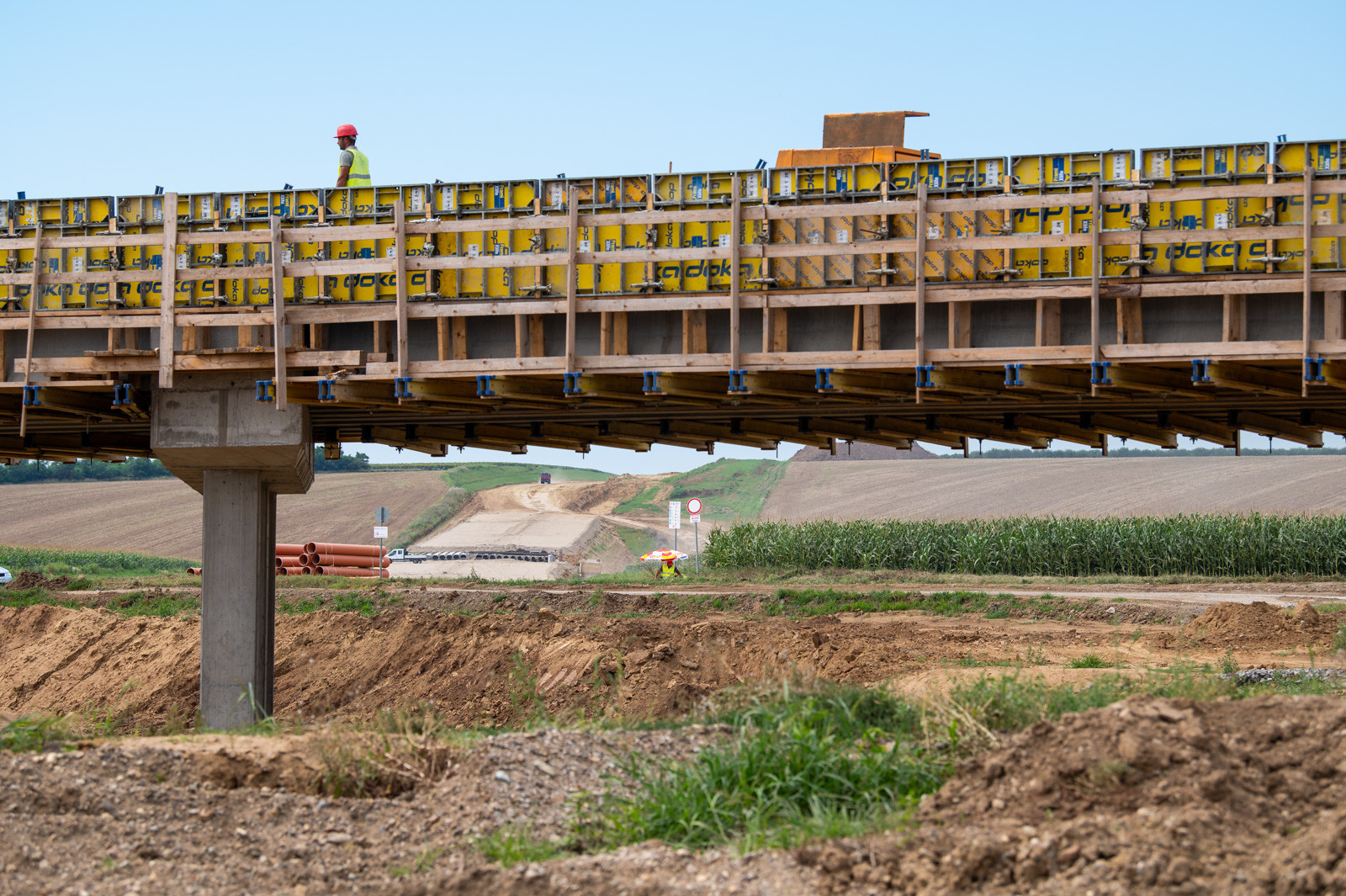 A hidak közül három még az alépítményi munkáknál tart, várható gerendabeemelés ezeken a helyeken novemberben lesz. A többi hídon a legtöbb helyen már a pályalemez is fent van.