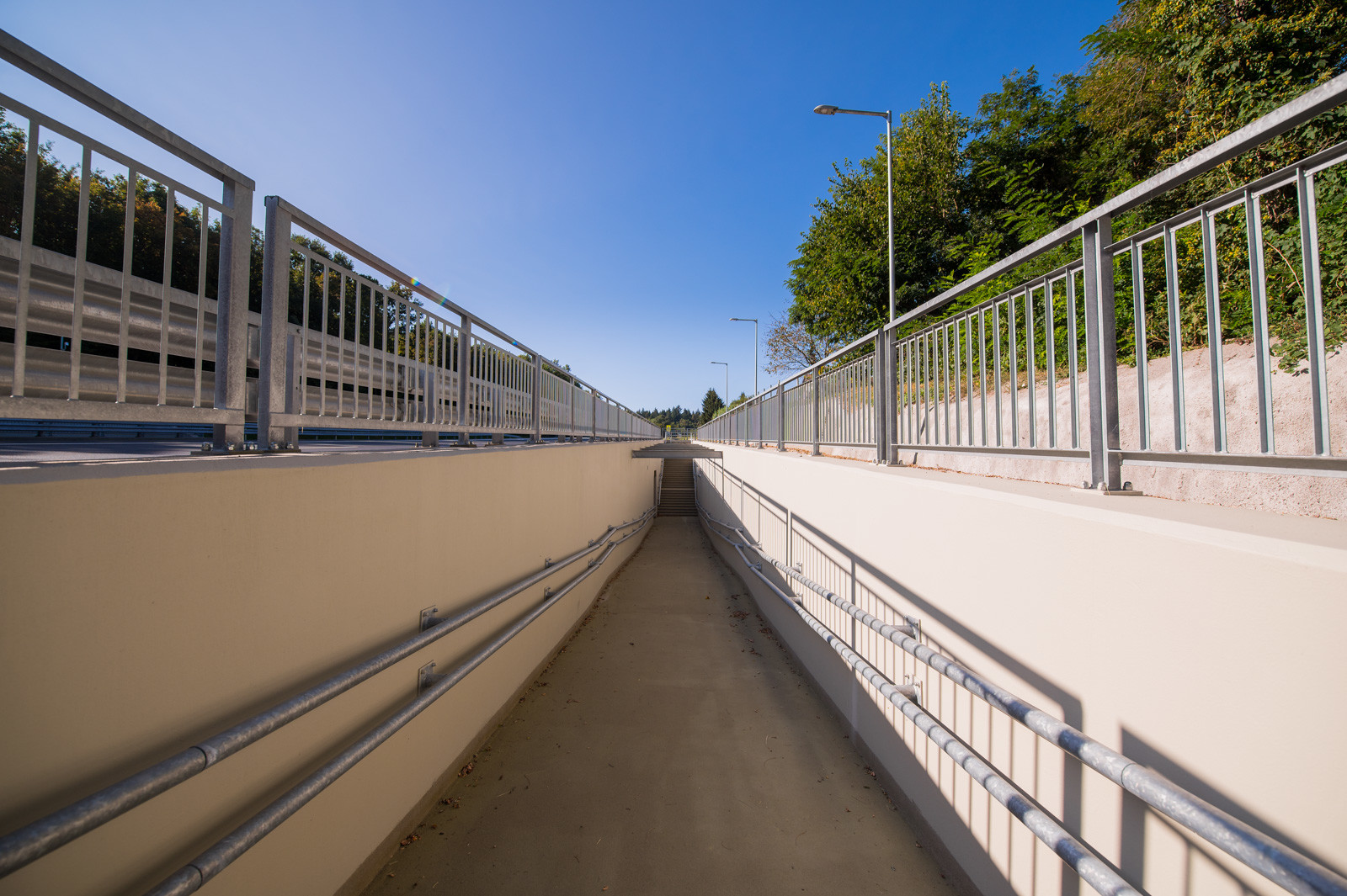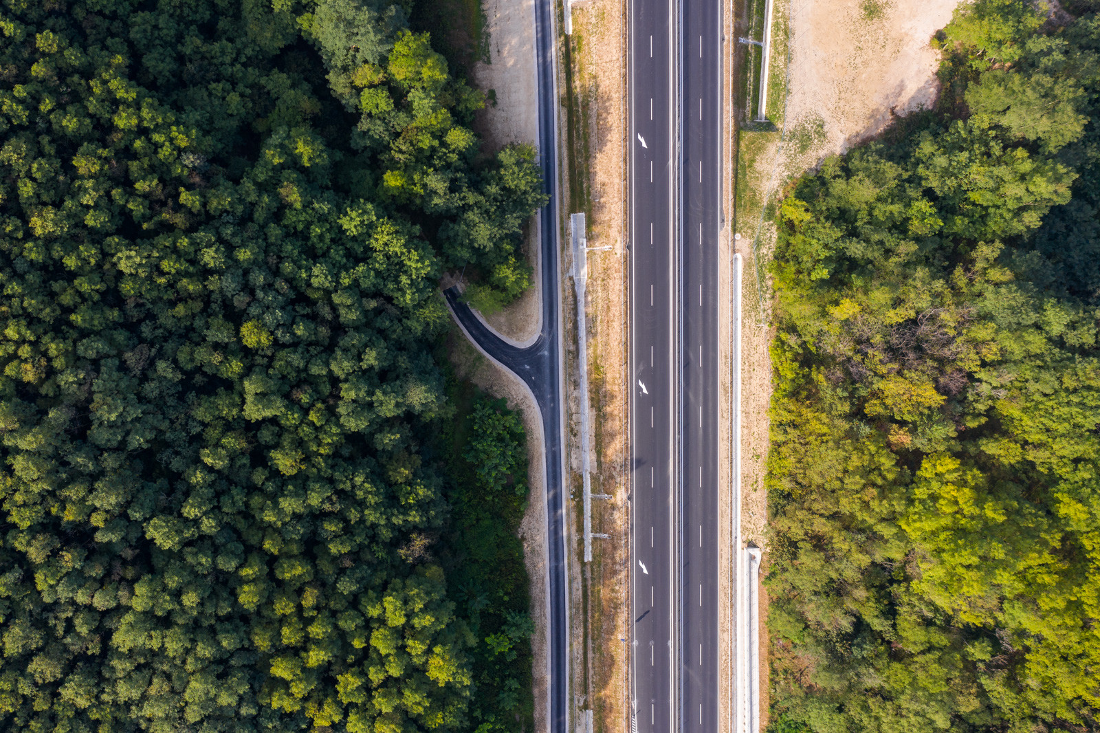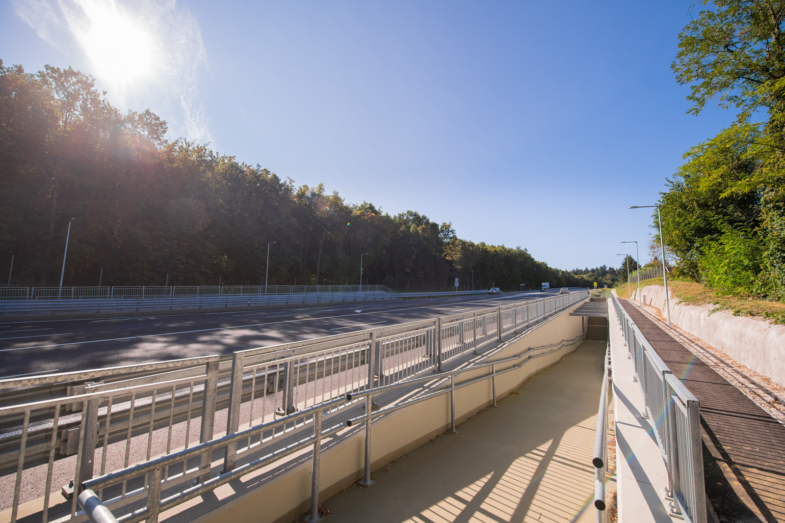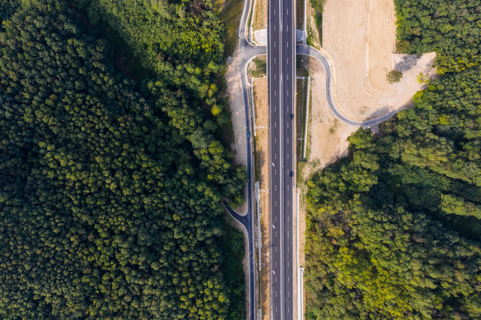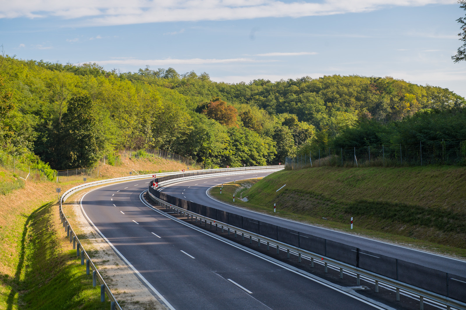 A dombvidéki környezet miatt a 2x2 sávra bővítés nagymértékű bevágások kialakítását indokolta. A bevágások megtámasztására 440 méter hosszon változó magasságú vasbeton hézagos cölöptámfalak épültek. A fejlesztéshez kapcsolódik továbbá egy 850 méter hosszú burkolt szervízút megépítése is.