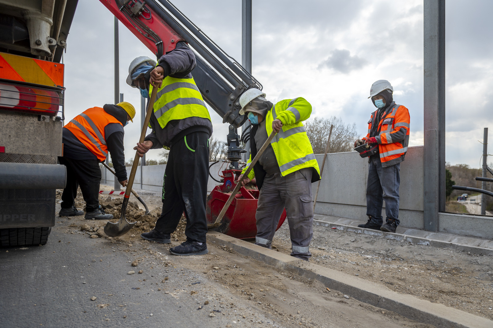 A kivitelező szakemberei és munkásai először egy sávot zártak le és alapozási munkával kezdték a híd projektjének utolsó szakaszát.