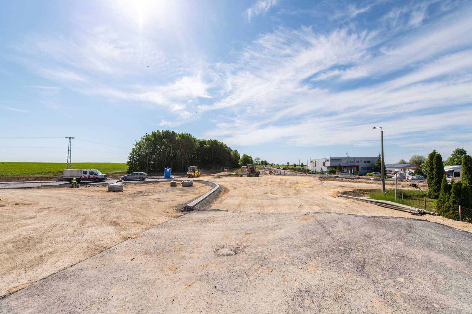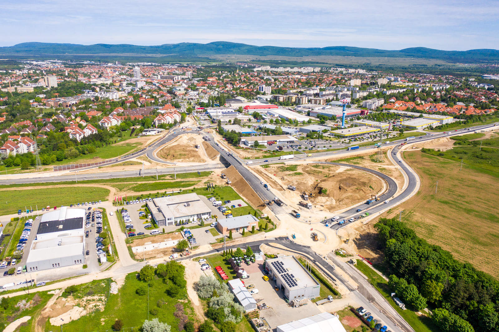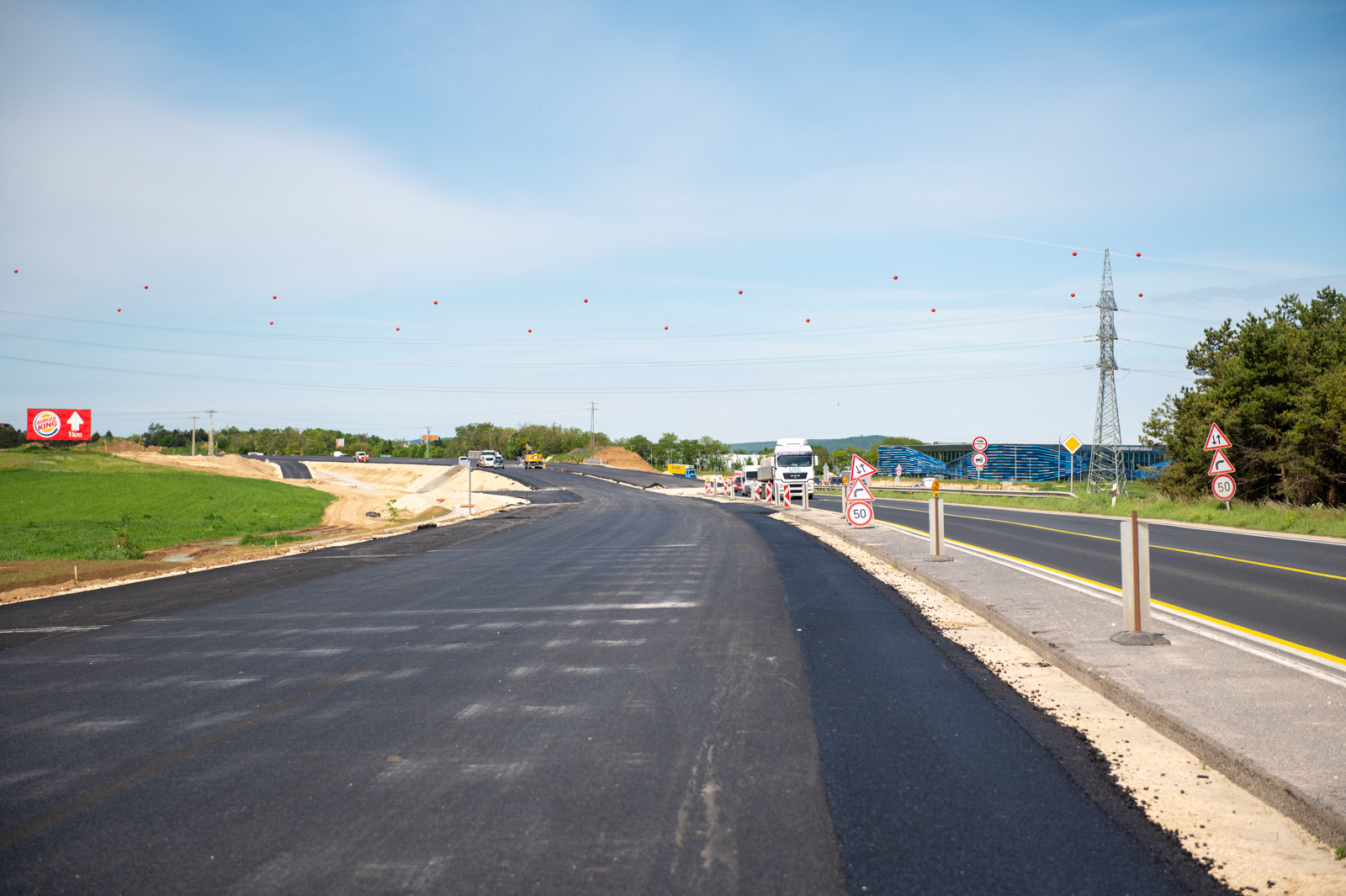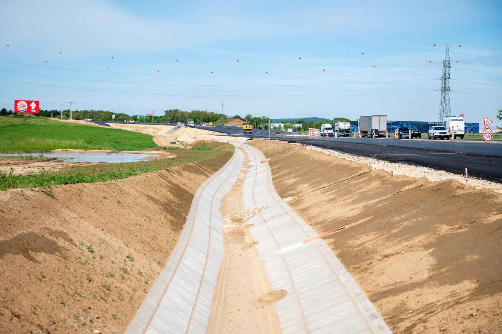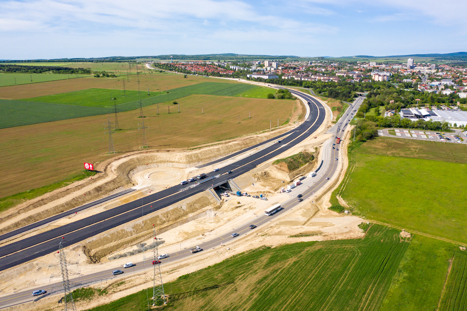 A csomópontban lévő műtárgyon az aszfalt rétegek (alap és kötő) elkészültek, a kopóréteg építése június elején várható.