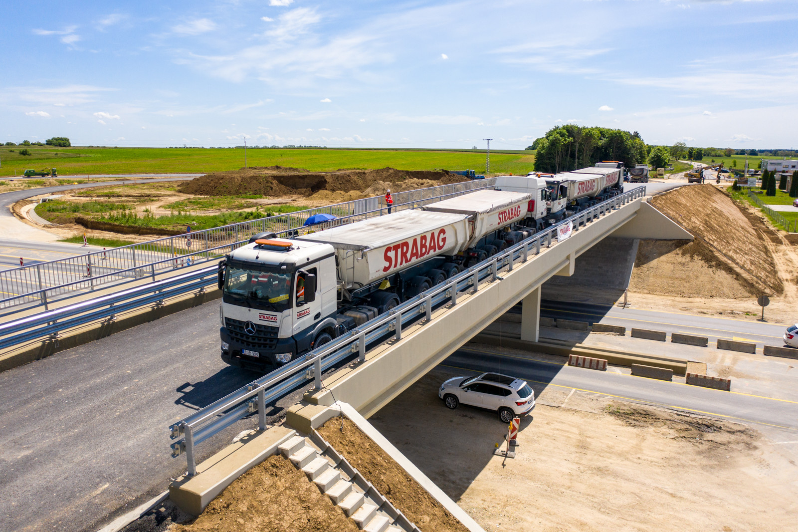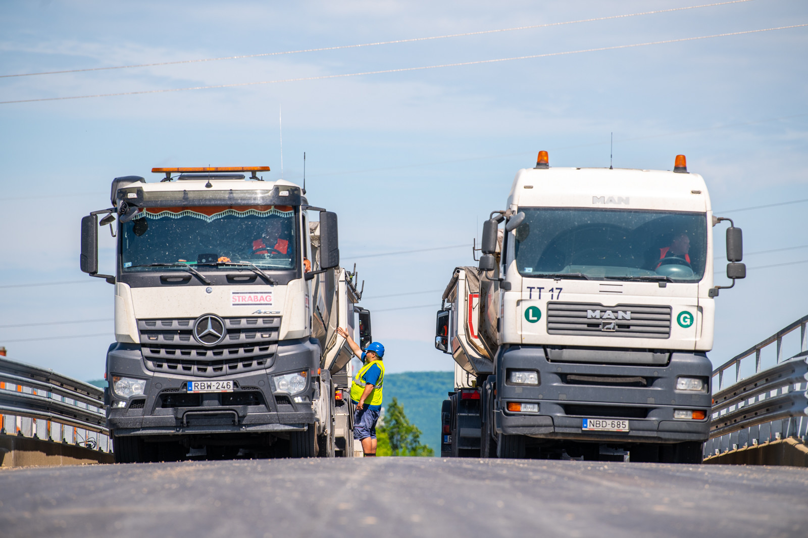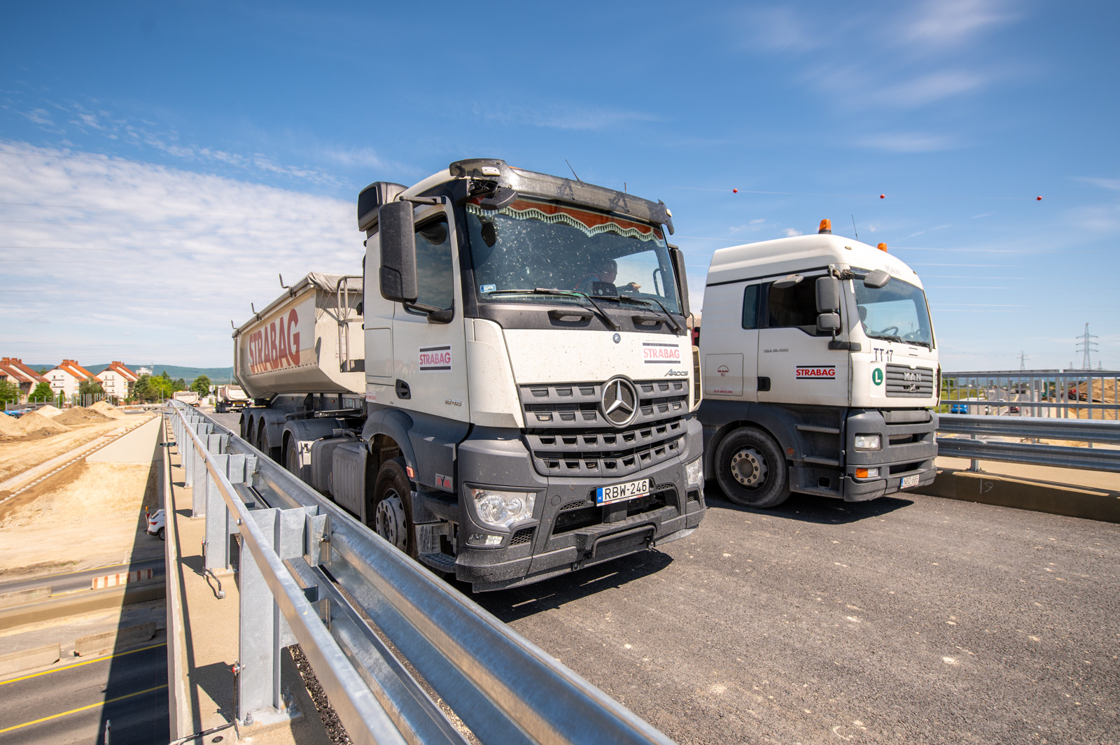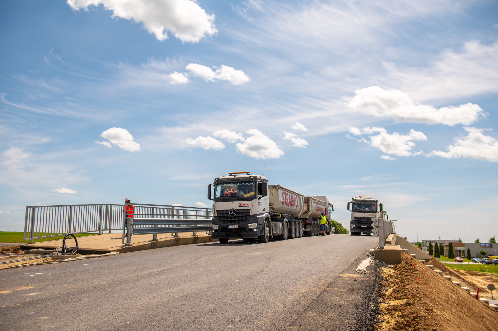 Az Almádi úti csomópontban a híd statikus és dinamikus próbaterhelését négy teherautóval végezték el.