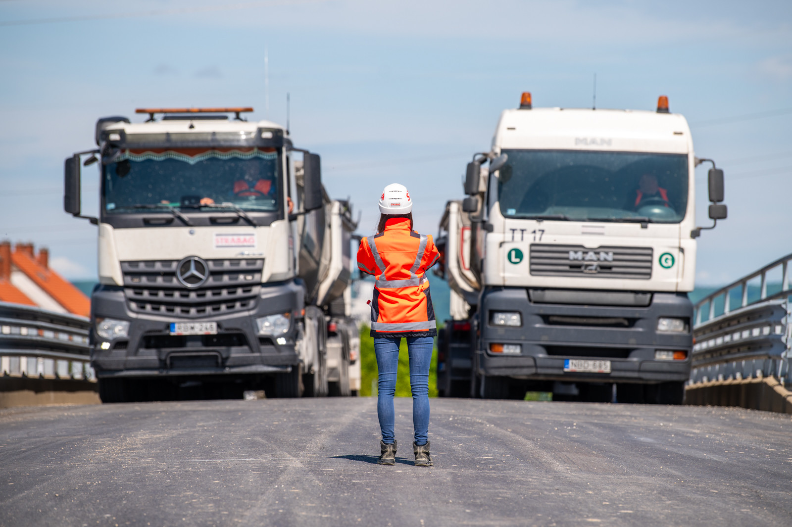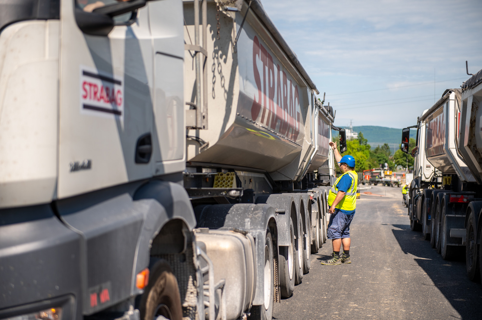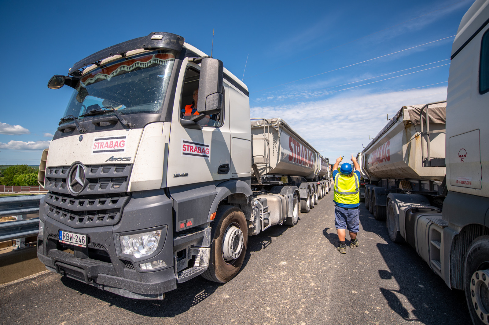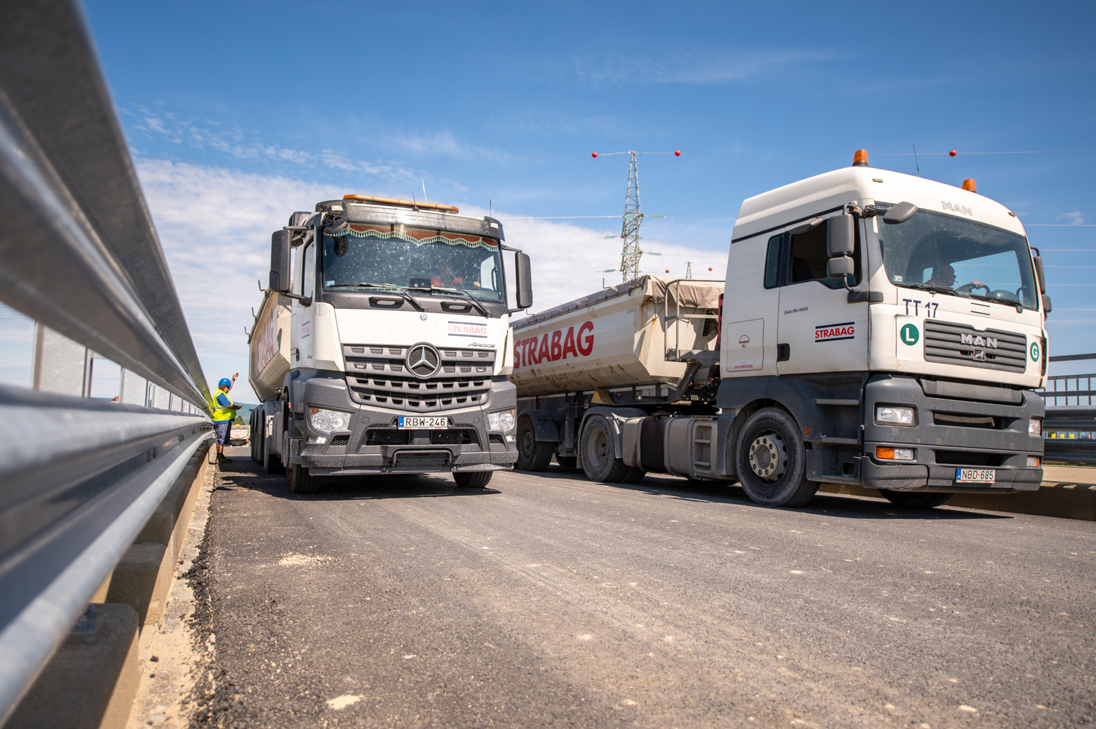 Az Almádi úti csomópontban a híd statikus és dinamikus próbaterhelését négy teherautóval végezték el.