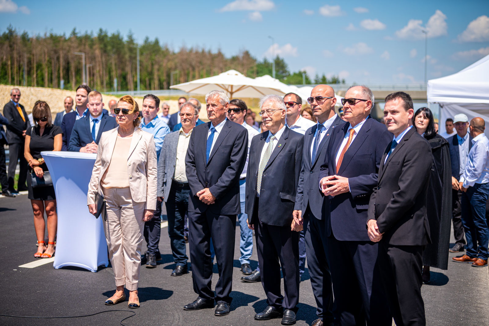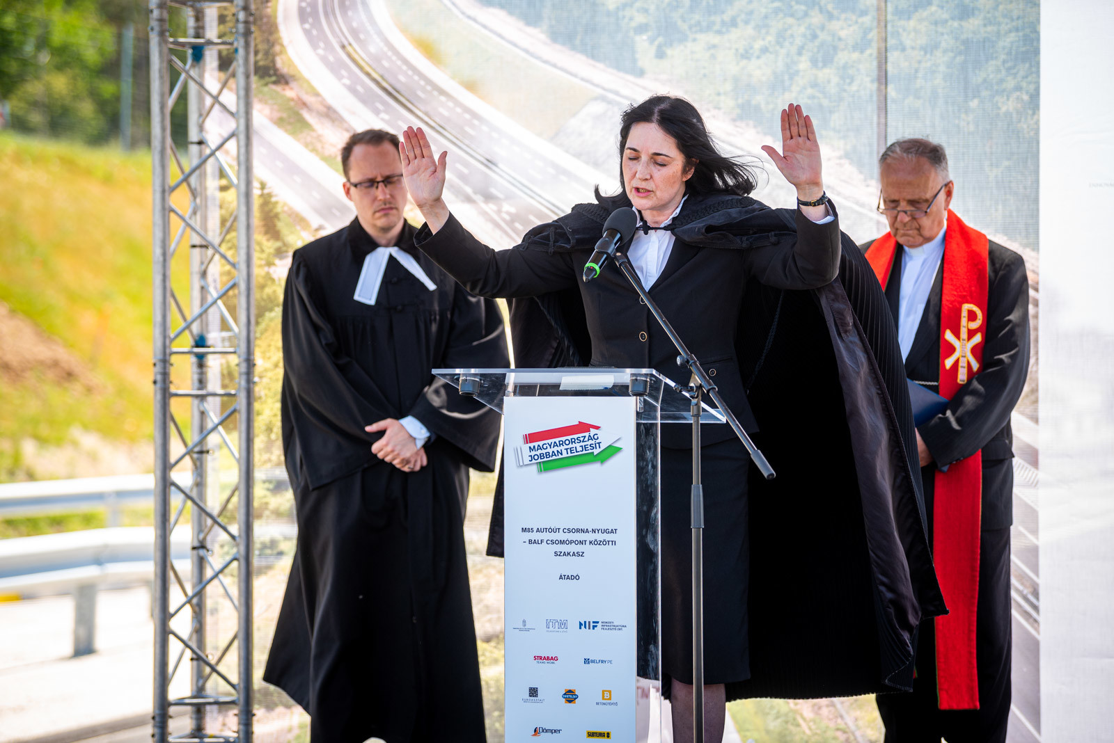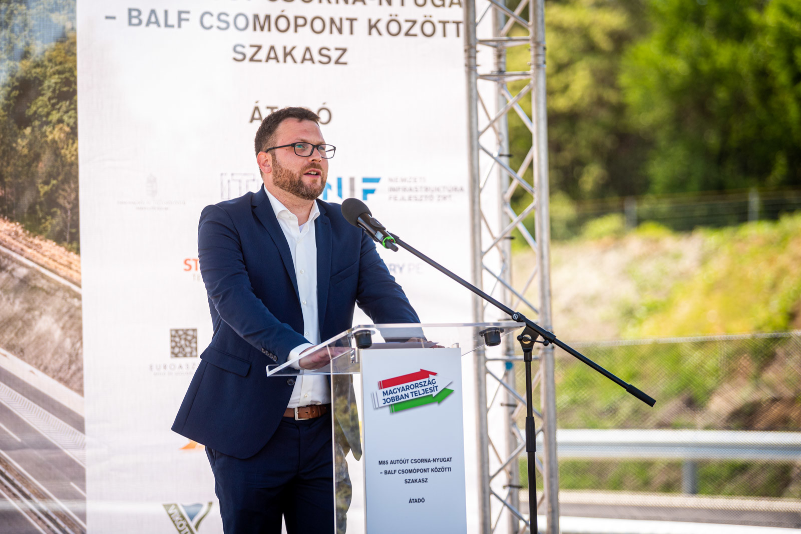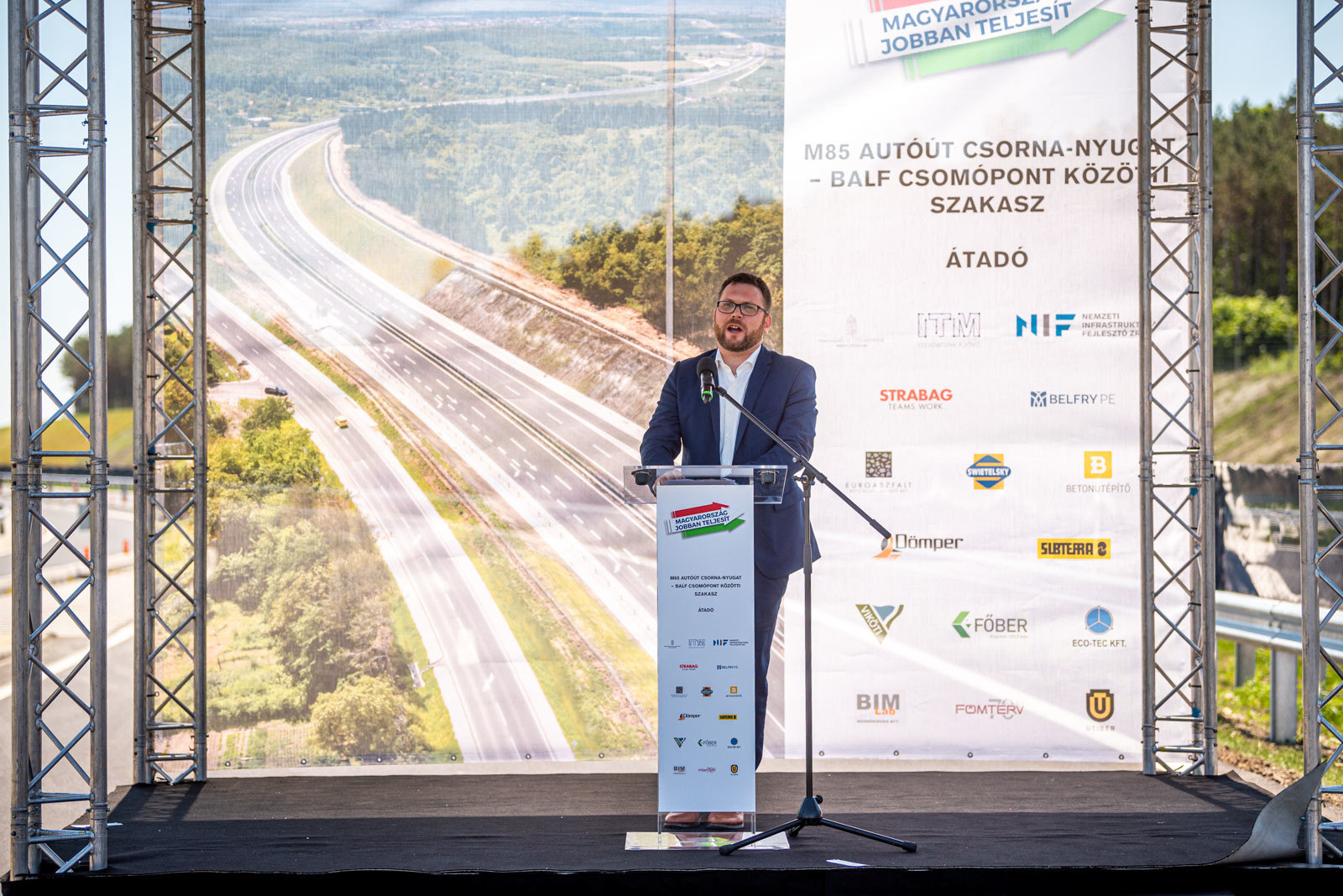 Schanda Tamás, az Innovációs és Technológiai Minisztérium miniszterhelyettese elmondta: „A közlekedési infrastruktúra fejlesztésére nemzeti ügyként tekintünk, országszerte számos helyszínen zajlanak jelenleg is a munkálatok, legyen szó akár vasúti fejlesztésekről, akár útépítésről, -felújításról vagy kerékpáros beruházásokról. A kormány célja, hogy minden megyei jogú várost bekapcsoljunk a gyorsforgalmi hálózatba, hogy bármely településről legfeljebb fél órán belül kényelmesen el lehessen jutni egy négysávos útra, és hogy az autópályák, autóutak elérjenek az országhatárokig. Ma az M85 autóút újabb szakaszát vehetik birtokba az autósok, Sopron színvonalas bekötése mellett már épül az Ausztriáig vezető folytatás is. Közben a meglévő hálózat állapotának javításáról is gondoskodunk, az elmúlt évtizedben hatalmas volumenű munka folyt ezen a téren, 755 milliárd forint értékben újult meg hatezer kilométer útszakasz Magyarországon.”
