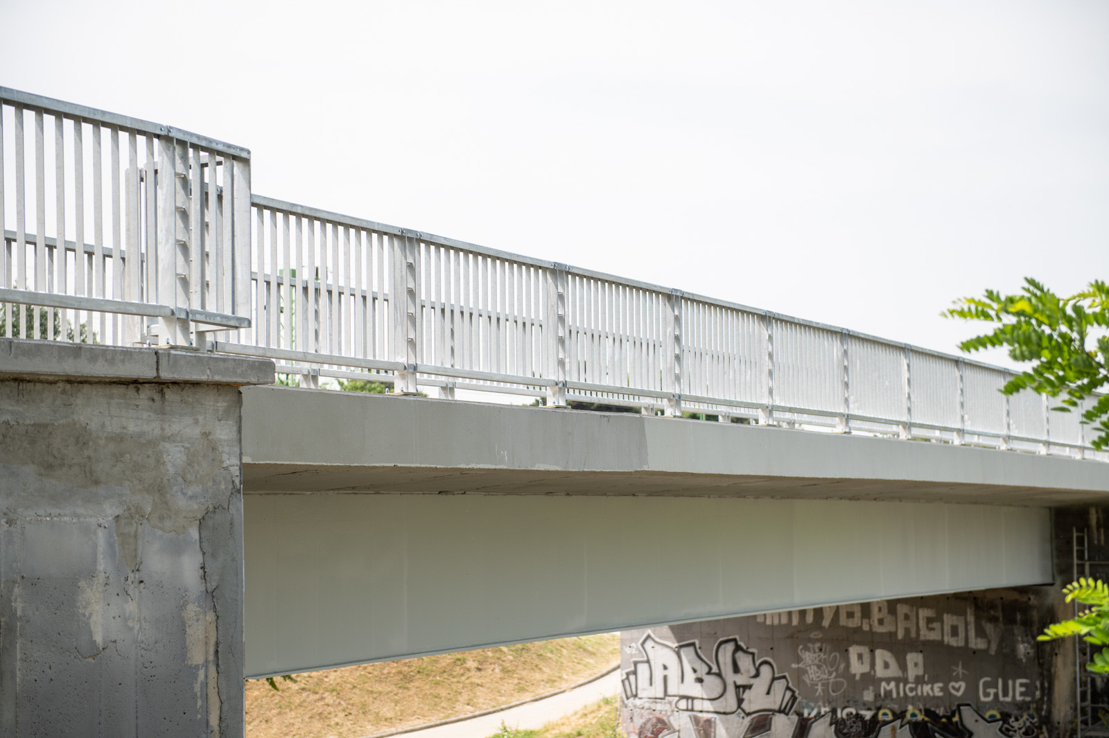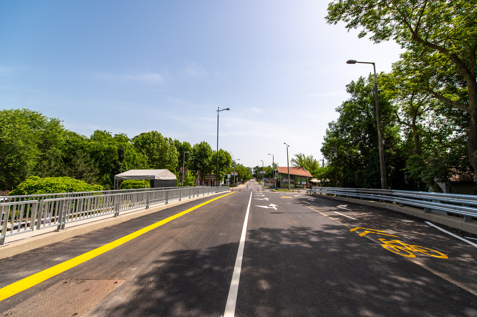 A 145 m hosszú híd (a híd 30 m szabadnyílású, a szárnyfalakkal és támfalakkal együtt 145 m) acéltartóinak korrózióvédelme és a híd szigetelése elkészült, kiépült a szalagkorlát és az aszfalt kopóréteg, emellett a forgalomtechnikai munkák, mint például a burkolati jelek felfestése és a közúti jelzőtáblák kihelyezése is részlegesen megtörtént.