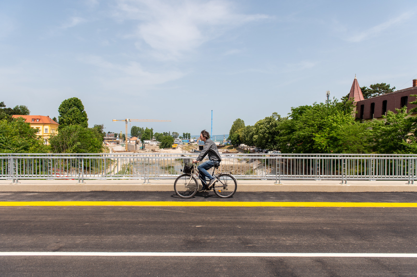 Az eseményen elhangzott: a jelenlegi és a jövőbeli beruházásoknak köszönhetően az egyik legszebb, legbiztonságosabb és legkorszerűbb kerékpáros útja lesz Magyarországnak a balatoni bringakör. A kerékpárosok eddig az autósokkal egy felületen, közösen haladva tudtak átkelni a hídon, a gyalogosok pedig egy elválasztott 2,7 m széles járdán a Balaton felőli oldalon, amelyre csak lépcsőn lehetett feljutni. A híd szélességének újraosztásával a gépjárművek forgalmi sávja mellett, attól elválasztott, kétoldali és irányhelyes kerékpársávot alakítottak ki.