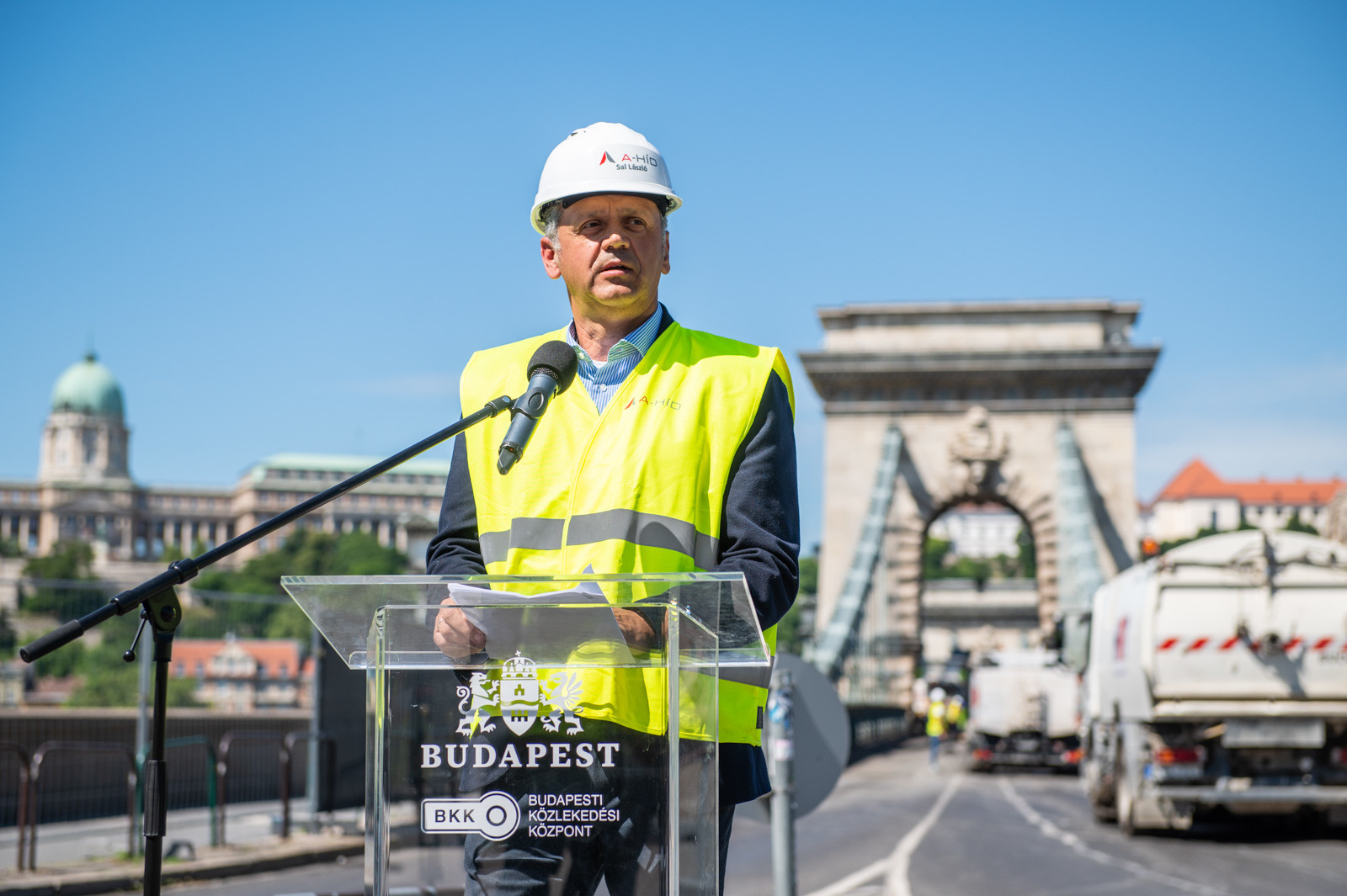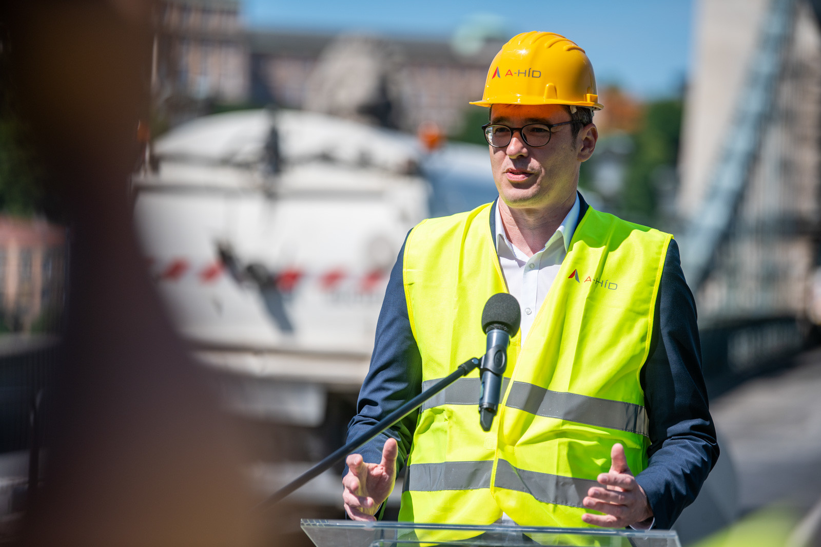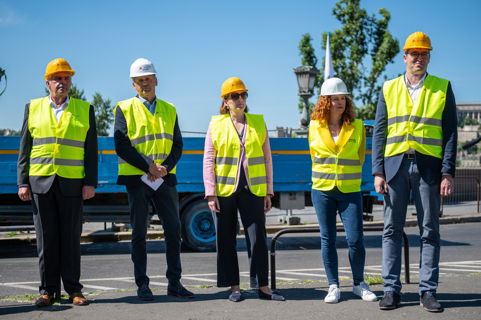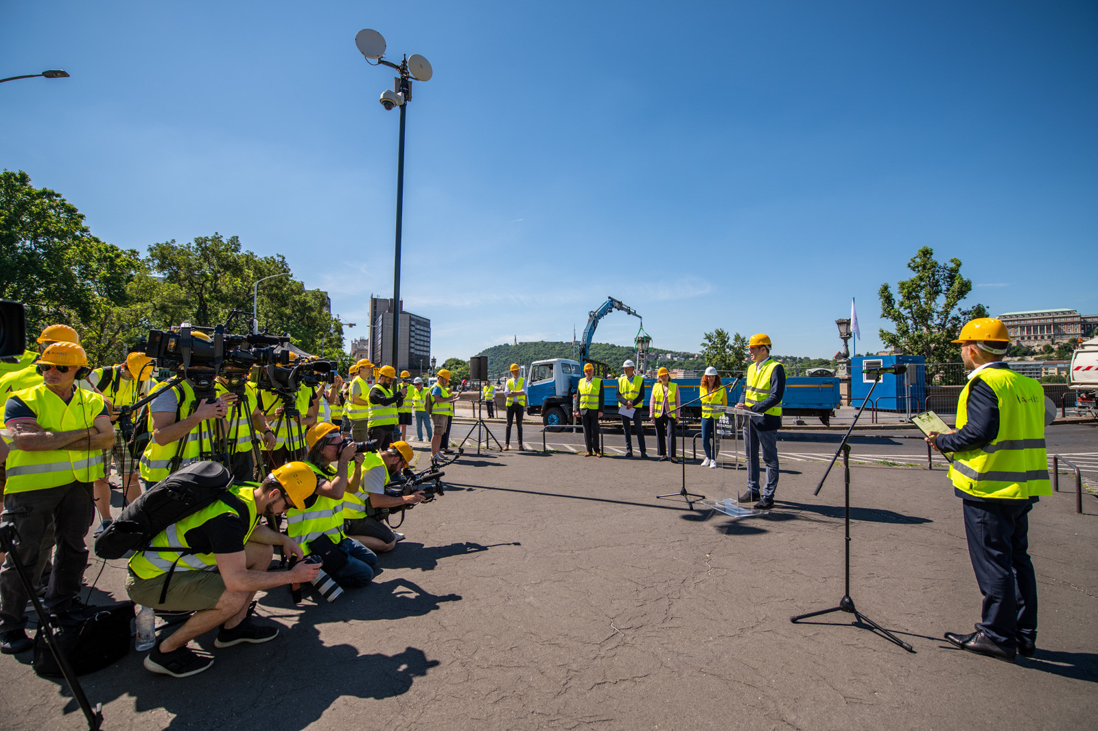 Sal László kitért a projekt részleteire is. „Nagy nap ez a mai, elkezdődik a beruházás igazi, érdemi része, az elmúlt hónapokban ugyanis előkészítési munkák folytak. Megépítettünk 7000 négyzetméter olyan állványt, amelynek a súlya 100 tonna, ezt a kollégák gyakorlatilag kézzel hordták be a hídszerkezet alá, ugyanis csak a járdákat zártuk le erre a 3 hónapra, illetve a kerékpáros aluljárót. Folyik a tervezése és a gyártása is annak a daru rendszernek, ami a hídon fog elhelyezkedni. Jelenleg folyik az aszfalt felmarása, ma ezzel végzünk is, ezután elkezdődik a díszvilágítás és a kandeláberek bontása is."