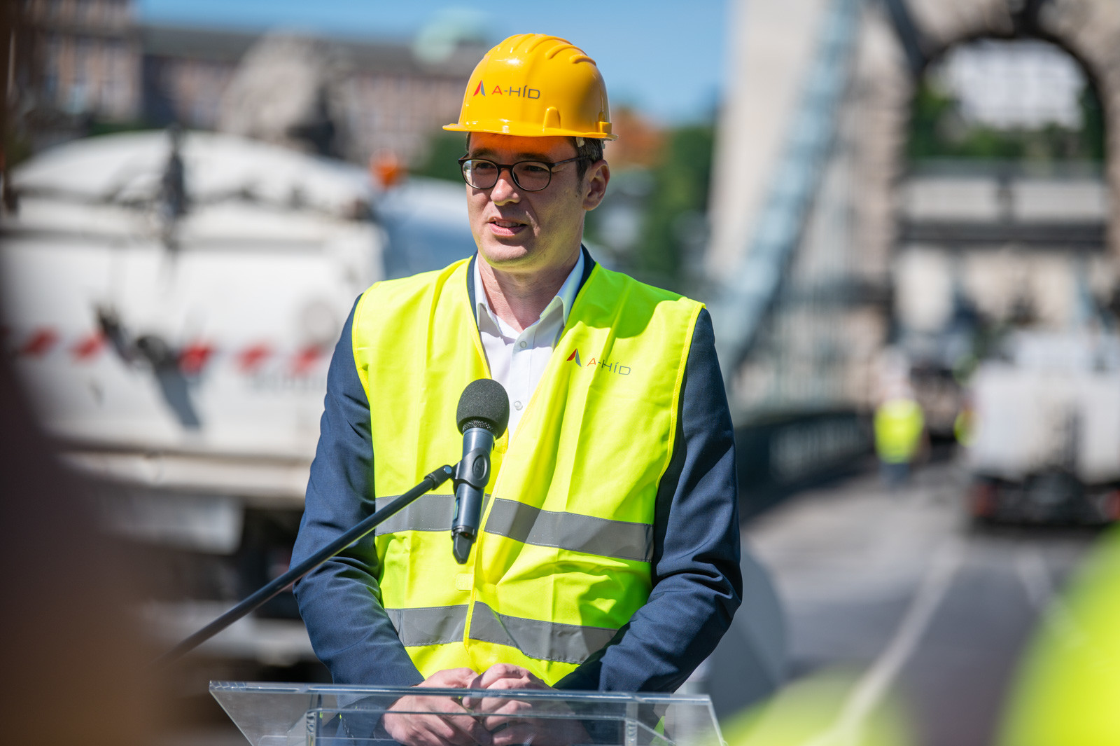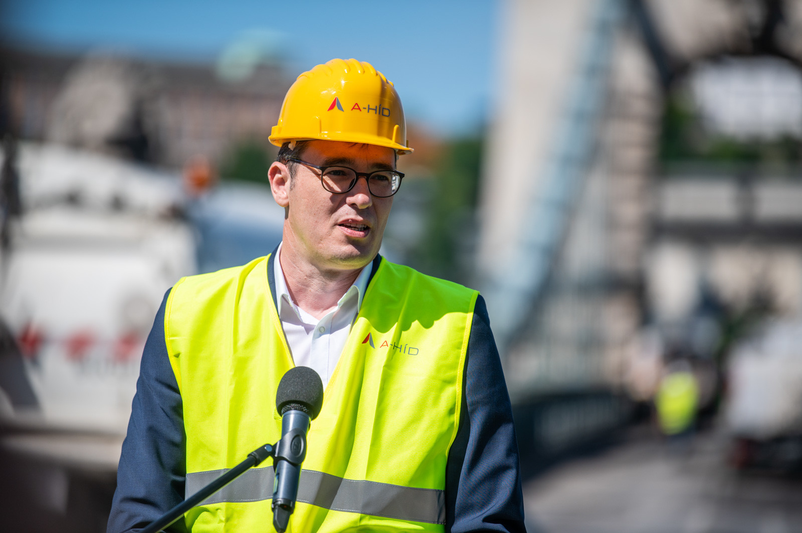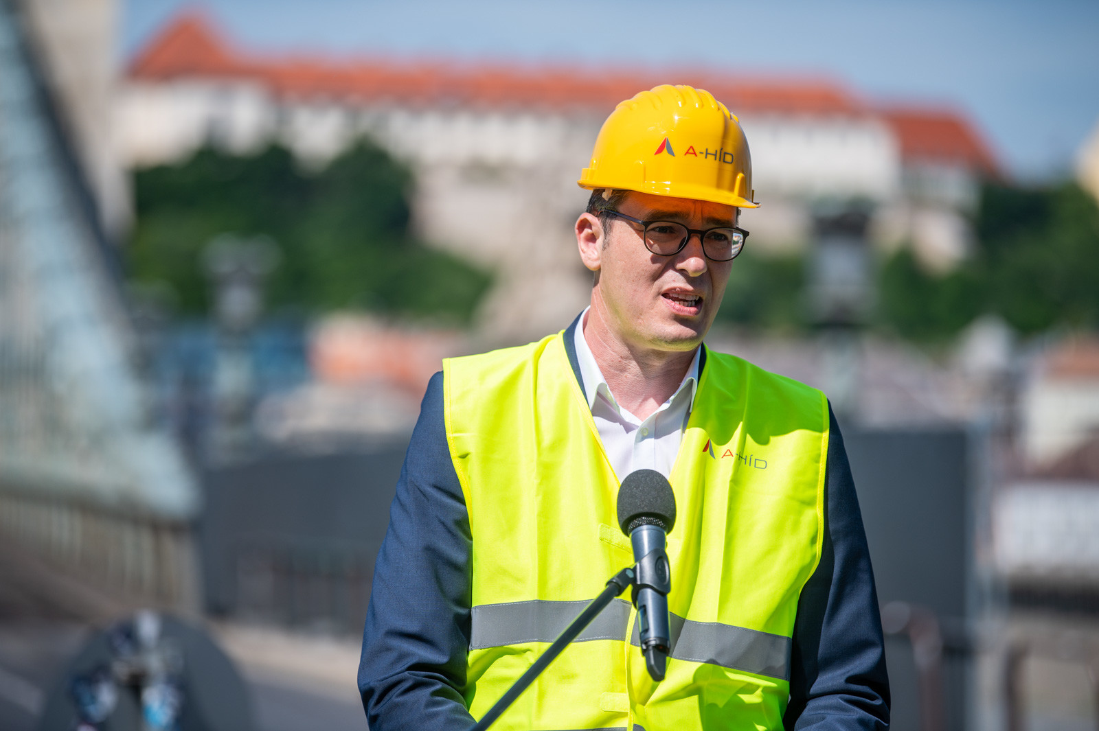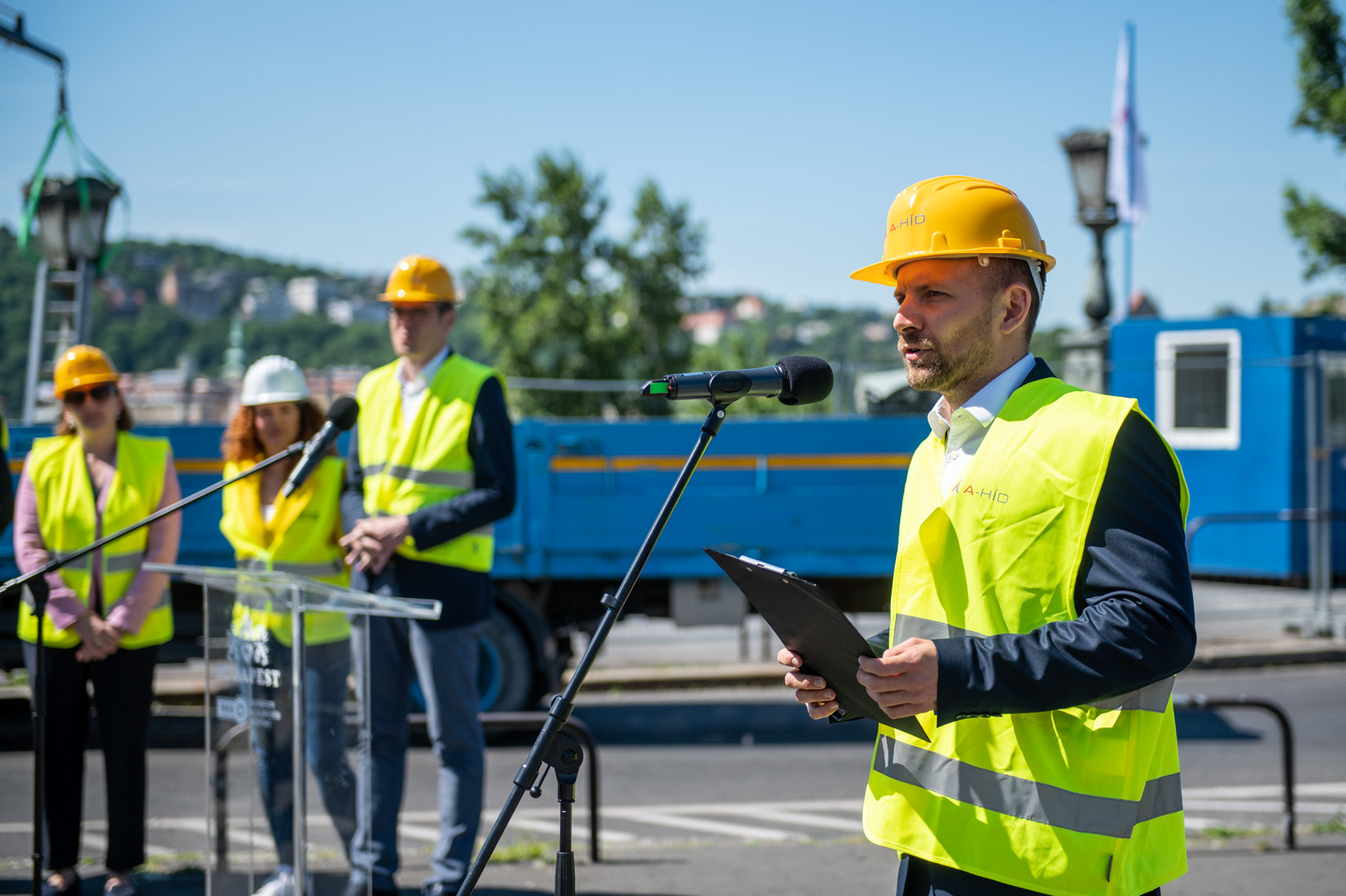 Sal László kitért a projekt részleteire is. „Nagy nap ez a mai, elkezdődik a beruházás igazi, érdemi része, az elmúlt hónapokban ugyanis előkészítési munkák folytak. Megépítettünk 7000 négyzetméter olyan állványt, amelynek a súlya 100 tonna, ezt a kollégák gyakorlatilag kézzel hordták be a hídszerkezet alá, ugyanis csak a járdákat zártuk le erre a 3 hónapra, illetve a kerékpáros aluljárót. Folyik a tervezése és a gyártása is annak a daru rendszernek, ami a hídon fog elhelyezkedni. Jelenleg folyik az aszfalt felmarása, ma ezzel végzünk is, ezután elkezdődik a díszvilágítás és a kandeláberek bontása is."