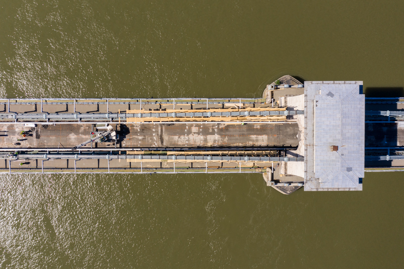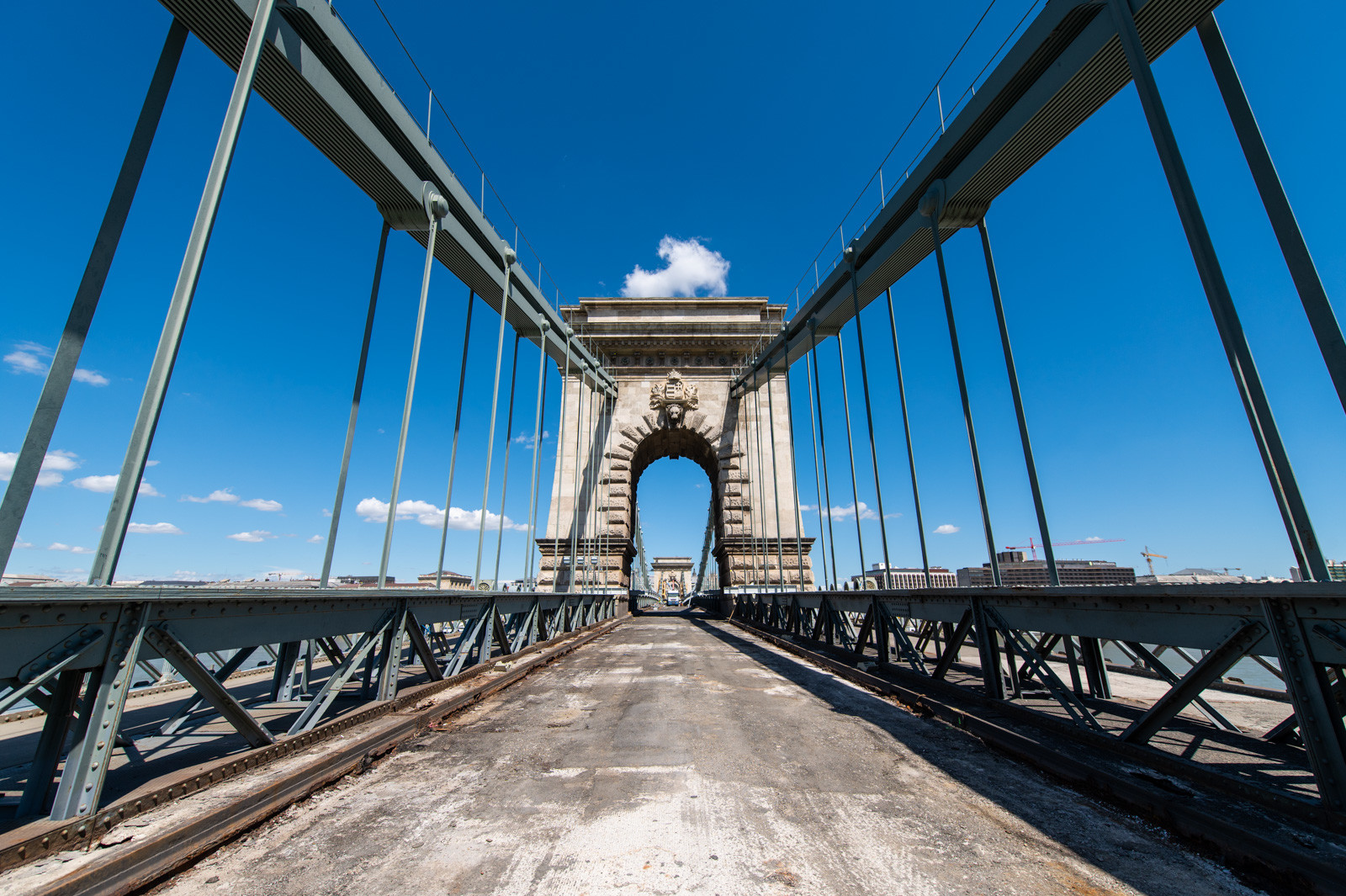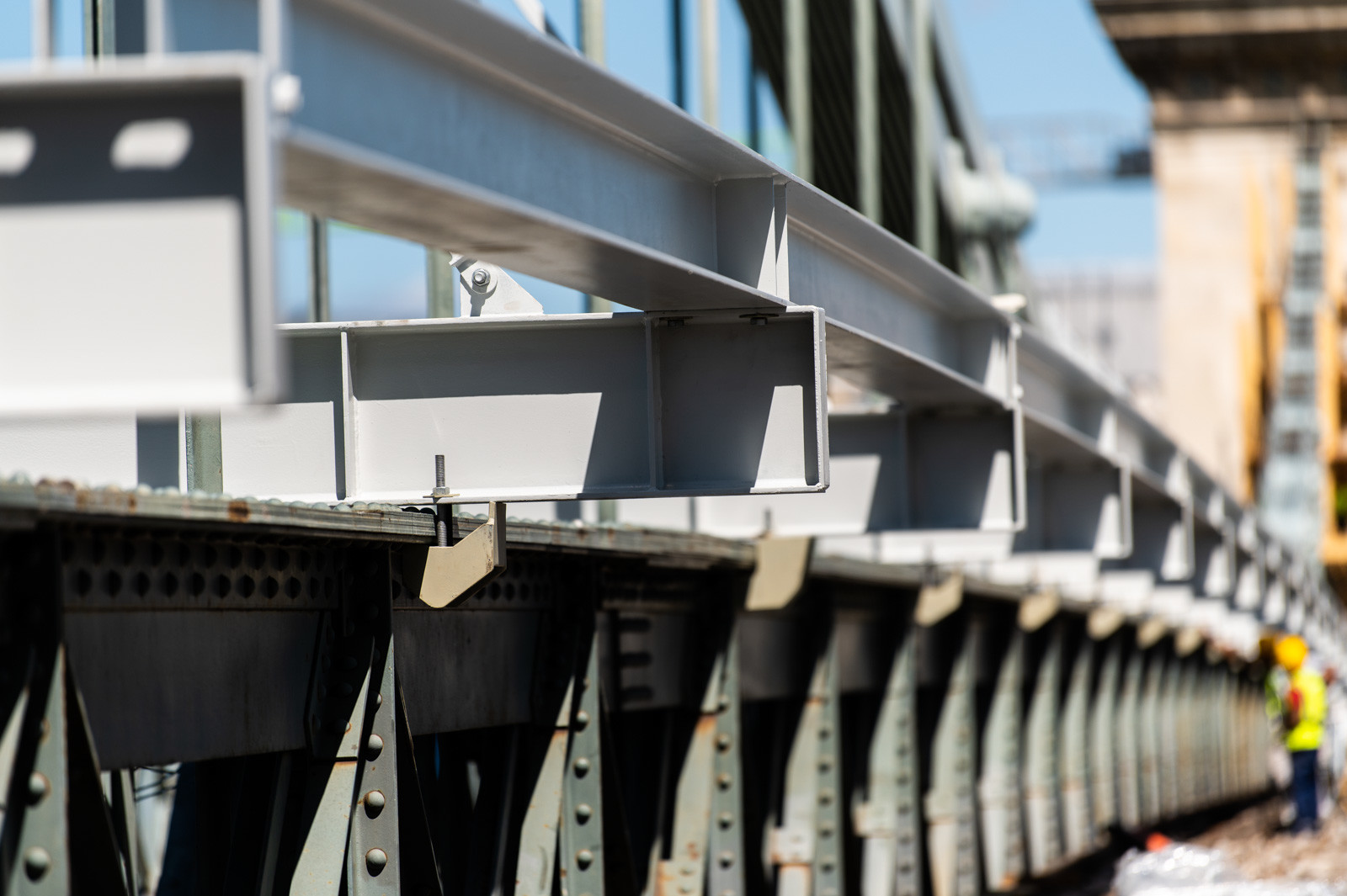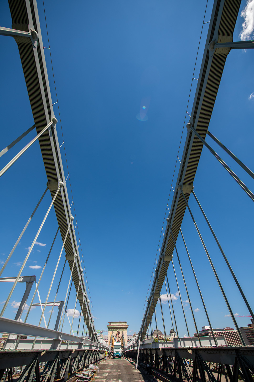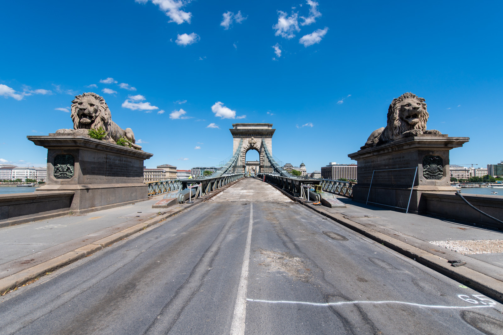 Mindeközben már épül a hídon végigvezető sínpályarendszer, amelyen a Lánchídra telepített két bakdaru közlekedik majd, a középső medernyílásban pedig készül a láncok korrózióvédelméhez szükséges állványzat is. Megkezdődött továbbá még a járdaszegélyek bontása is.
