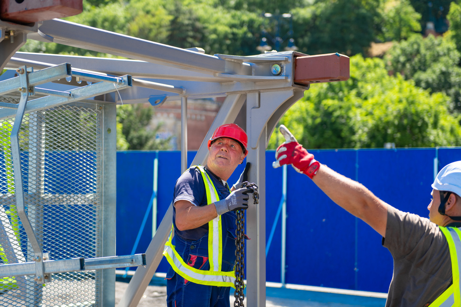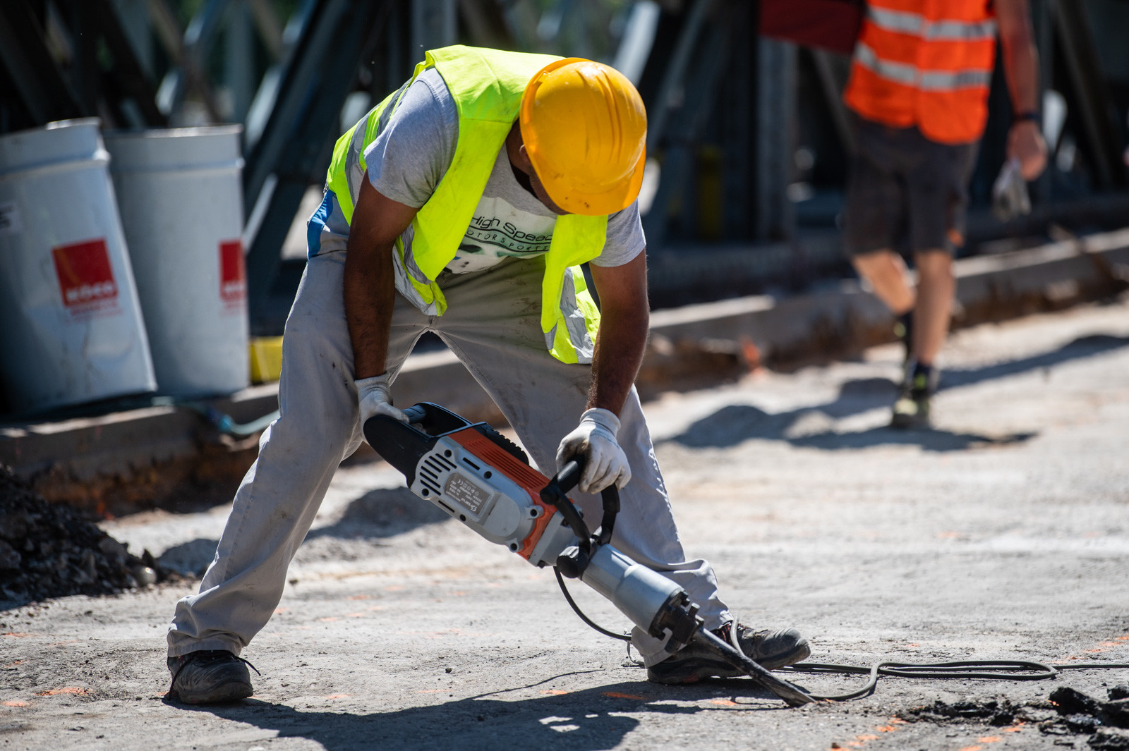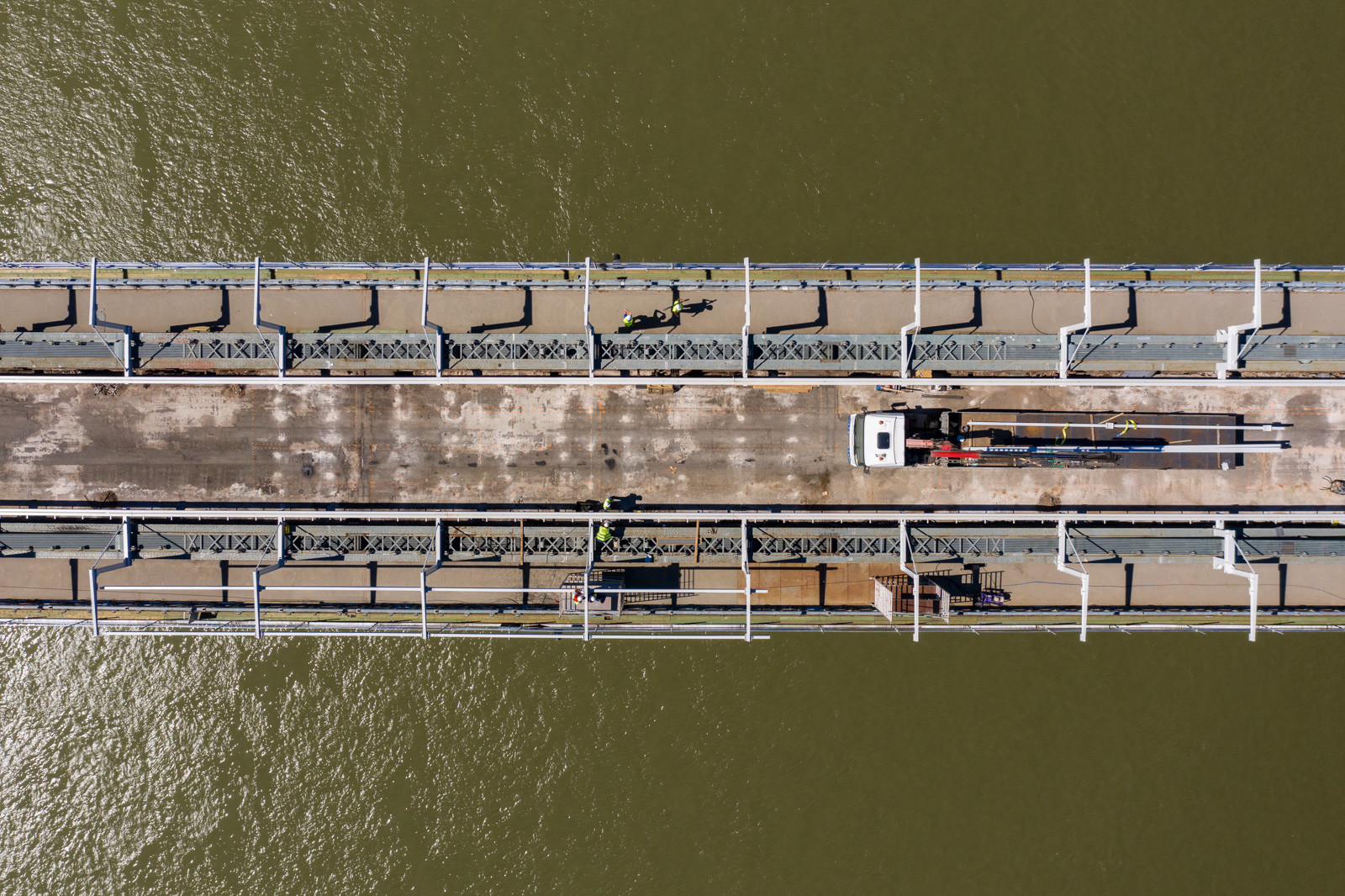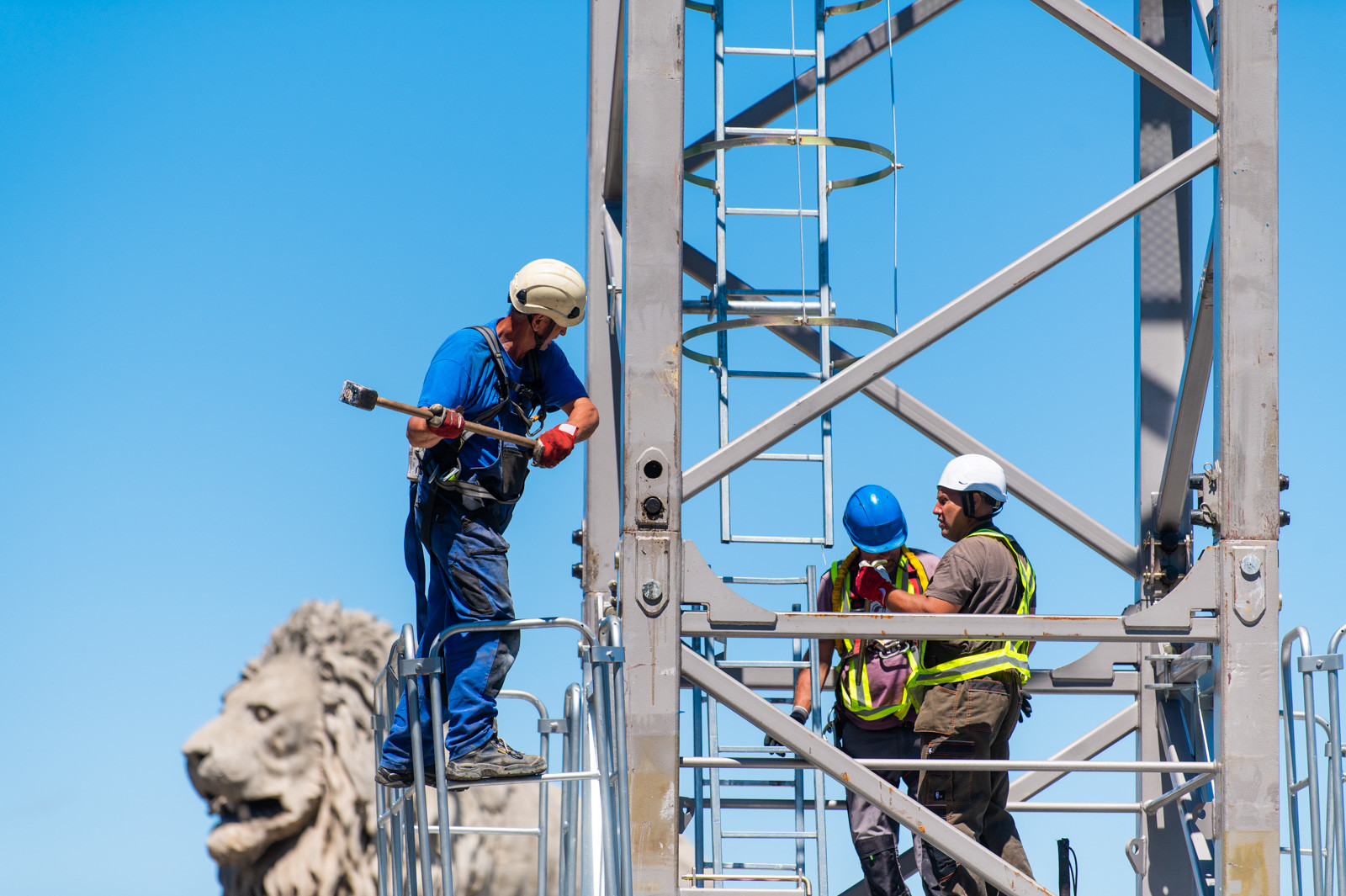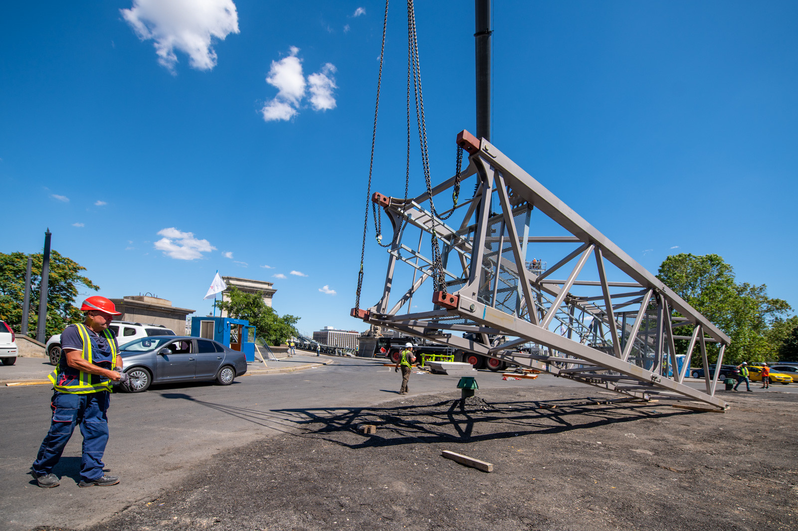 Mindeközben már épül a hídon végigvezető sínpályarendszer, amelyen a Lánchídra telepített két bakdaru közlekedik majd, a középső medernyílásban pedig készül a láncok korrózióvédelméhez szükséges állványzat is. Megkezdődött továbbá még a járdaszegélyek bontása is.