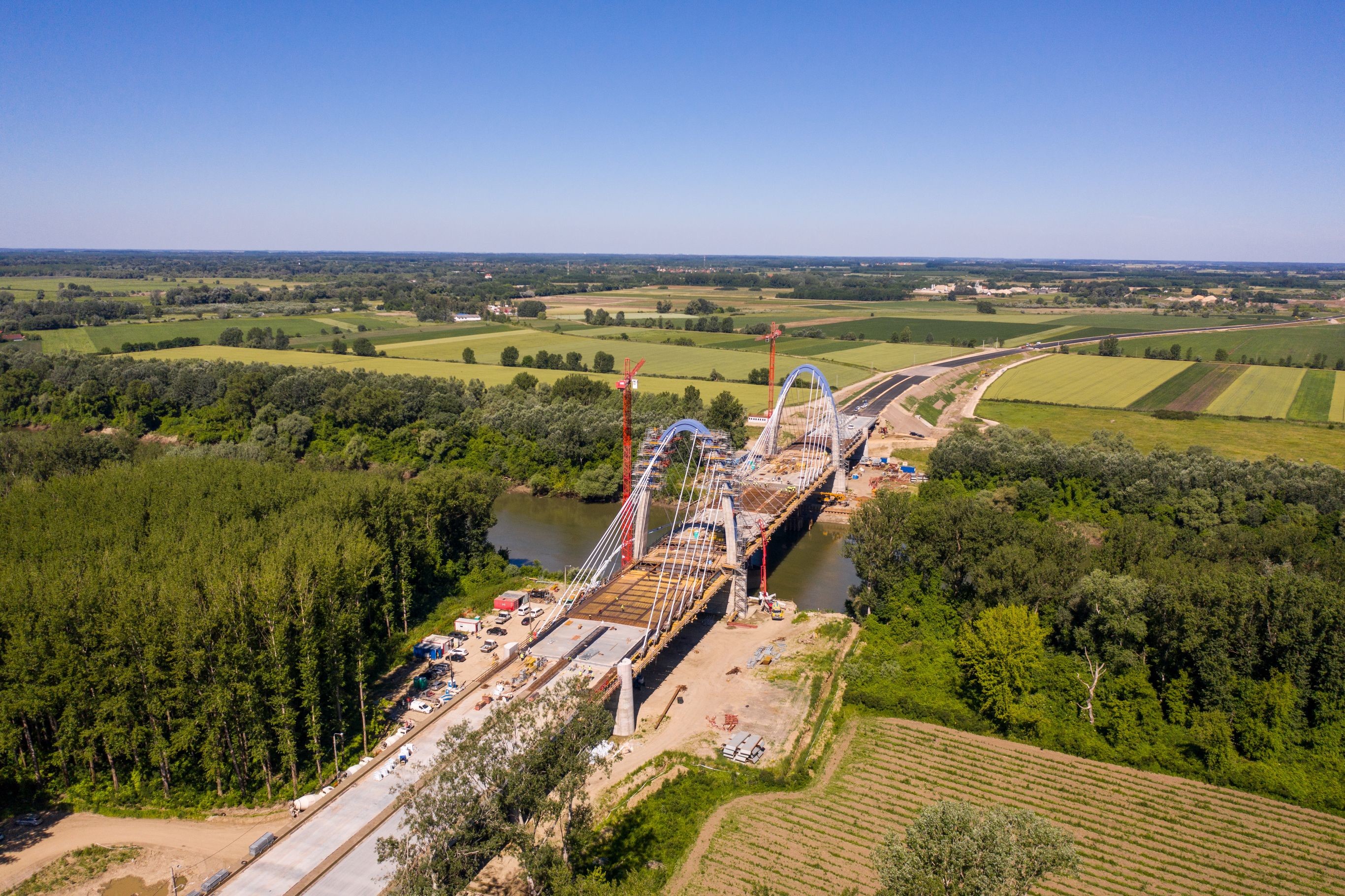 Lapunk értesülése szerint a kábelek feszítése a várakozásoknak megfelelően történt, emellett a kivitelezés és a szerkezeti mozgások a tervezők által számítottaknak megfelelően alakultak. Ennek köszönhetően az ütemezés továbbra is tartható, és a szakasz forgalomba helyezése az év végén történhet meg. A feszítés után elbontották a pilon melletti állványokat, melyek elengedhetetlen munkaterületei voltak ennek a fázisnak