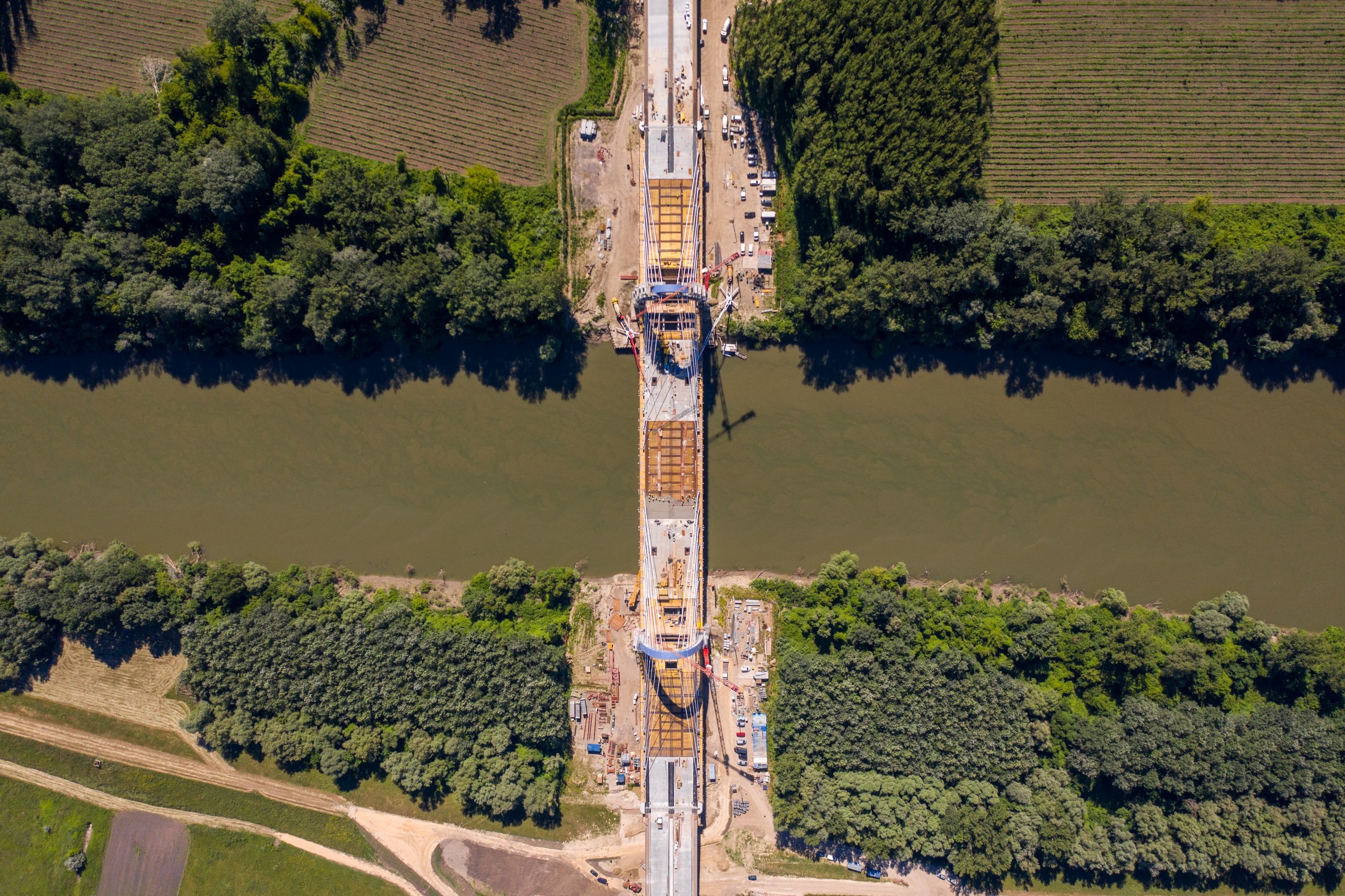 A Tisza-híd ferdekábeleinek befűzése és feszítése után a kábelek korrózióvédelme készül, illetve már a mederhíd pályalemez építése is zajlik az M44-es gyorsforgalmi út Tiszakürt és Lakitelek közötti szakaszán – értesült a magyarepitok.hu.