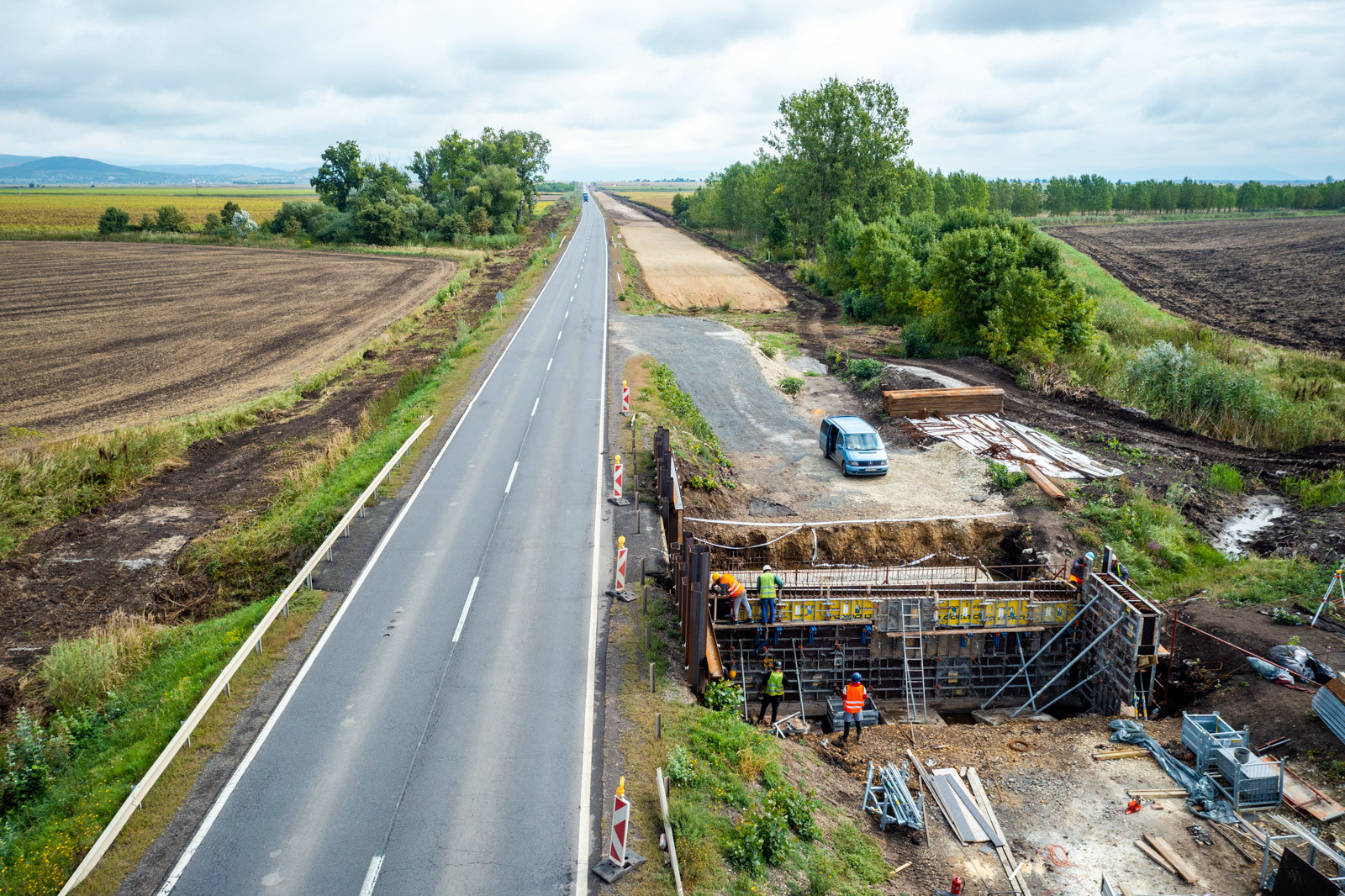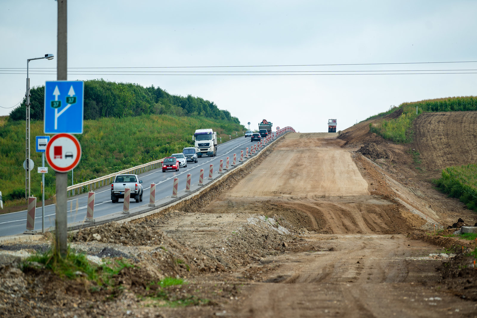 Már a töltésépítés és a hídépítési munkák is zajlanak a 37-es főúton, amely a Duna Aszfalt Zrt. munkájával válik kétszer kétsávossá az érintett szakaszon.