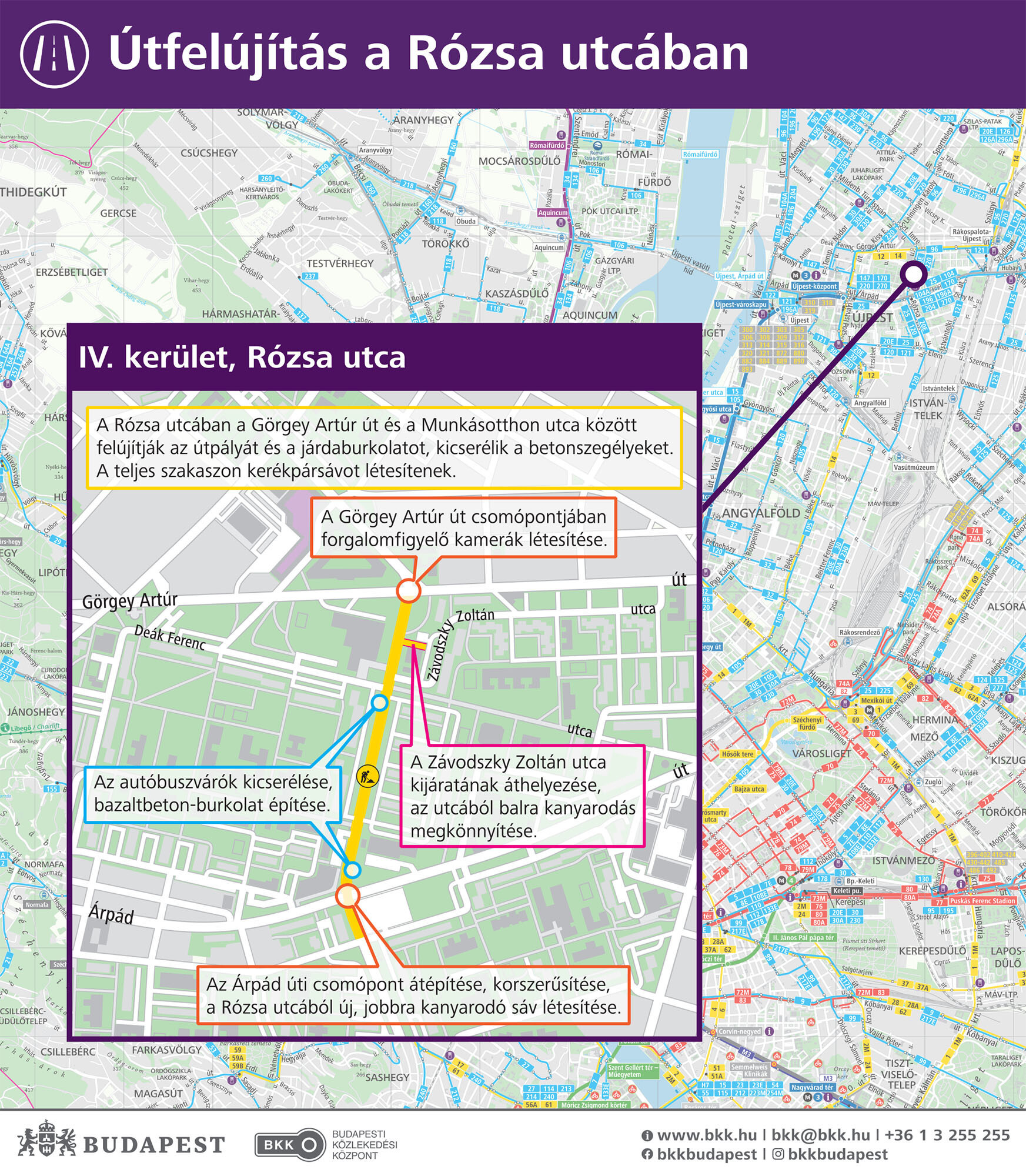 A SWIETELSKY jelenleg a Rózsa utca–Árpád út csomópont átépítését végzi, amely így biztonságosabb lesz. Az aszfaltrétegeket előreláthatóan október 10. és 20. között, két egymást követő éjszaka építik meg.