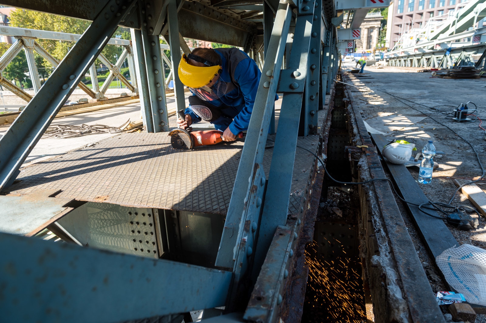 Legutóbb arról számoltunk be a hídfejlesztés és restauráció kapcsán, hogy az új, acél pályaszerkezet első eleme a helyére került. Az elöregedett vasbetonpályát váltó, trapézbordákkal merevített – úgynevezett ortotróp – acélszerkezet jelentősen könnyebb az elődjénél, ezért jobban kombinálható a régi hídszerkezettel.