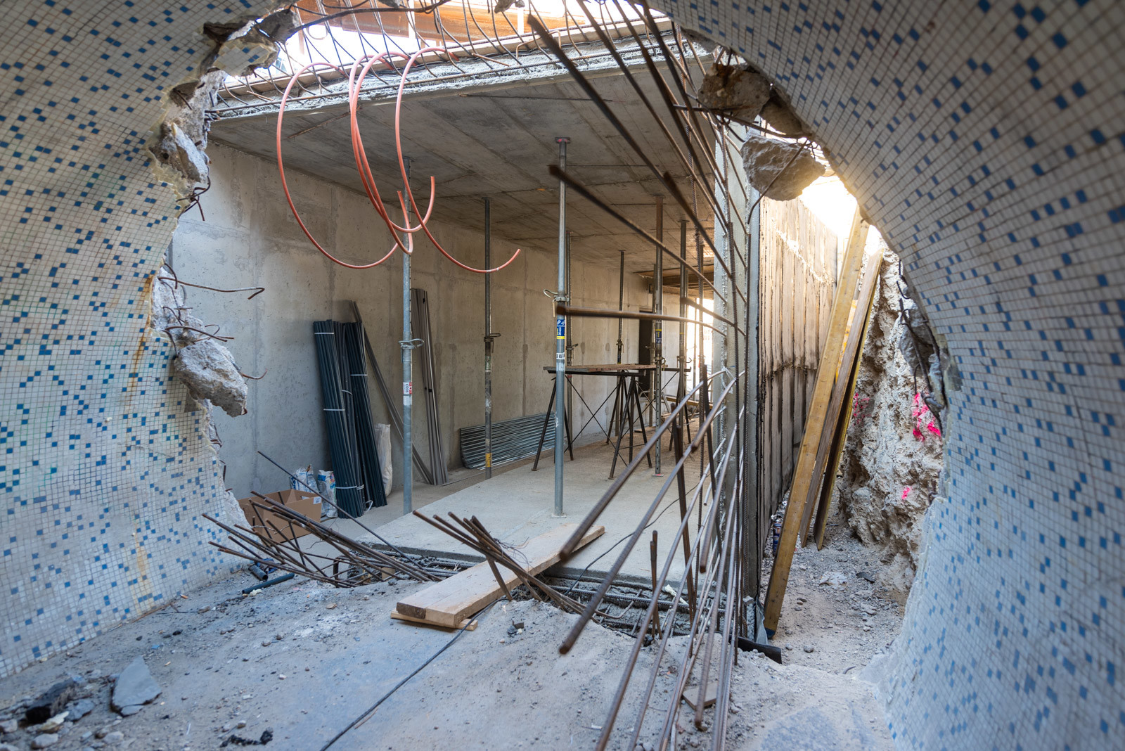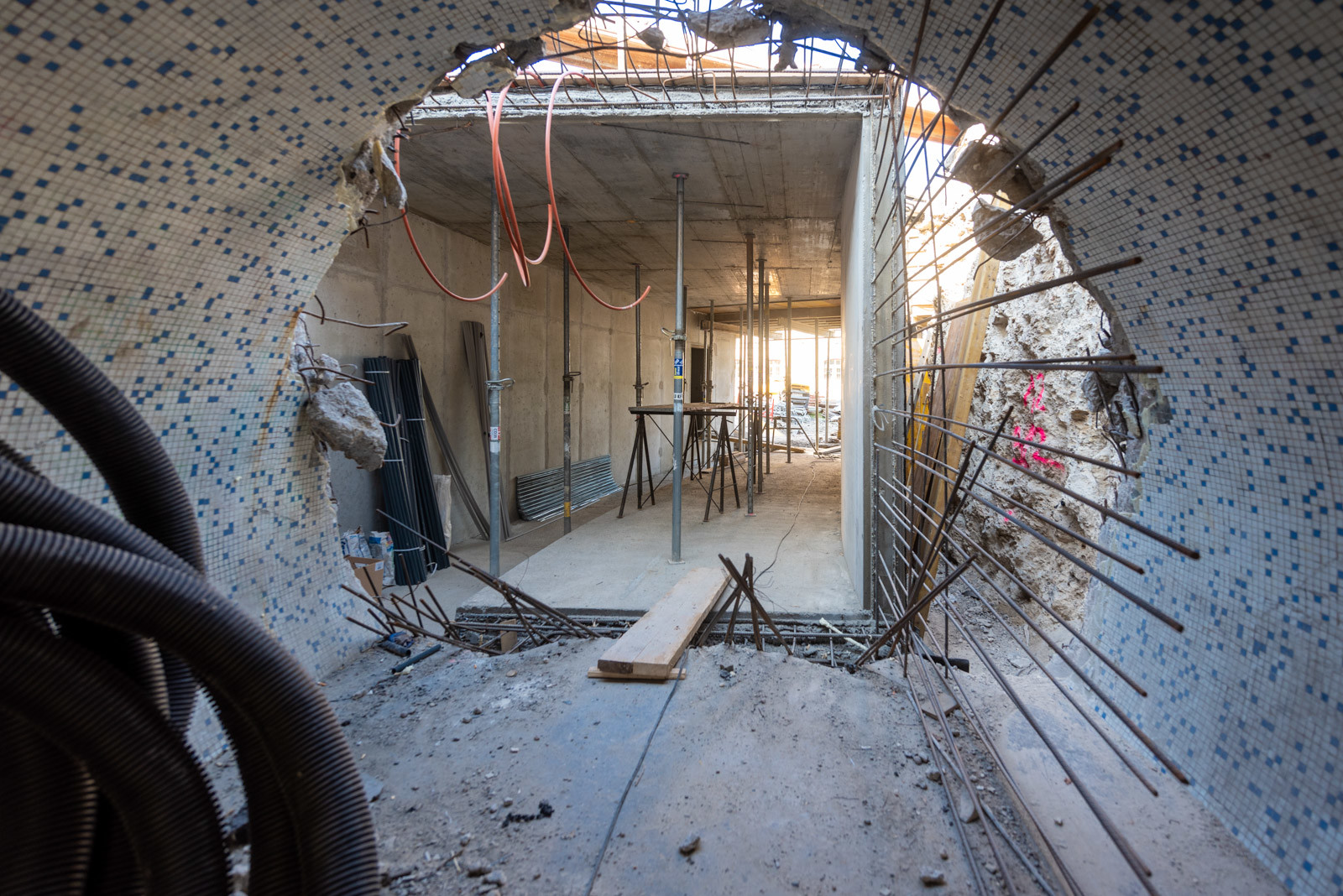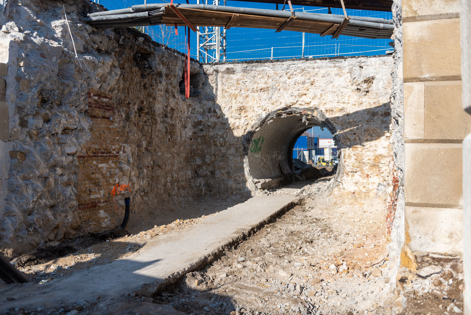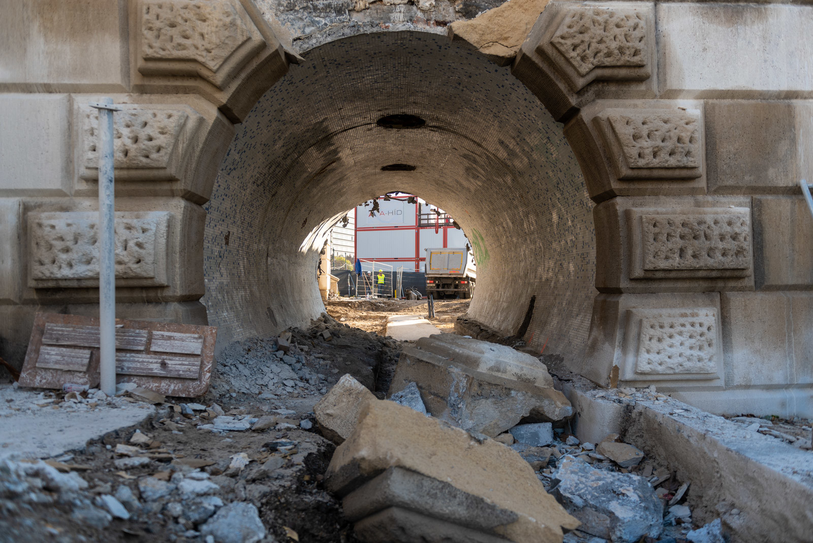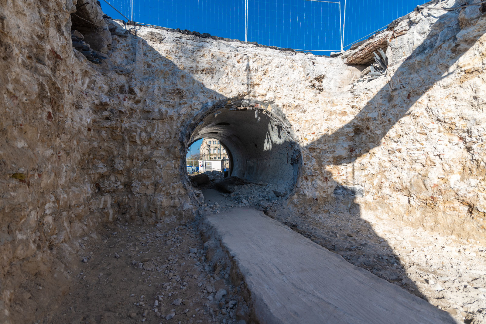 A pesti hídfőben ugyancsak elbontották az aluljáró felét. A kövek, a fal, az útpálya és a födém eltávolítása mellett ezen a területen egy nagynyomású gázcső kiváltása is megtörtént, a talaj helyreállítása után pedig már öntik a betont. Ennek a kör keresztmetszetű aluljárónak ugyancsak megváltozik a formája: egyenes falakat építenek, és tágasabb, téglalap alakú keresztmetszetet alakítanak ki.