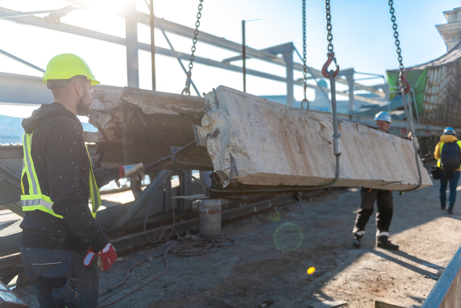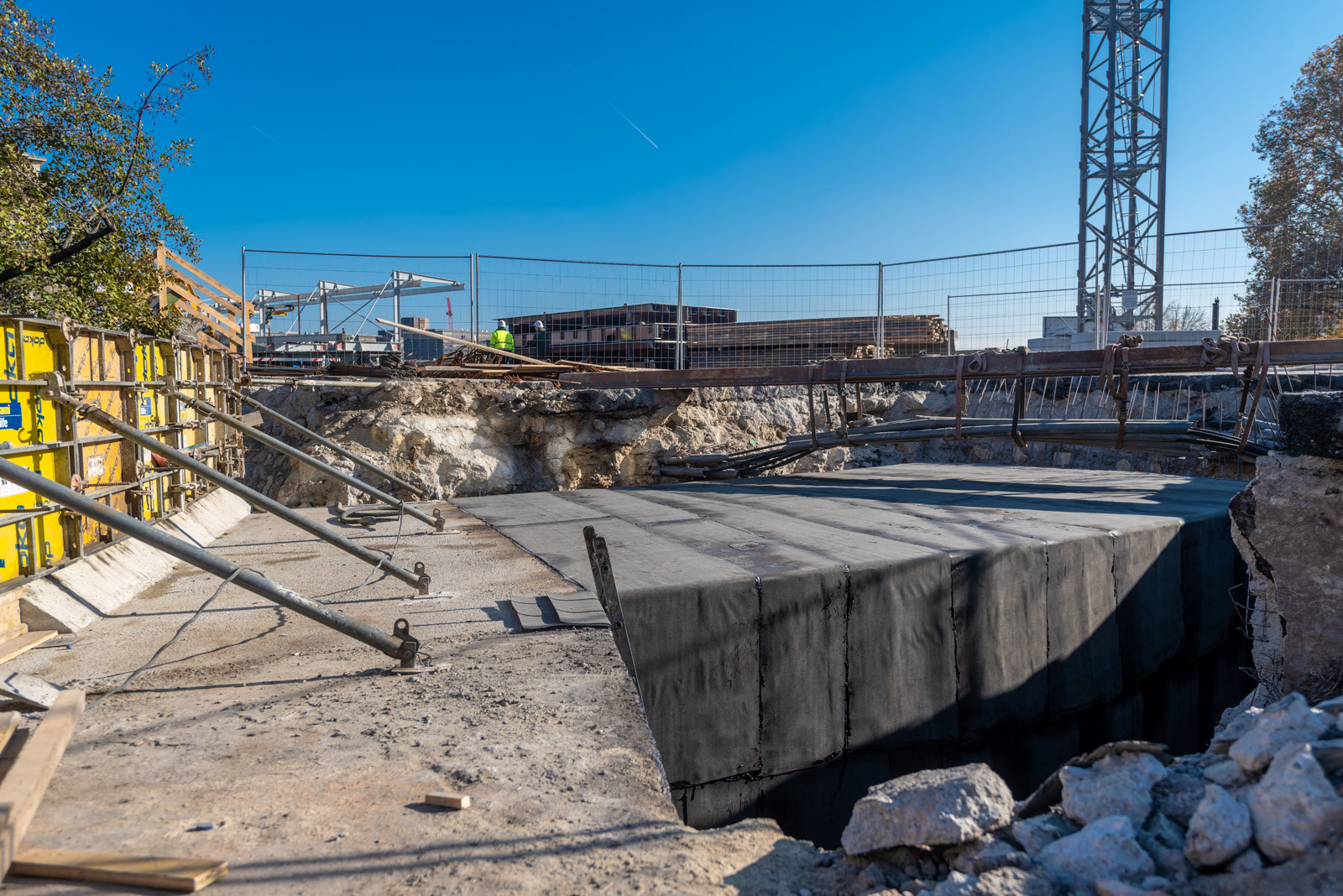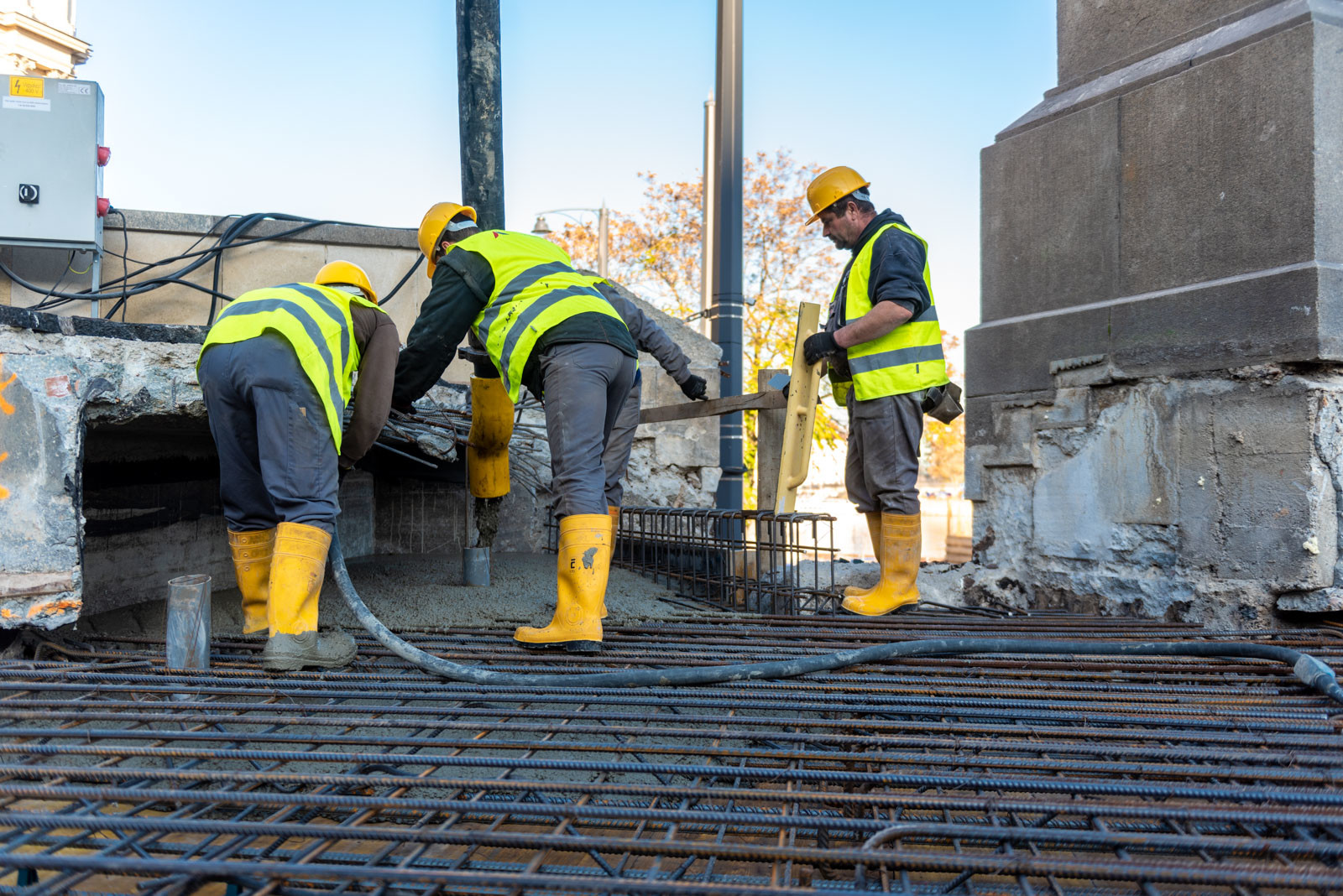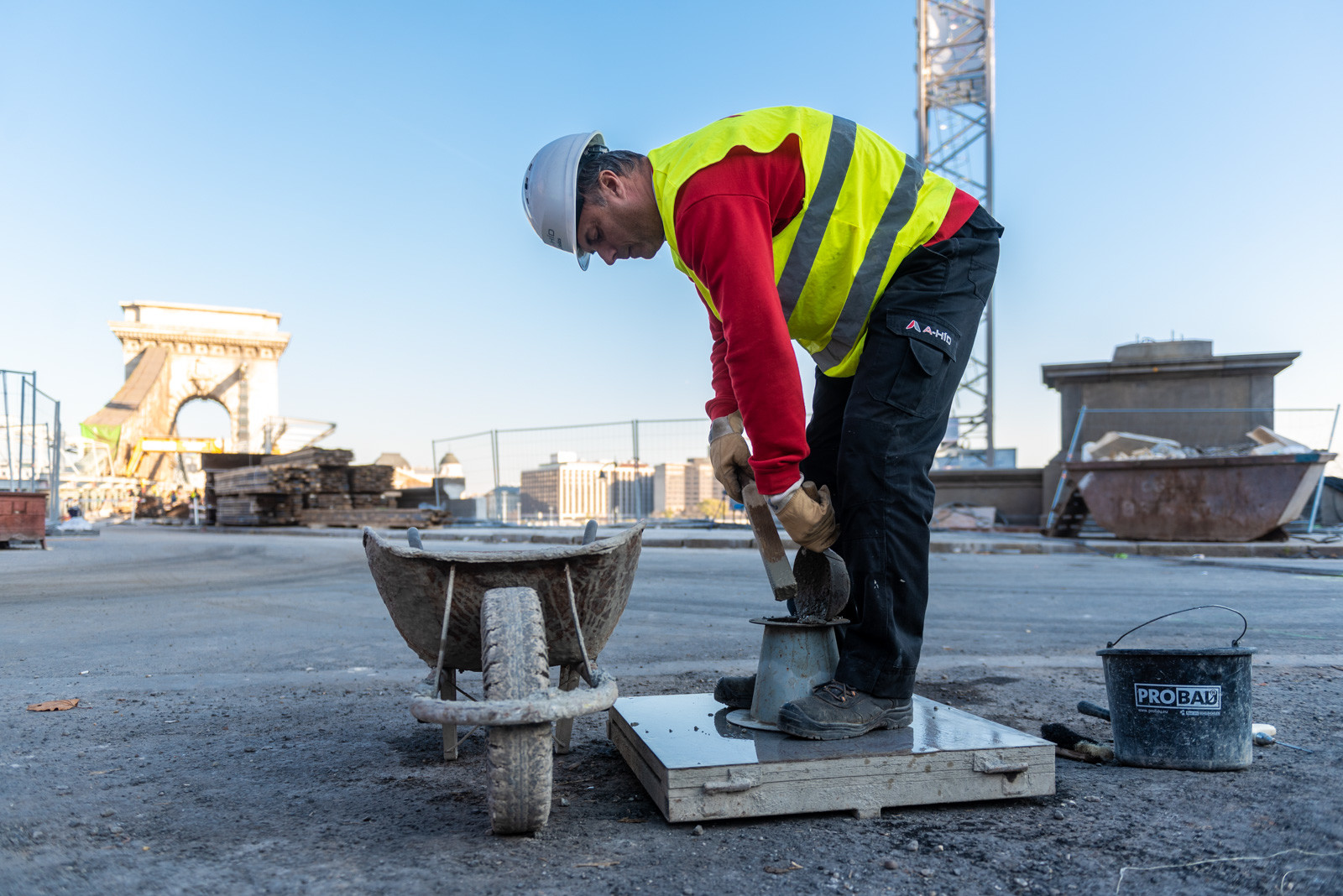 A szakemberek egyszerre csak az aluljáró egyik felén dolgoznak, hogy fenntartsák a hídfő megfelelő terhelését, valamint biztosítsák a gépek zavartalan bejárását a híd közepén folytatott munkákhoz. A szükséges vizsgálatok és födémjavítások elvégzése után már javában tart a vasbeton szerkezet építése, betonozzák a hídfőben lévő helyiségek födémszerkezetét és az aluljáró falát is.