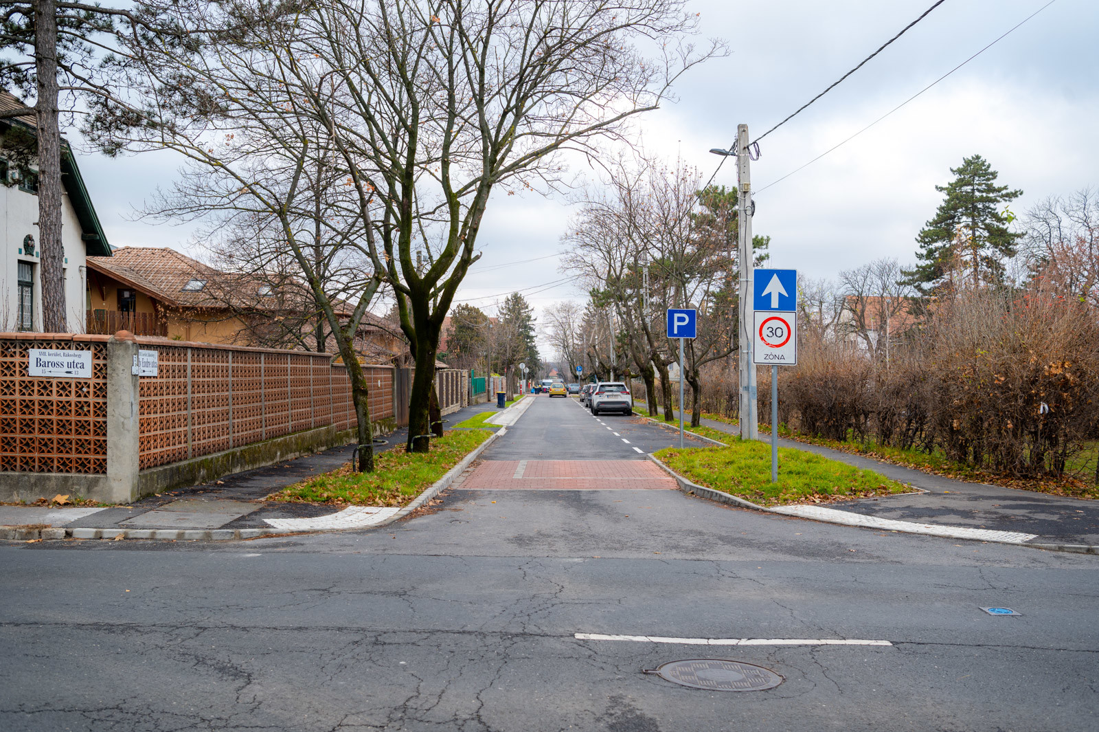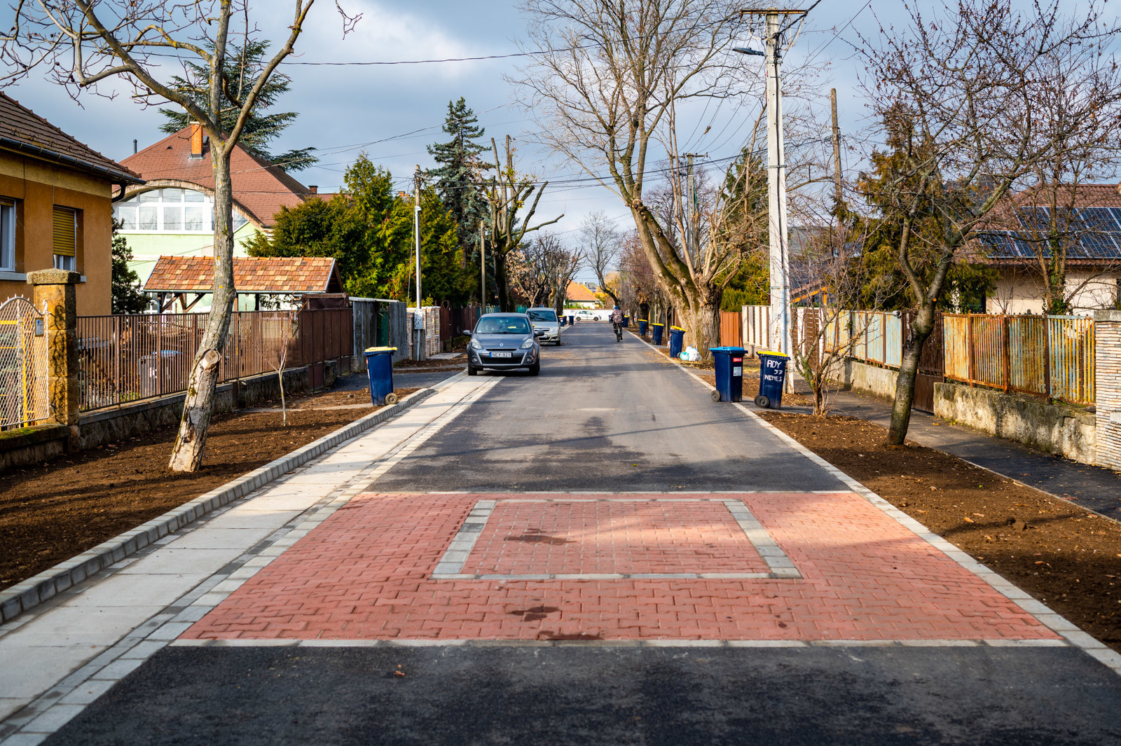 Az utca szabályozási szélessége meglehetősen kicsi, ennek ellenére elvárás volt a kétirányú közlekedés. Az útpálya szélességét úgy határozták meg, hogy a vízelvezetésként szolgáló előre gyártott, elemes árokrendszer lefedését követően, - megfelelő teherbírású lefedettség esetén - kialakítható legyen a biztonságos kétirányú közlekedés.