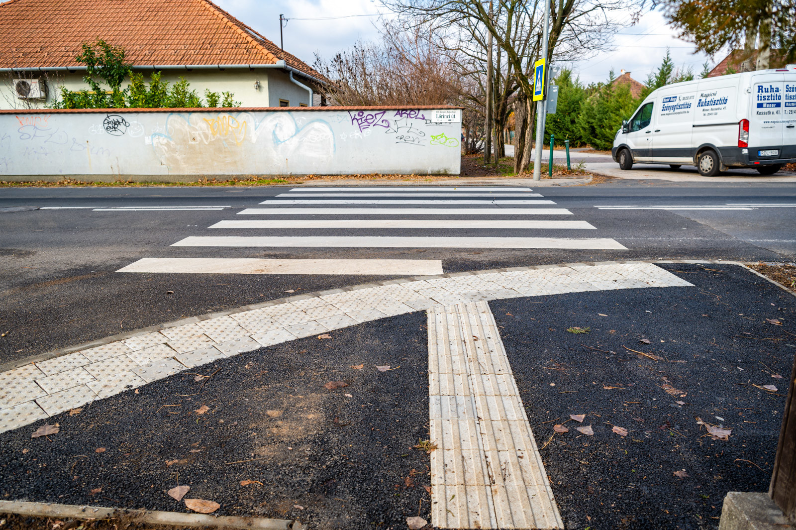 A kivitelezés során tekintettel a biztonságos gyalogos közlekedésre, közel 700 m2 hengerelt aszfalt burkolatú járda készült el.