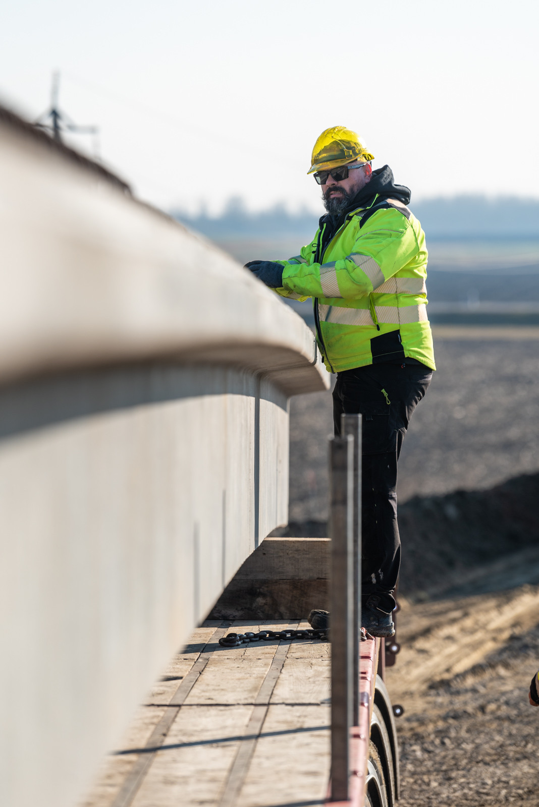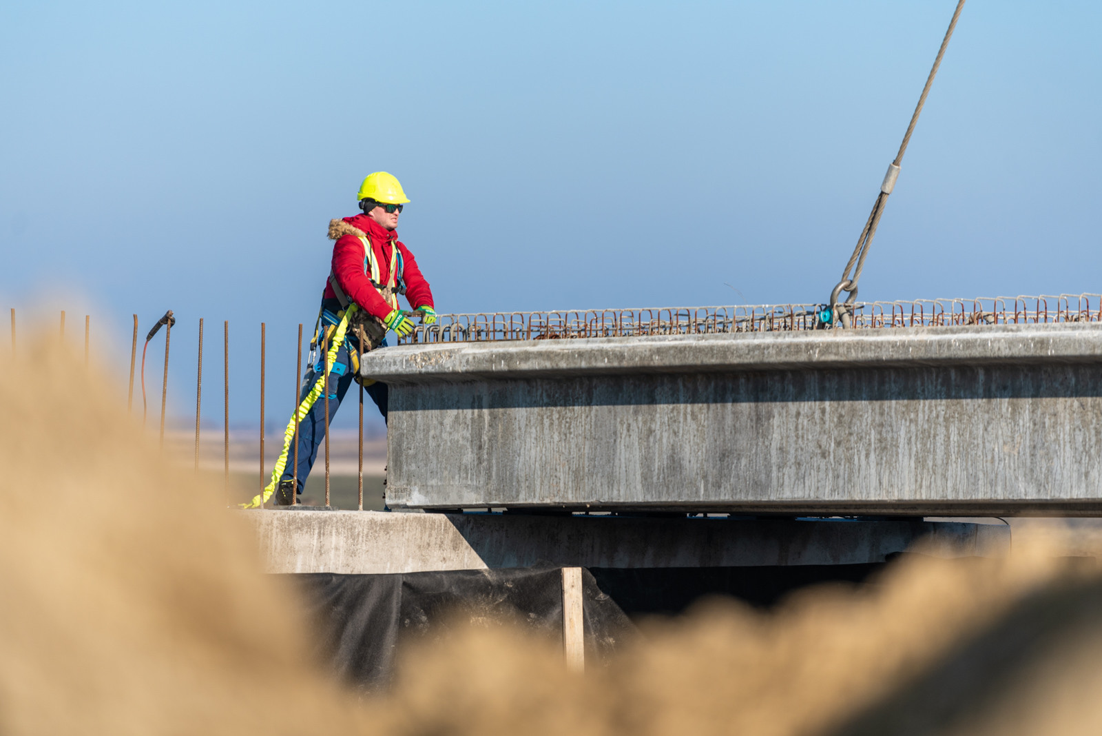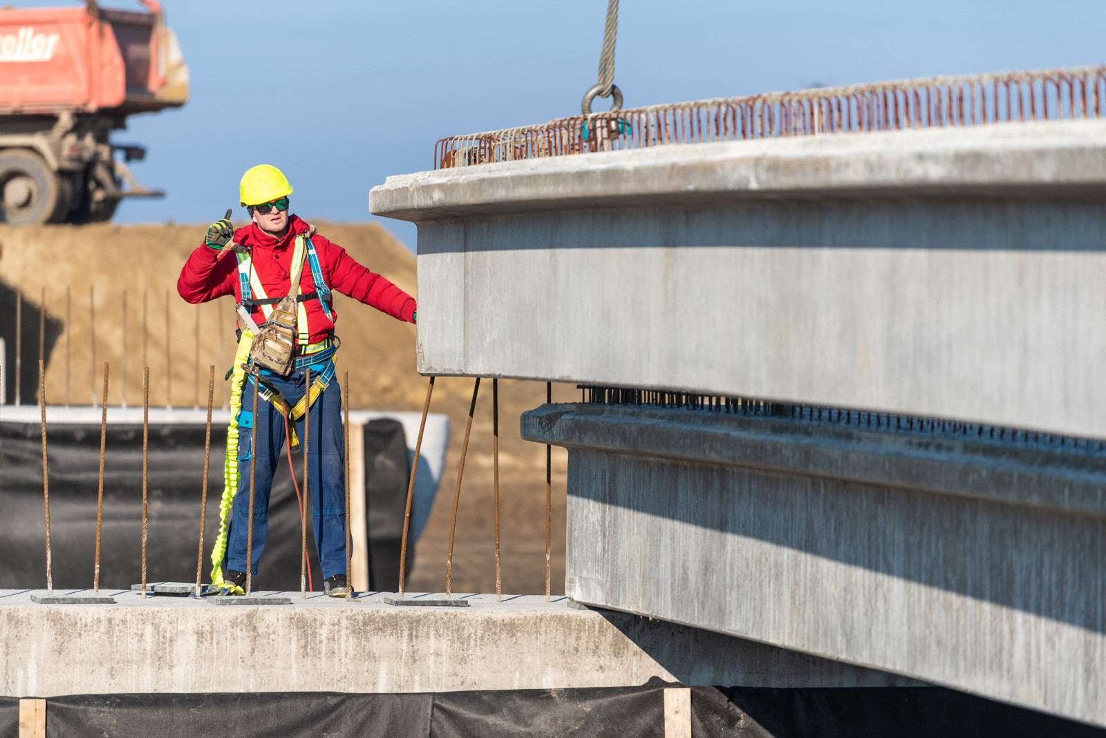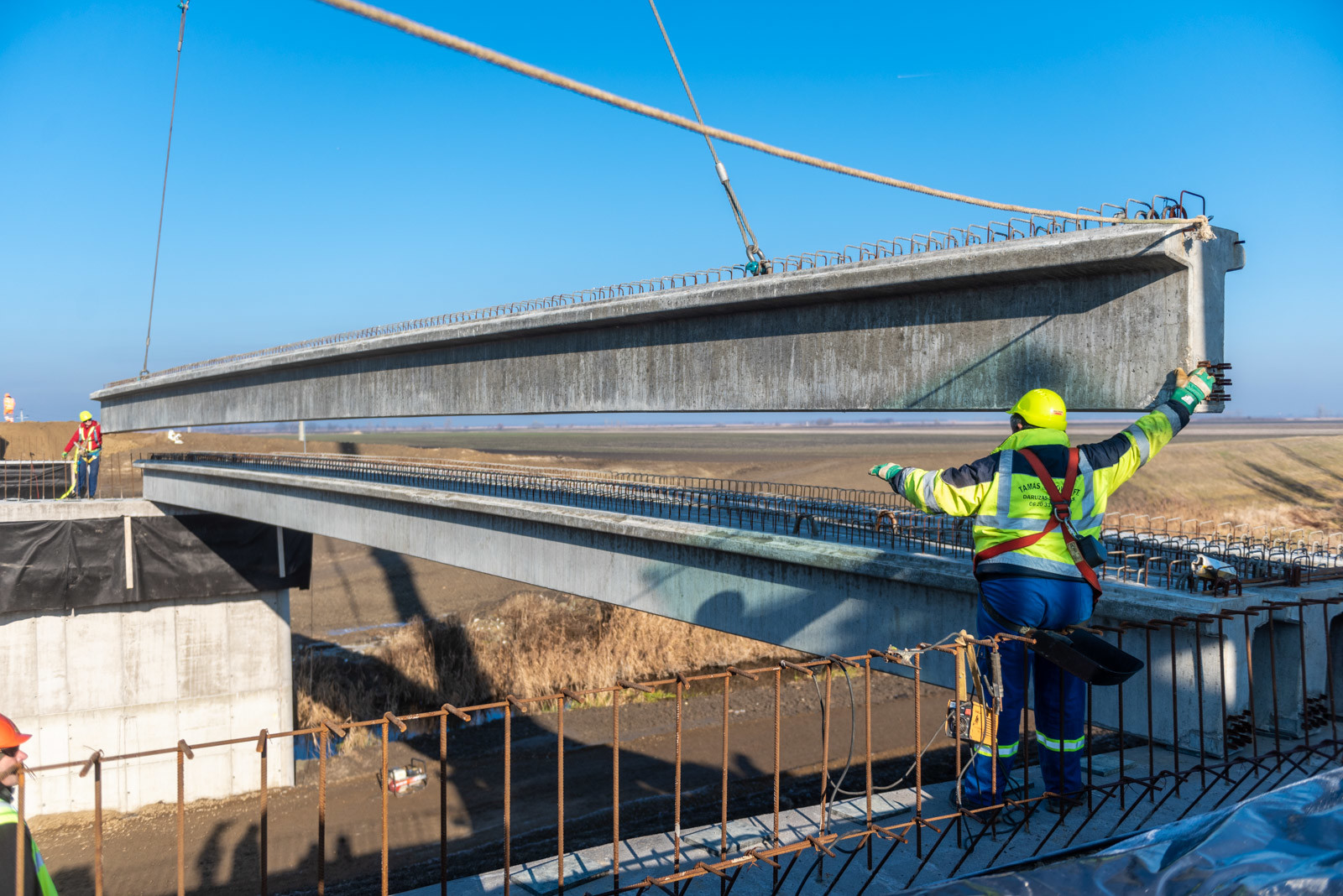 A munkálatokhoz 48 darab, egyenként 21,8 méter hosszú, 16,42 tonna súlyú előregyártott hídgerendát szállítottak a Ferrobeton Zrt. szolnoki üzeméből a helyszínre.