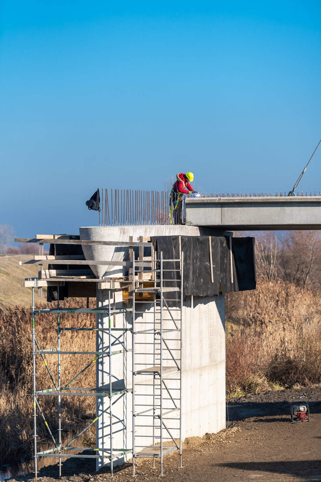 Mindezt megelőzően a hídfők talajnedvességszigetelését és háttöltését is elvégezték, a közbenső pilléreken a fejgerendákat elhelyezték és a hídgerendák fogadására alkalmassá tették őket. A folyamat következő lépéseiként a hídgerendák felett a pályalemez és a pályaszerkezet munkáival haladnak majd a gépek.