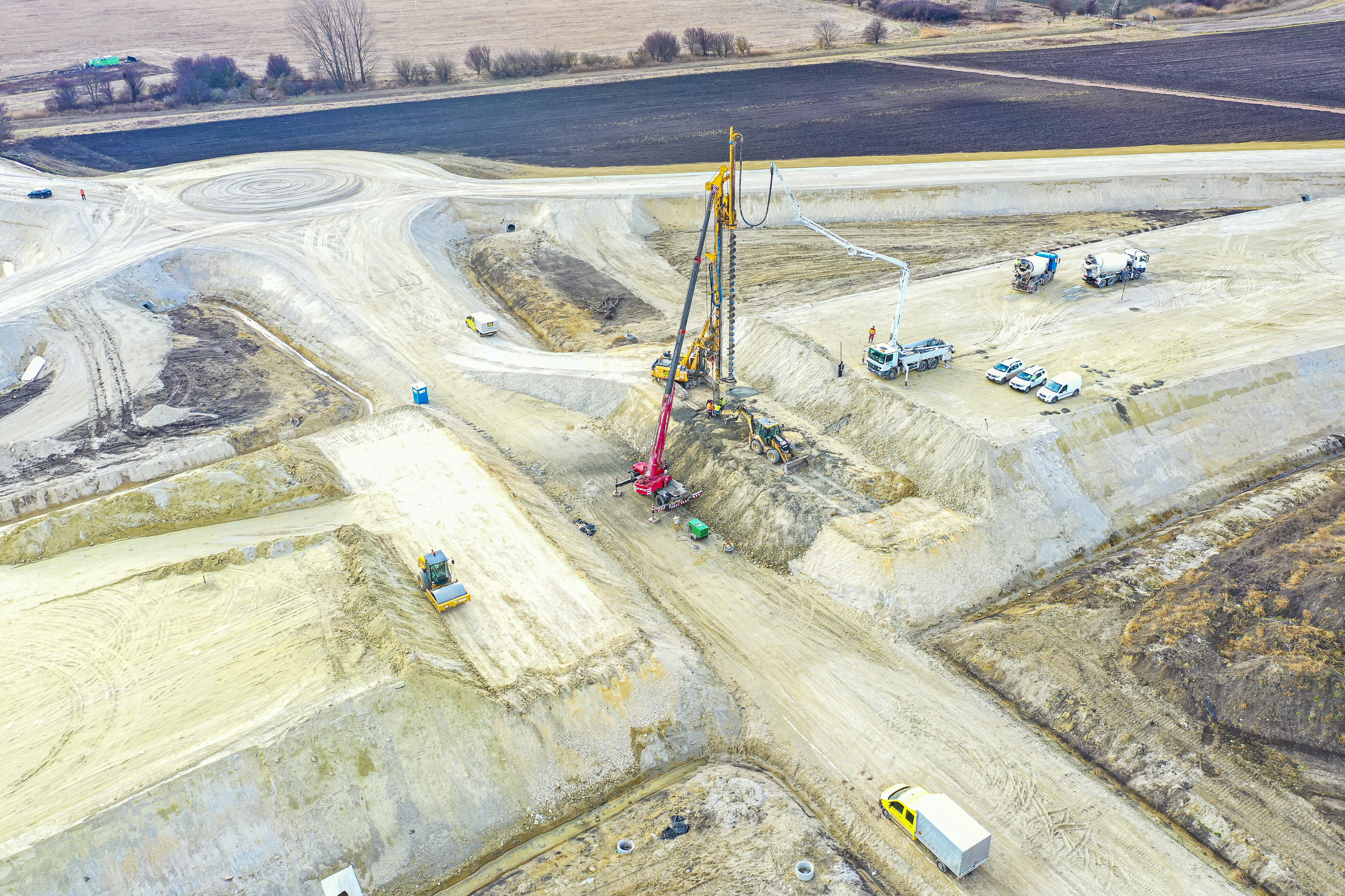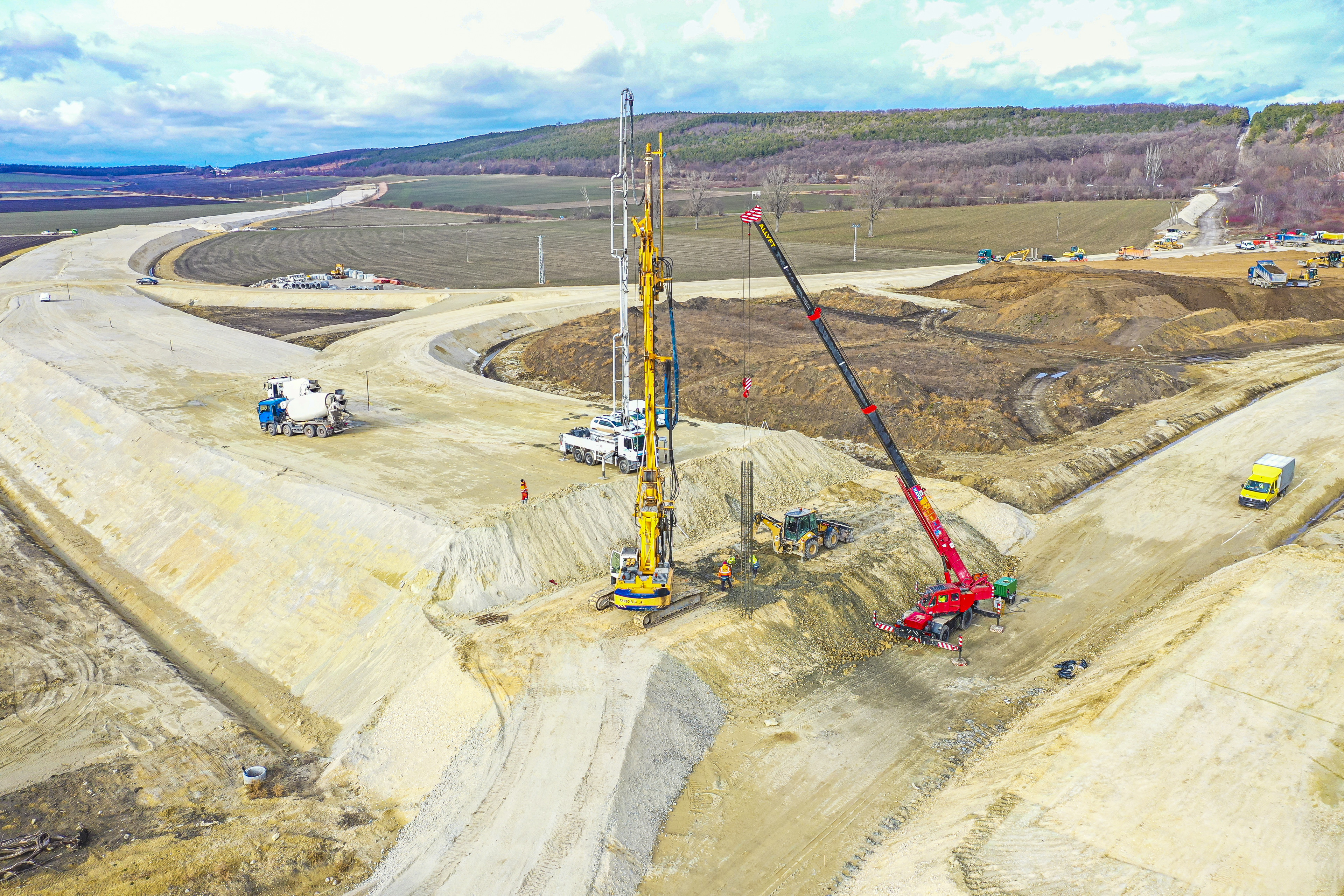 A műtárgyépítési munkák nagy lendületet vettek ezen a részen, egyszerre öt épülő hídnál végeznek cölöpözési és ahhoz kapcsolódó munkálatokat.