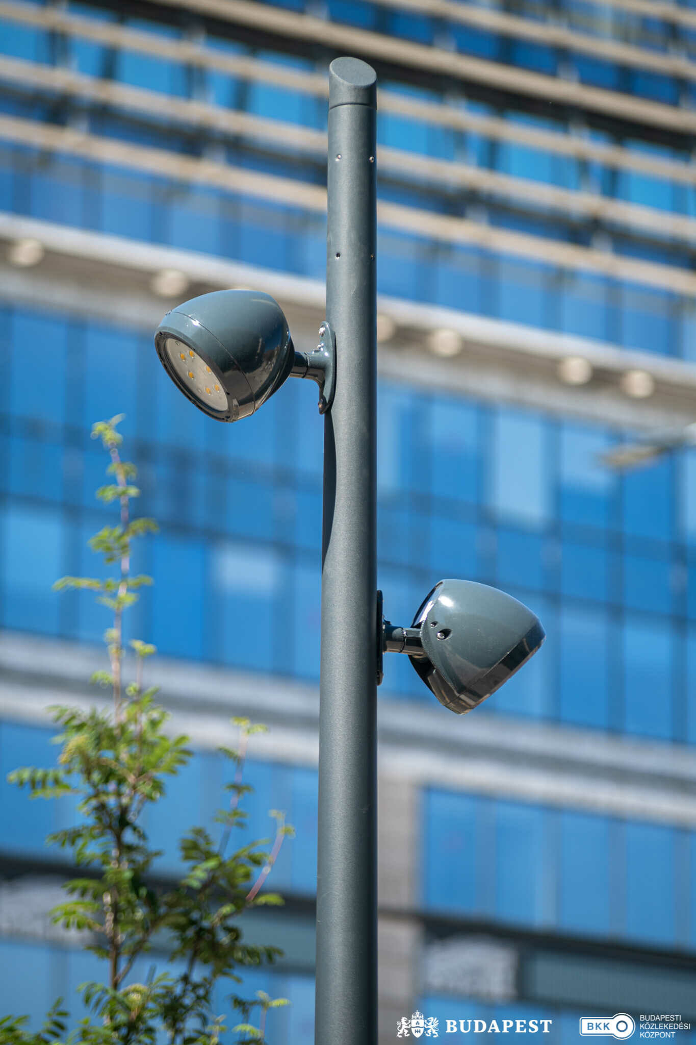 A kivitelező szakemberei felállították a ligetes pihenőrészen az új kandelábereket, amelyeket kifejezetten a térre gyártottak. Az oszlopokra szerelt lámpatesteket úgy helyezték el, hogy azok az energiatakarékos fényforrások segítségével ne a fák lombozatát, hanem a teret világítsák meg.