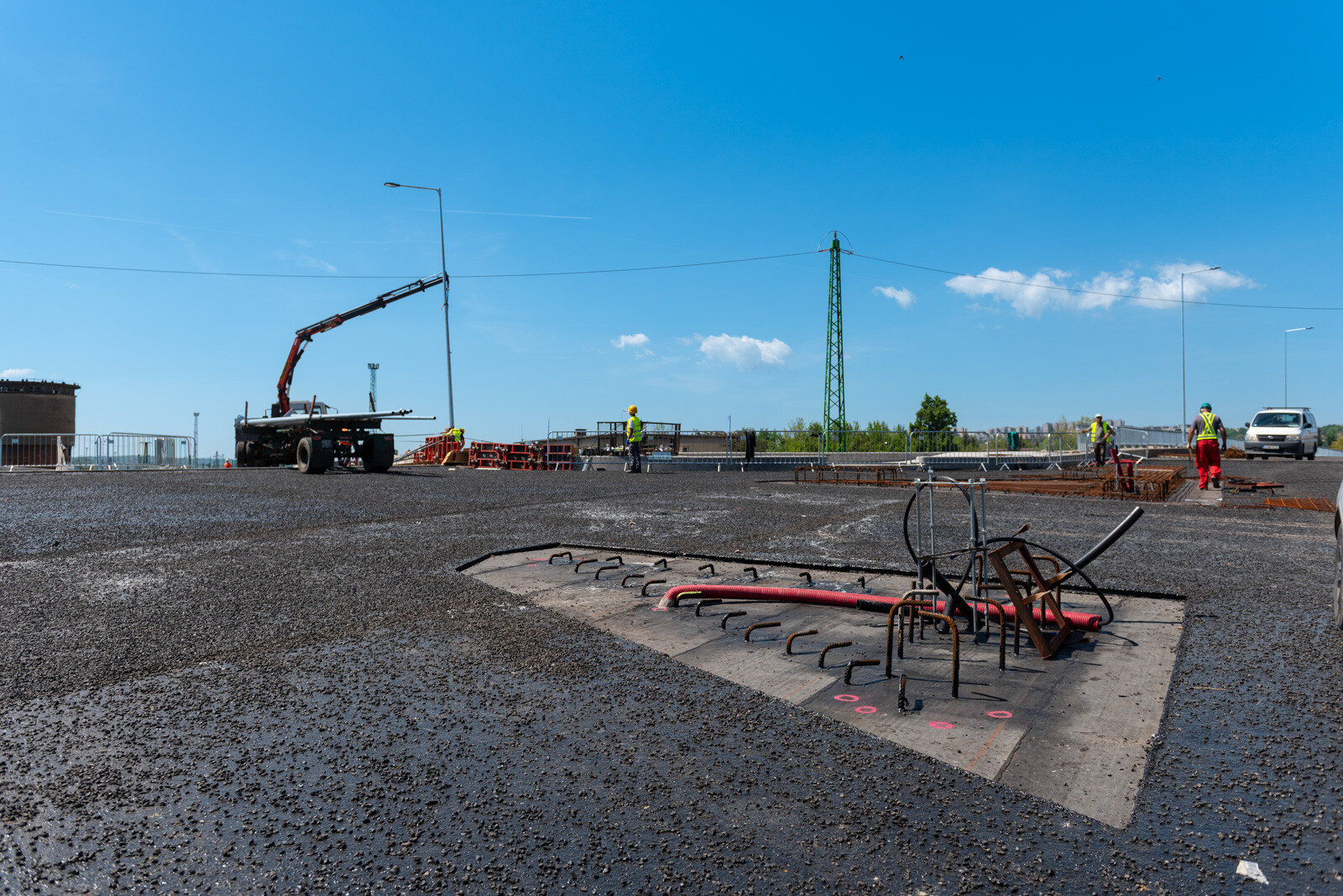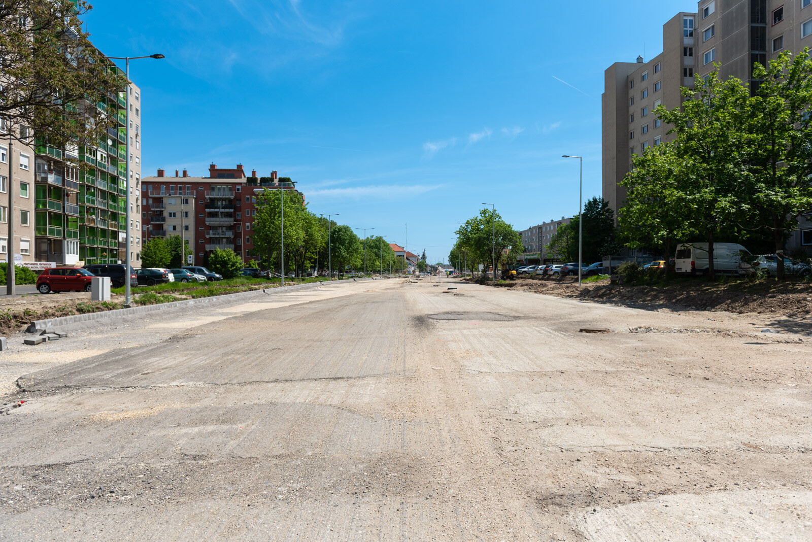 Május 16-án kezdődött a Tiszai Pályaudvar és a Vörösmarty Mihály utcai támfalszakaszok kezdetét összekötő, 7 centiméter rétegvastagságú aszfalt kötőréteg beépítése a teljes útpálya szélességében.