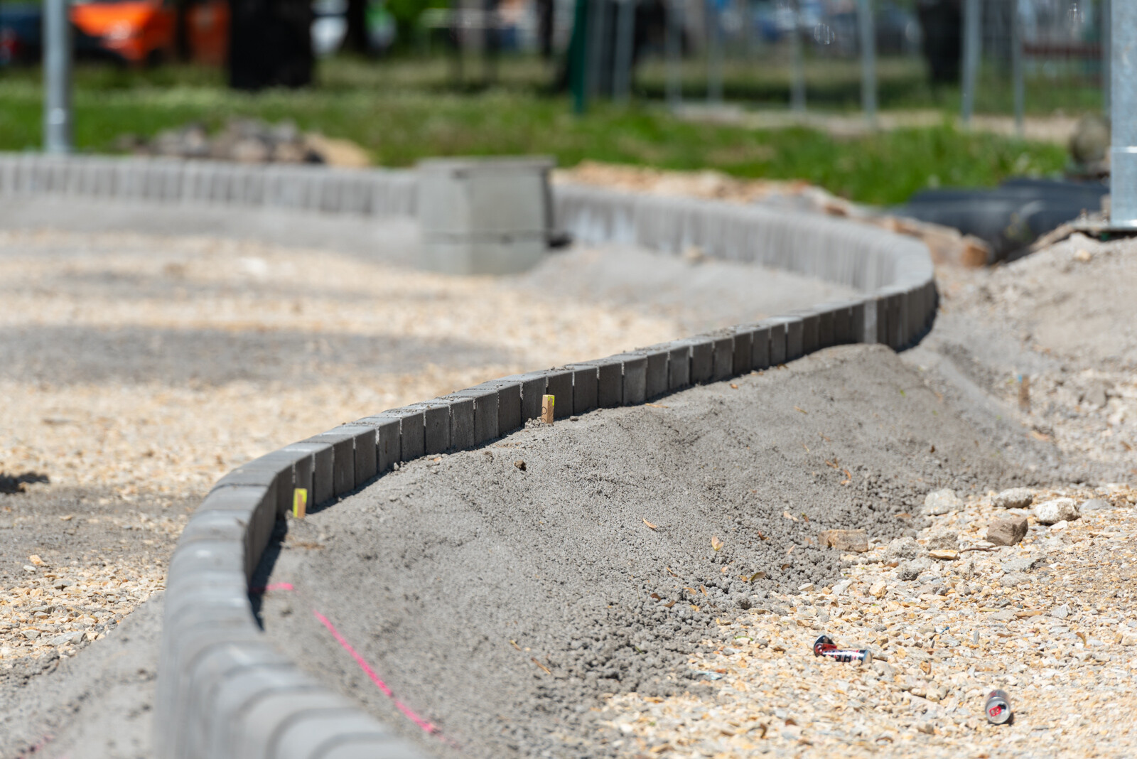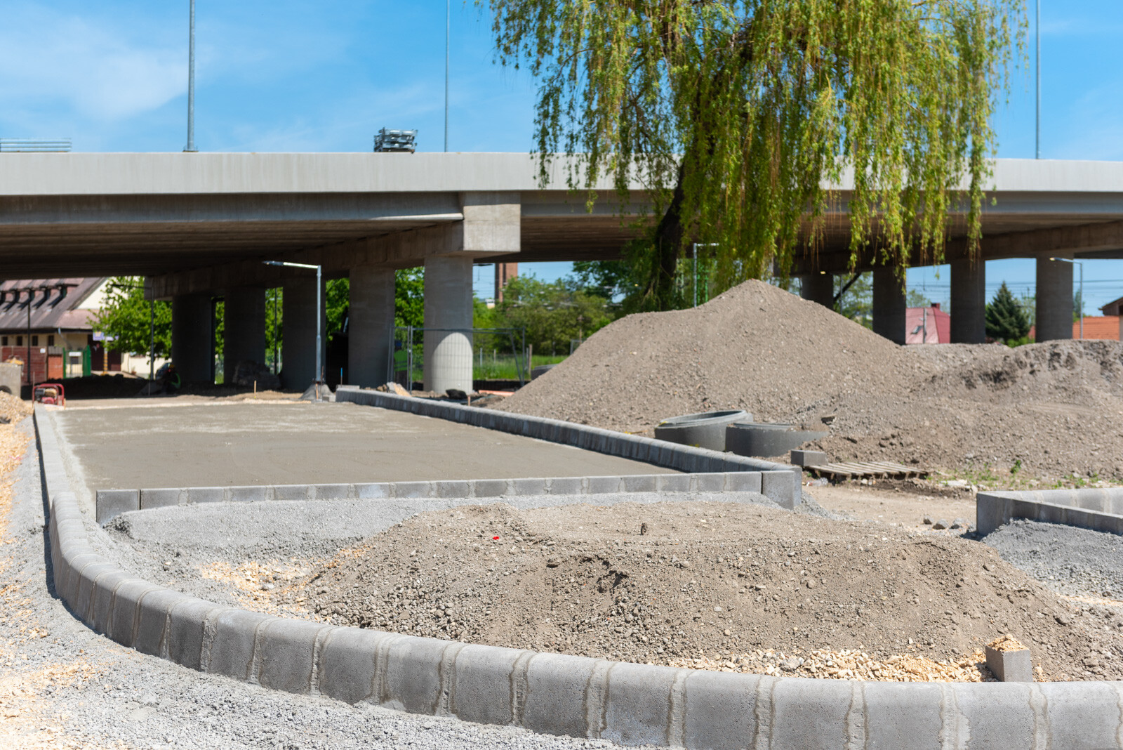 A csomópontban és a Vörösmarty utcán a beépített szegélyek már kirajzolják a végső állapotot.