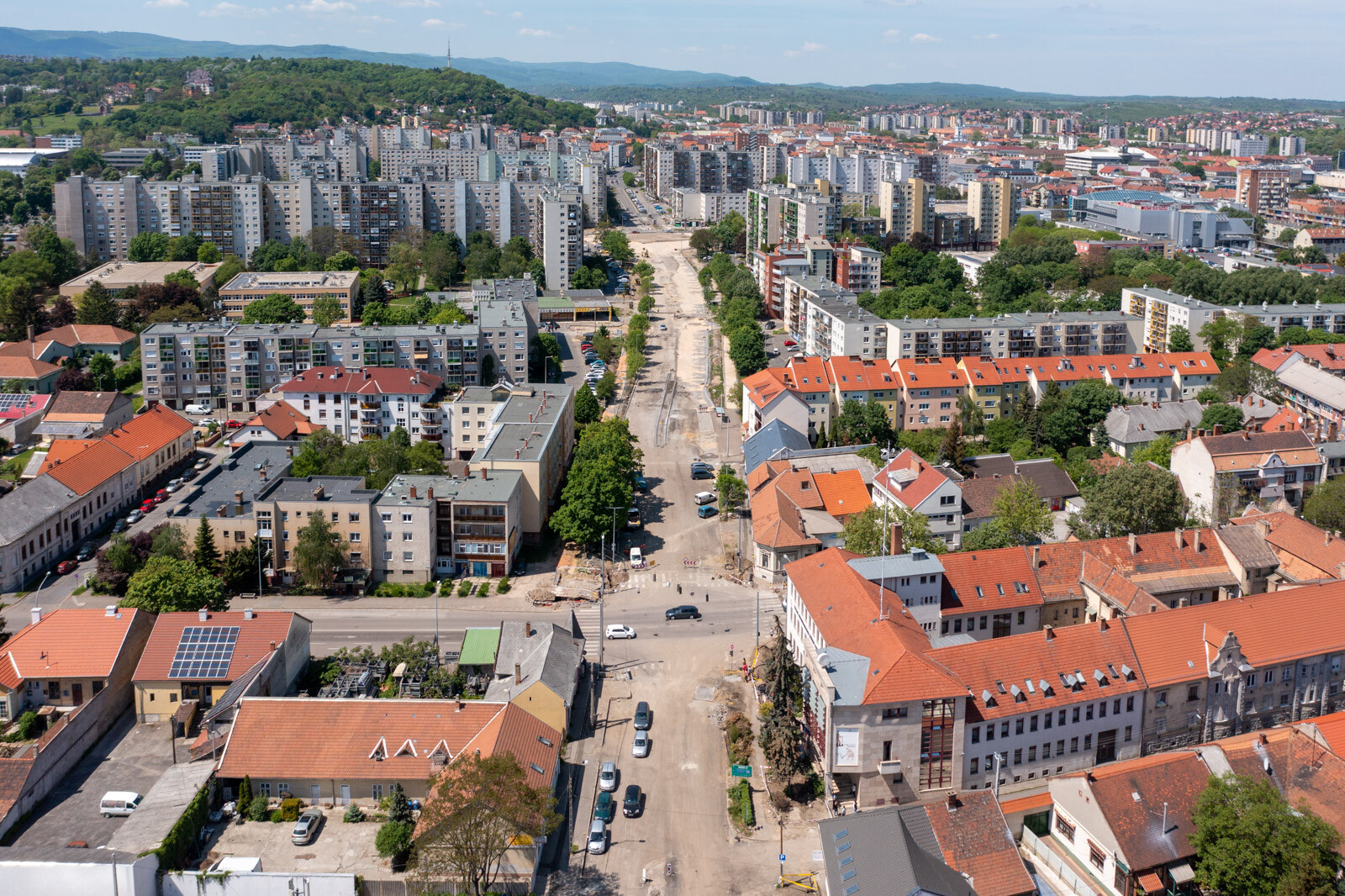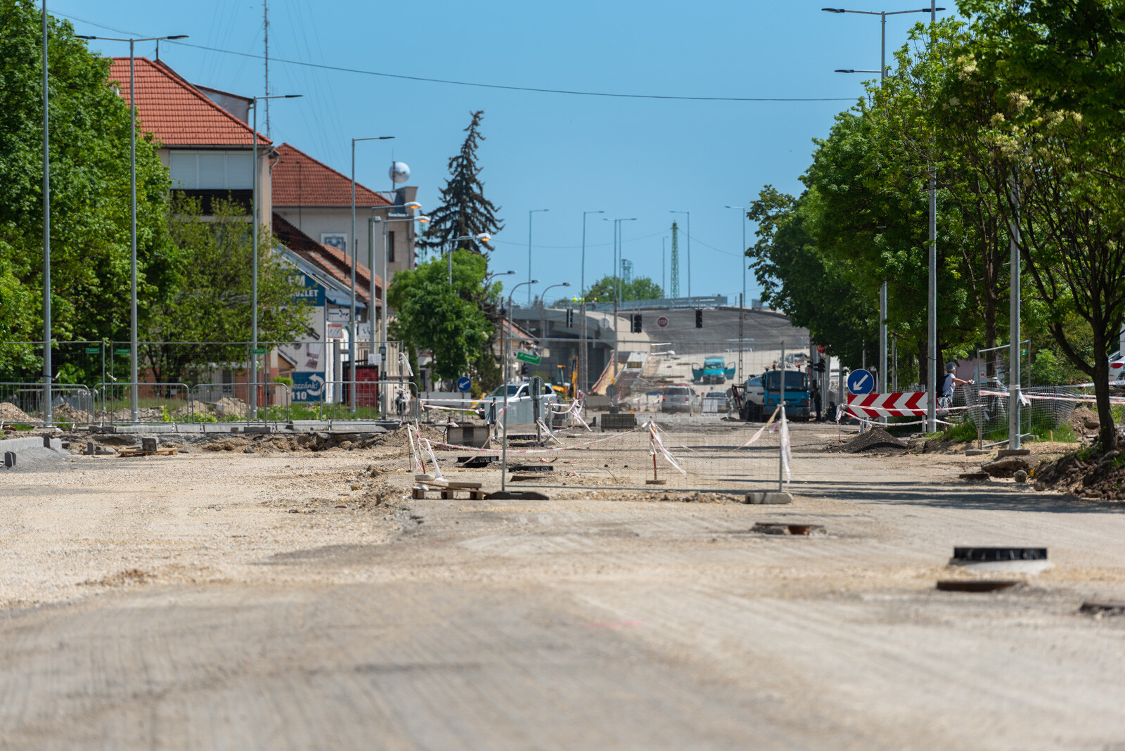 Kecső Tamás projektvezető hozzátette, a Király és a Vörösmarty utca kereszteződésében kiépítendő körforgalom építési munkái előrehaladott állapotban vannak. Júniusban megkezdődnek a körforgalomnak és a Vörösmarty utca szélesítésének a pályaszerkezet építési munkái.