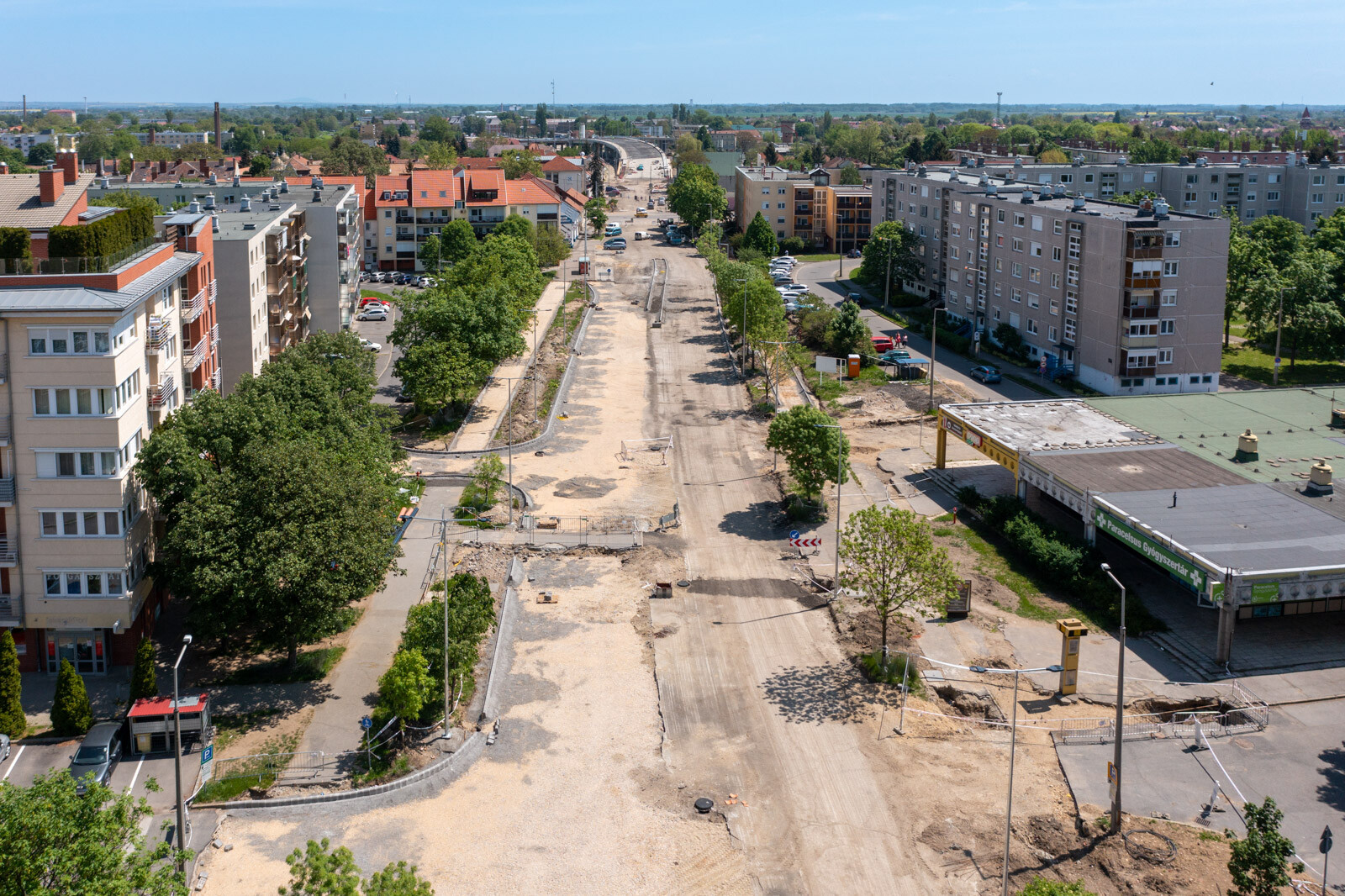 A Soltész-Nagy Kálmán utca és a Tiszai pályaudvar közötti szakaszon szintén előrehaladott állapotot mutatnak az önkormányzati és szervizutak, valamint a 135 férőhelyes P+R parkoló építési munkái, ezen a szakaszon ugyancsak júniusban fognak látványos pályaszerkezet építési munkák történni.