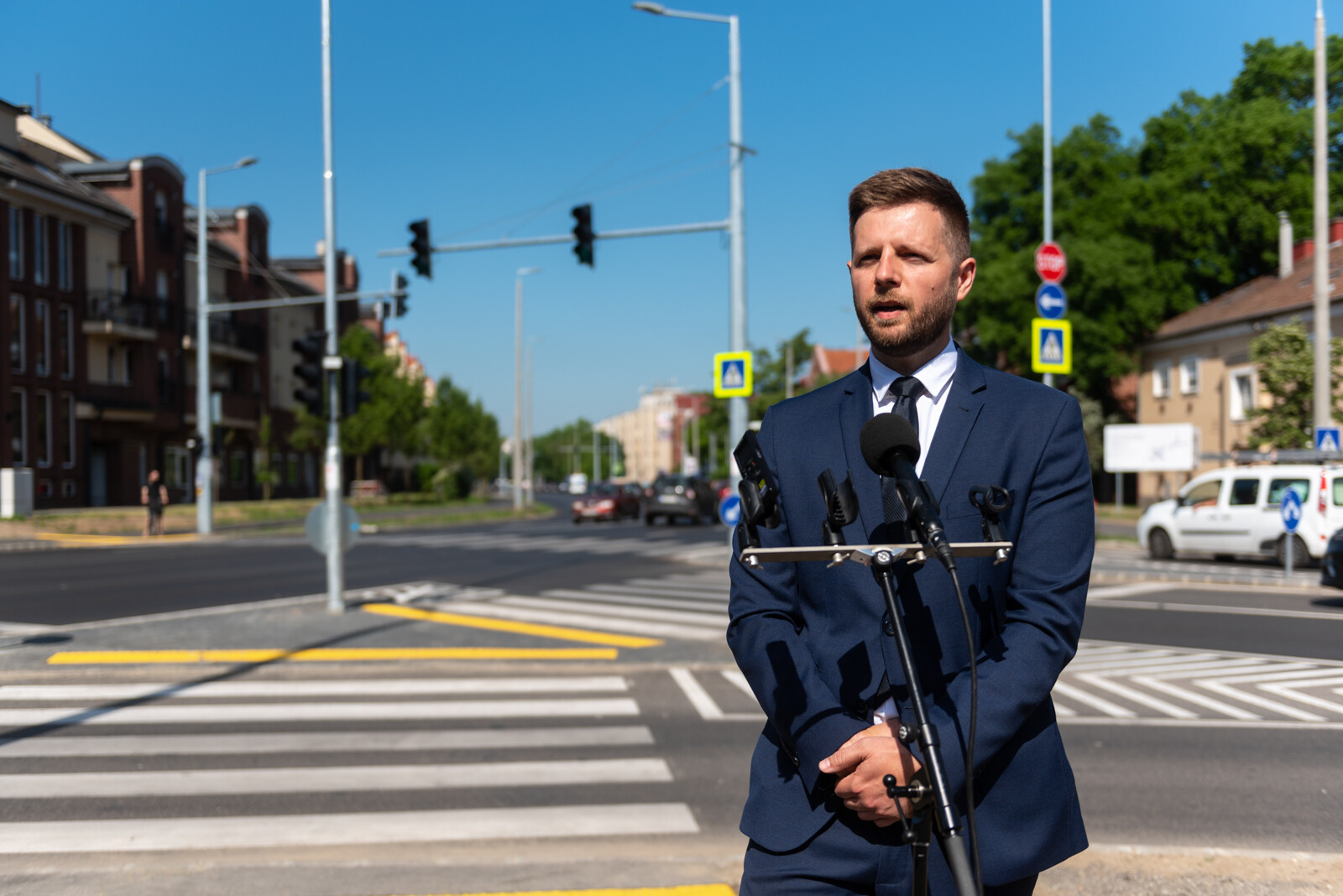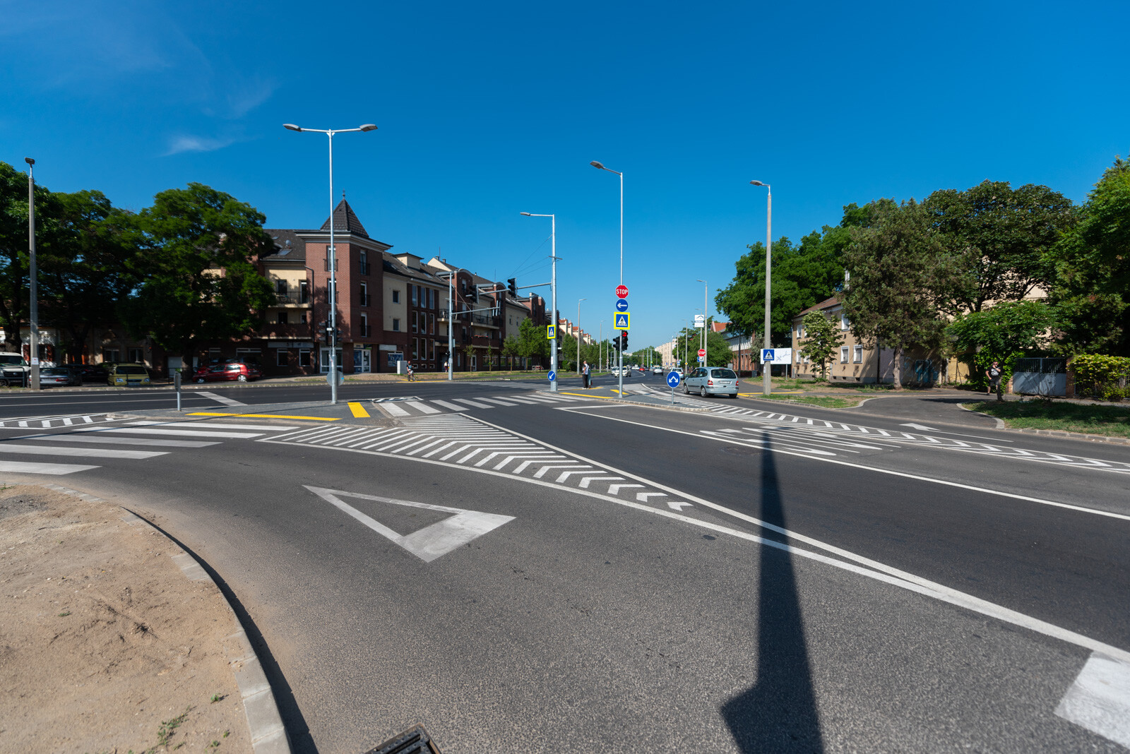 Befejeződött a burkolati jelek felfestése és a jelzőtáblák kihelyezése. Elvégezték a jelzőlámpák beüzemelését és összehangolását, valamint elkészült a főút Nyíl utcai szakaszának gyalogos védőkorlátja is.