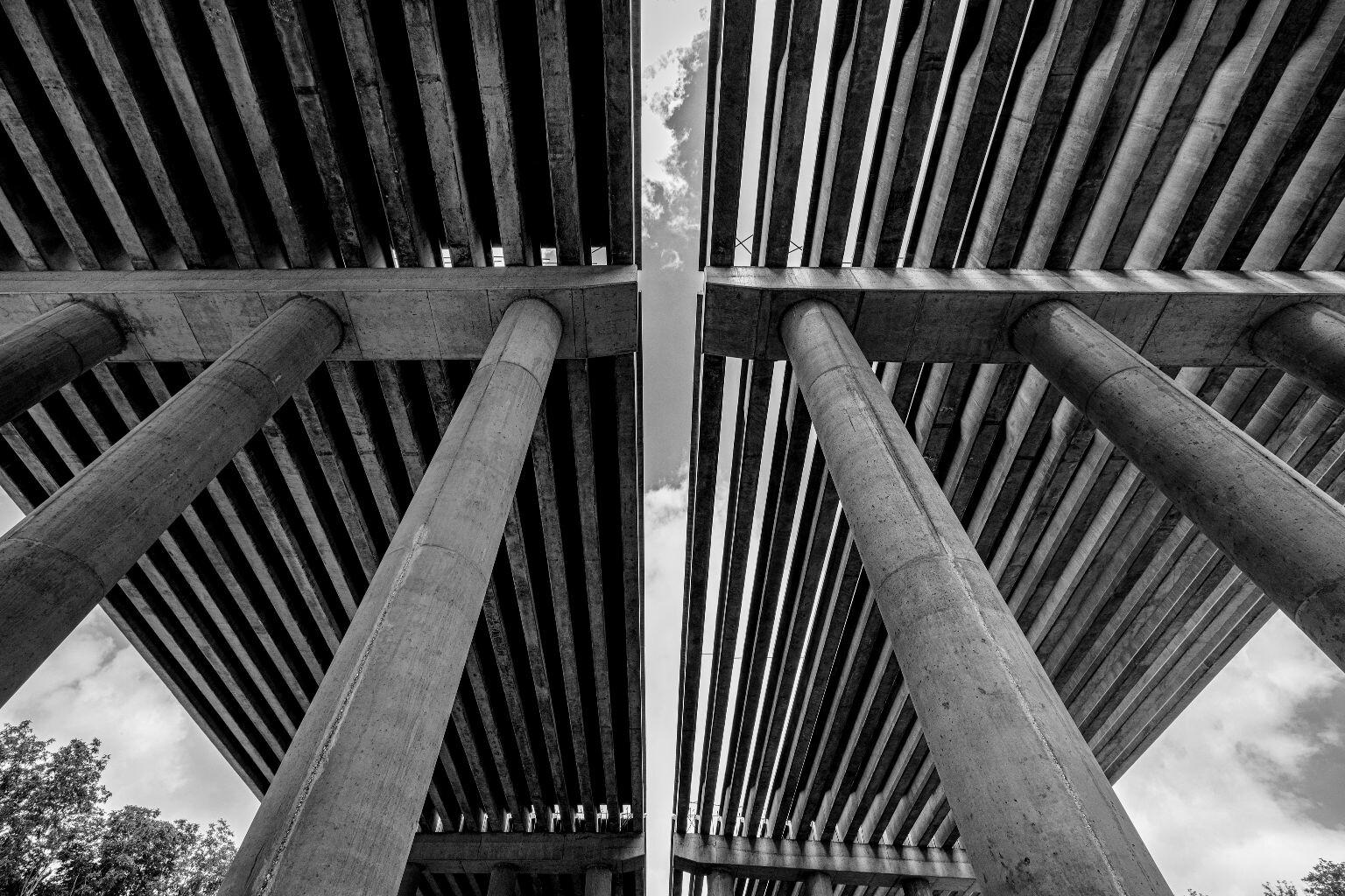 A vadátjáró egy folytatólagos háromtámaszú monolit vasbeton héjszerkezet. Organikus lekerekítő ívei tükrözik a funkcióját, a középső pillérsor karcsúságával és felül tölcsér alakban kiszélesedő formájával egyszerre szerkezetszerű és elegáns alátámasztása a felszerkezetnek.