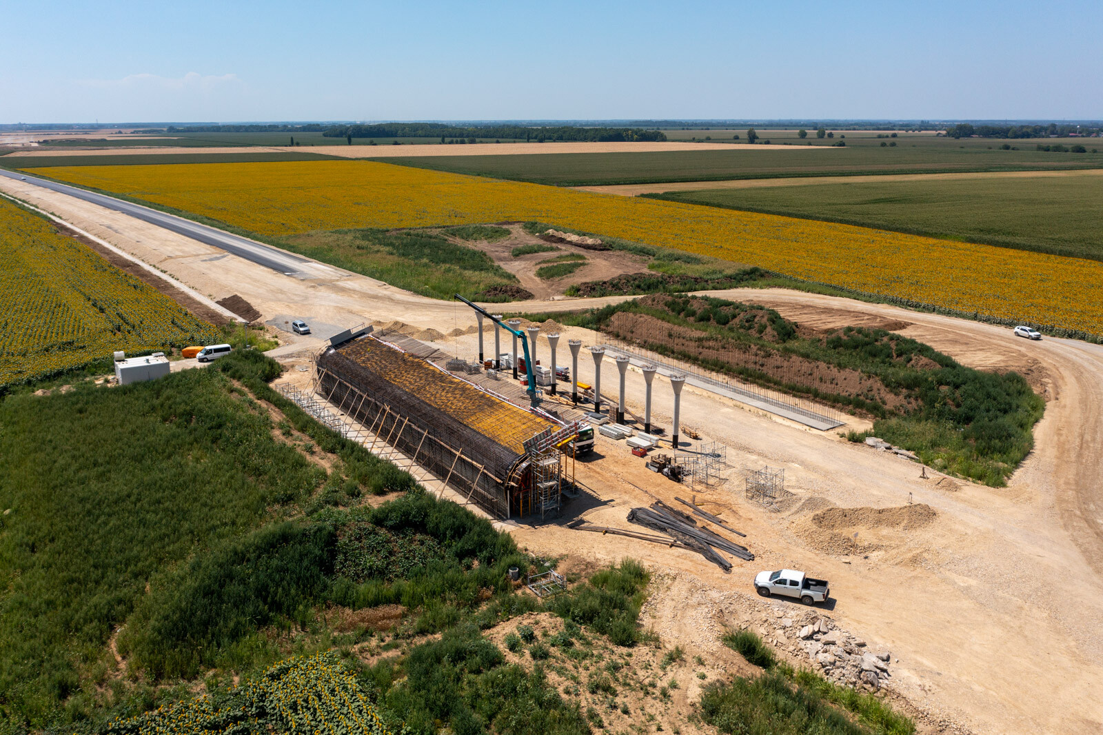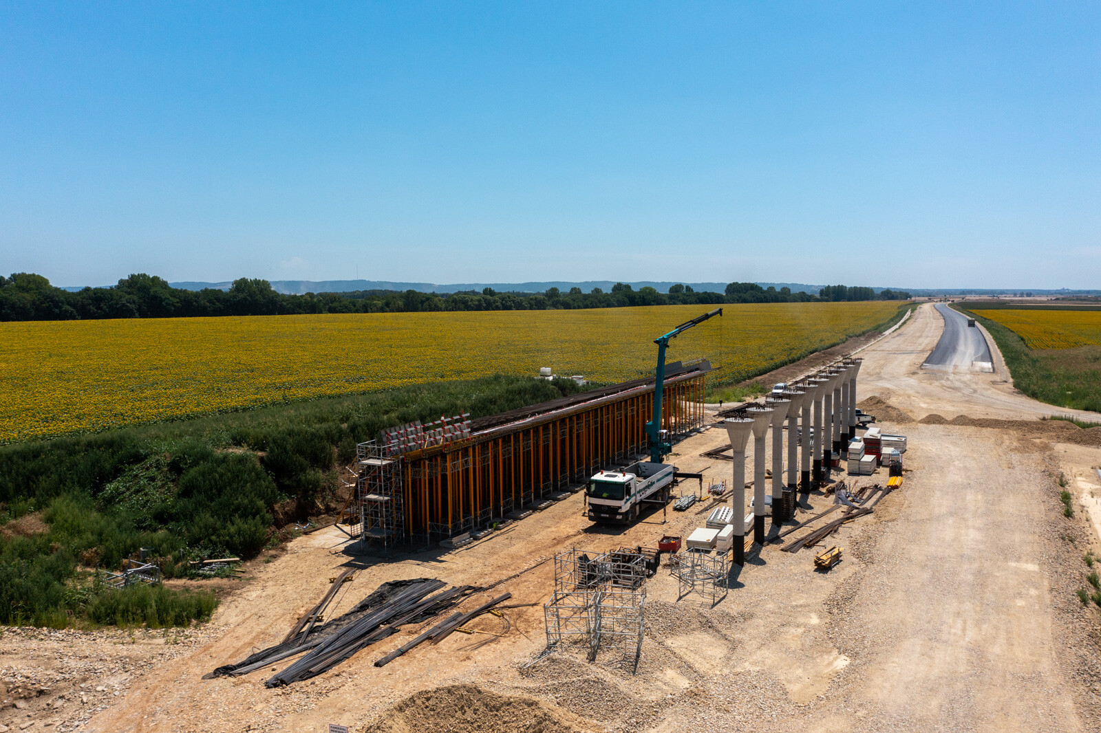 A szakaszt több jelentős műtárgy jellemzi, korábbi cikkünkben átfogó képet kaphattak az olvasók a Villány-Mohács vasútvonalon átvezető híd, illetve a Szilvás-patak feletti völgyhíd építéséről. A völgyhíd tervezése a FŐMTERV Zrt. nevéhez fűződik, de az érintett szakaszon további munkákkal is megbízta a céget a kivitelezést végző konzorcium.