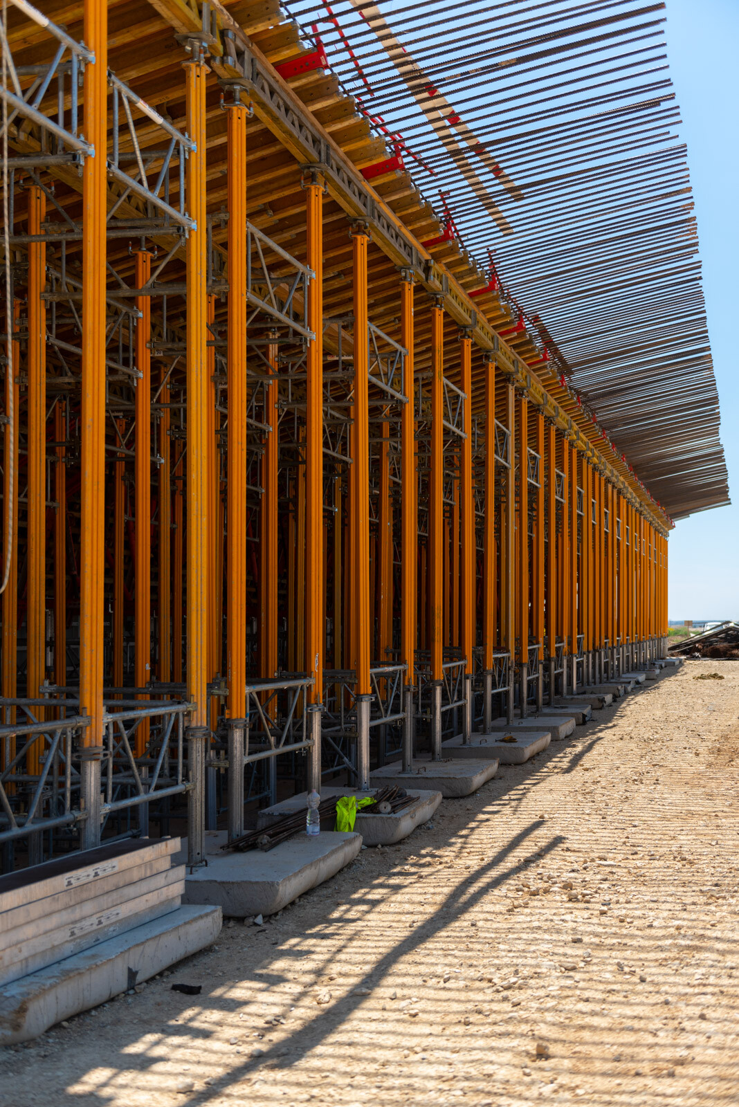 a FŐMTERV számára egyedi feladatot jelentett a zsaluzat alapozásának megtervezése az újra felhasználhatóság és a különleges geometriai igények figyelembevételével.