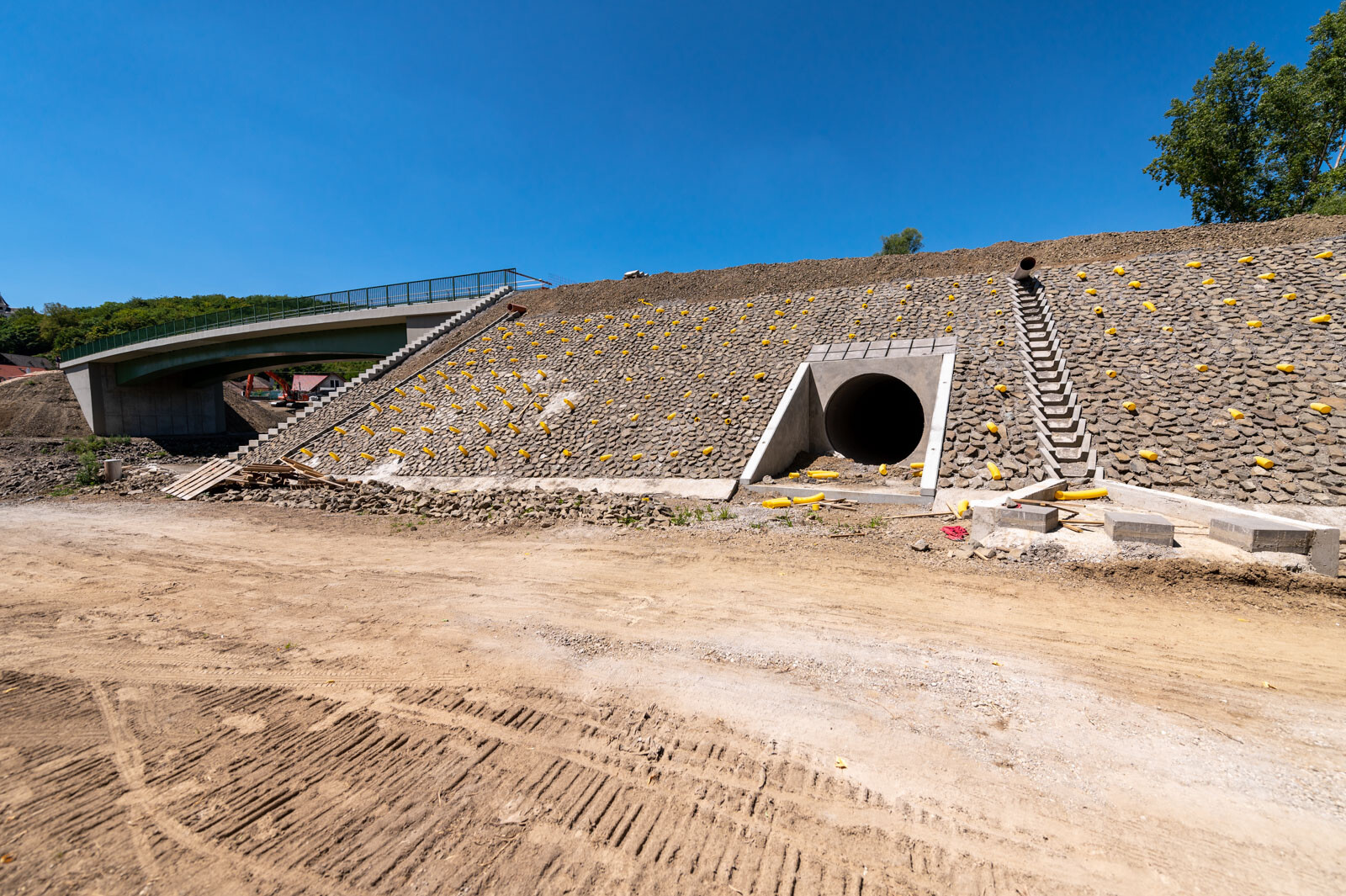 Végezetül a projekt III. részében, az Ipoly-hídhoz szlovák oldalról csatlakozó, 175 méteres út építésénél is a tervek szerint haladtak a kivitelezés munkáival. Az úthoz kapcsolódóan folytatódtak a közműkiváltási munkák és a szlovák oldali hídfőhöz csatlakozó háttöltés építése is.