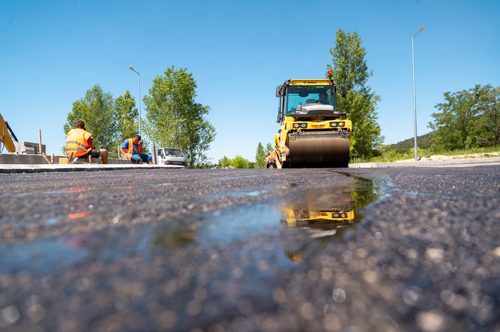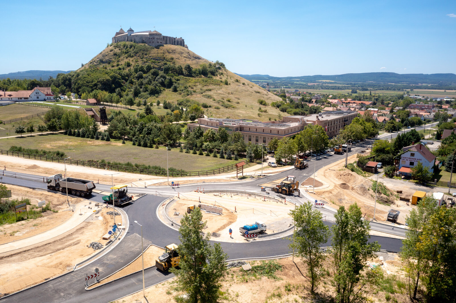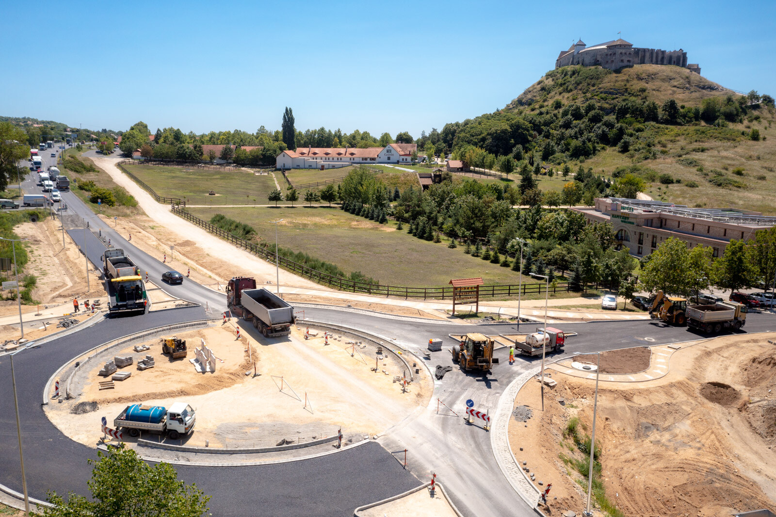 Az útburkolat legfelső rétegét is beépítették Sümeg újonnan épülő körforgalmában. A munkálatokat július 23-24-én végezték el, emiatt a 84. sz. főutat lezárták, a forgalmat a városon keresztül terelték.