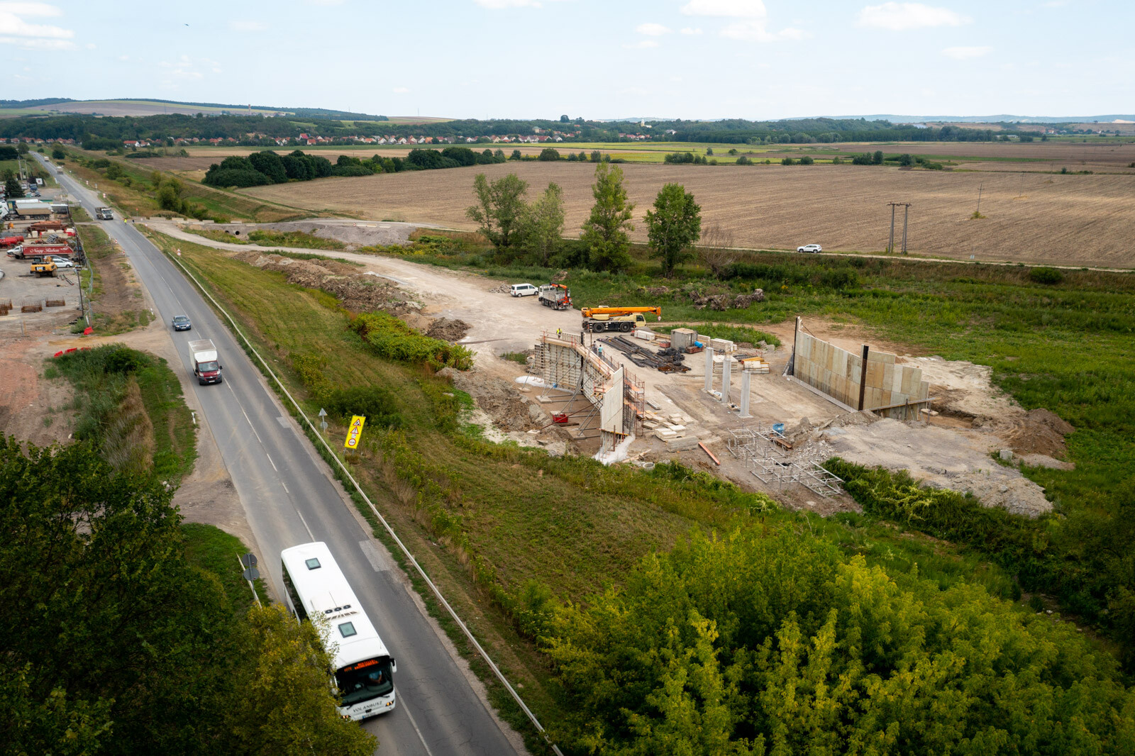 A SWIETELSKY Magyarország Kft. szakaszán a közmű kiváltások is előre haladtak. A gázvezeték kiváltása a múcsonyi körforgalom mellett elkészült, az elektromos kiváltások kivitelezése folyamatban van, az oszlopok alapozási munkái zajlanak. A szennyvízkiváltás munkái a napokban kezdődnek.