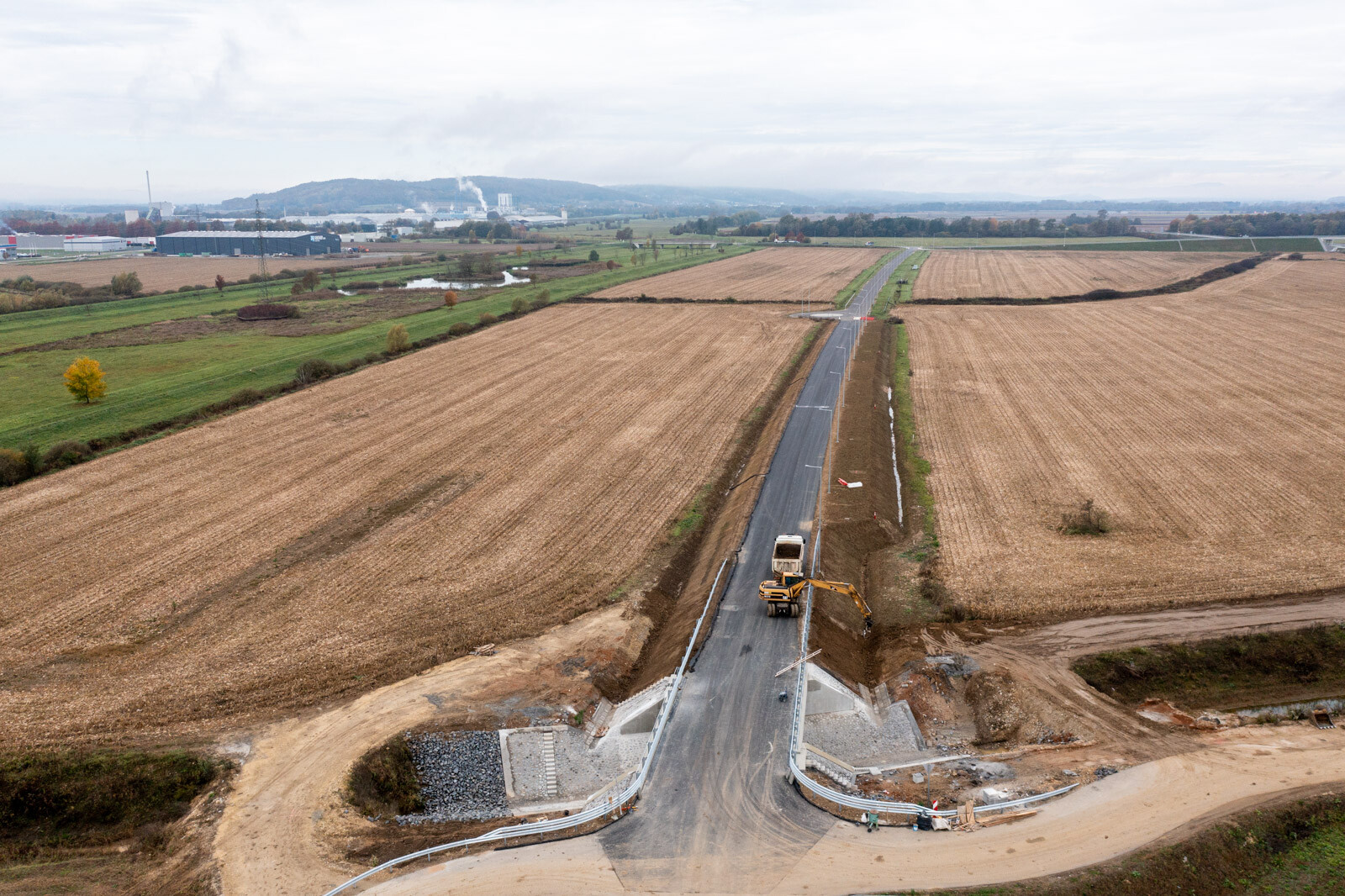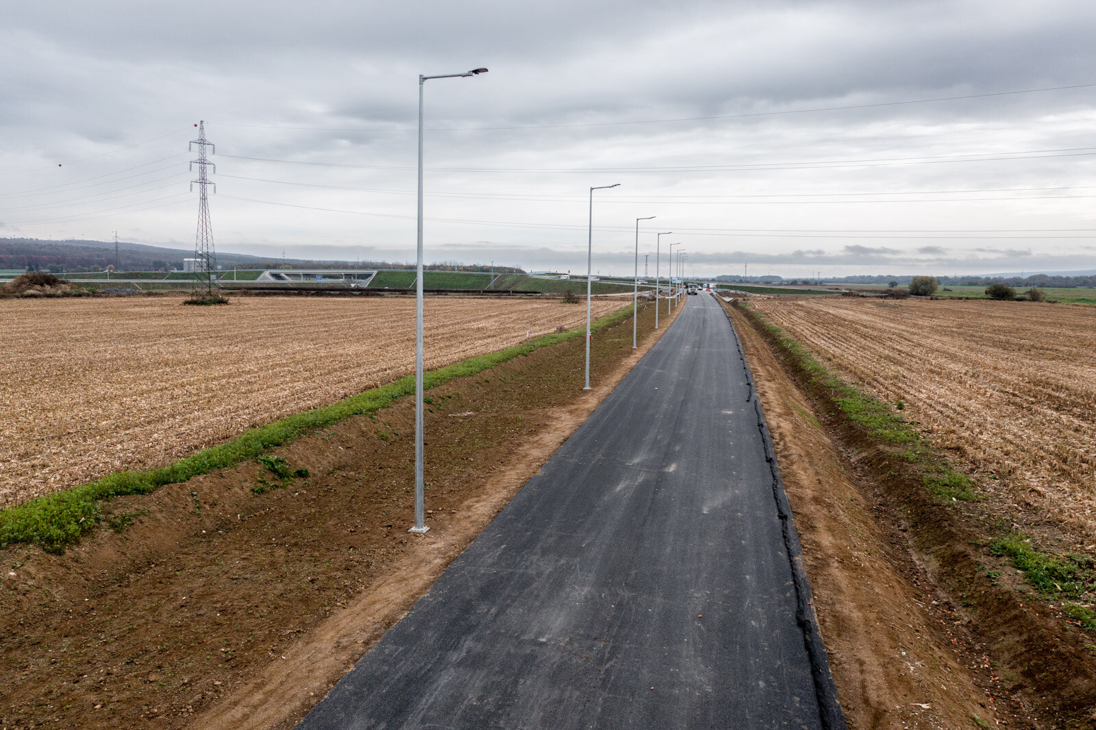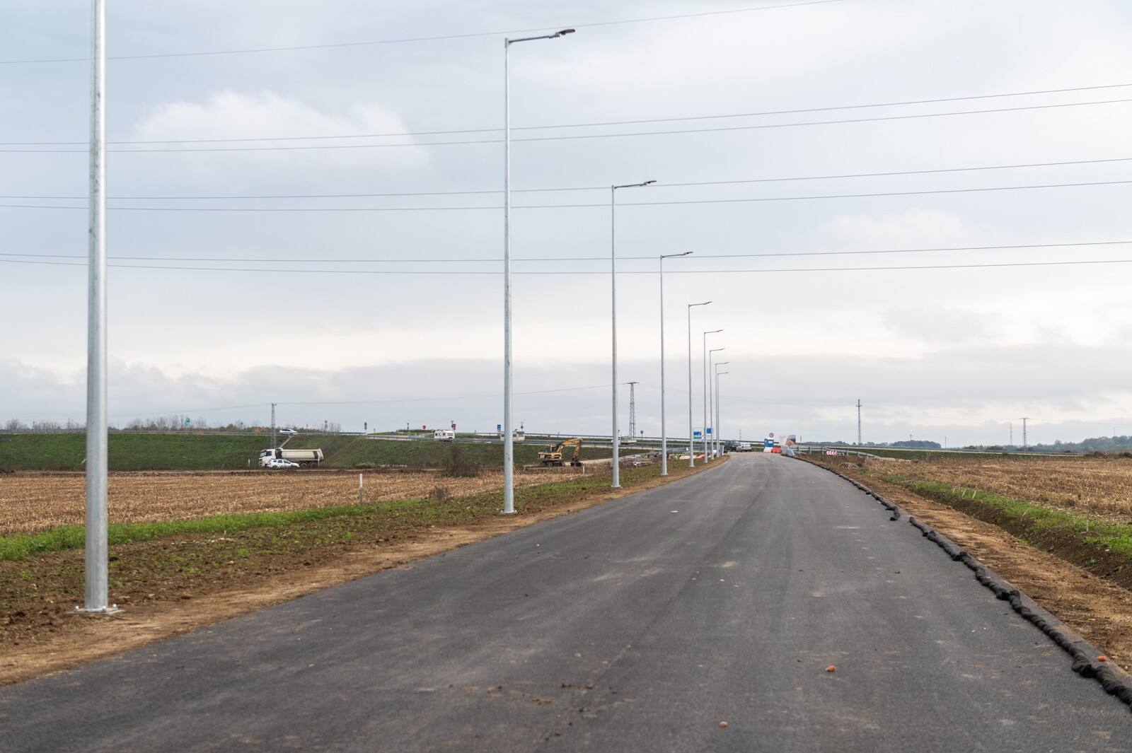 A bekötő út első része még az M80-as autóúttal együtt, uniós forrásból megépült; ezt teszi teljessé a hazai forrású fejlesztés a Duna Aszfalt Zrt. kivitelezésében.