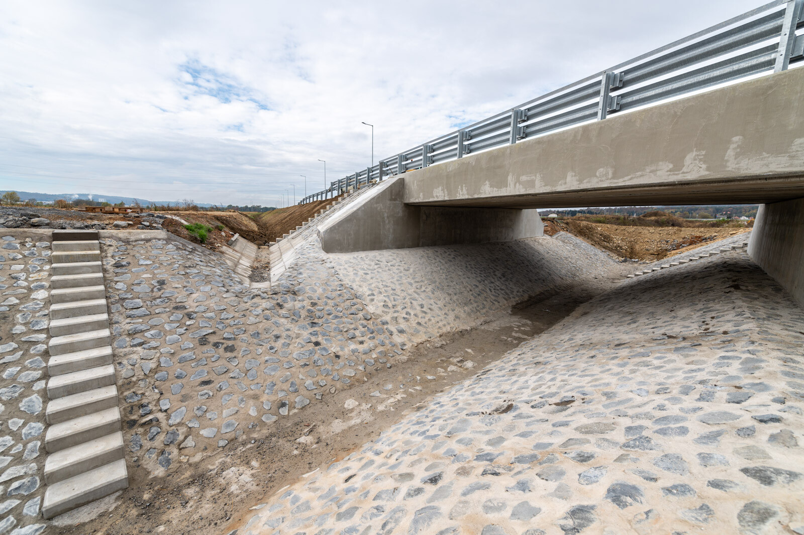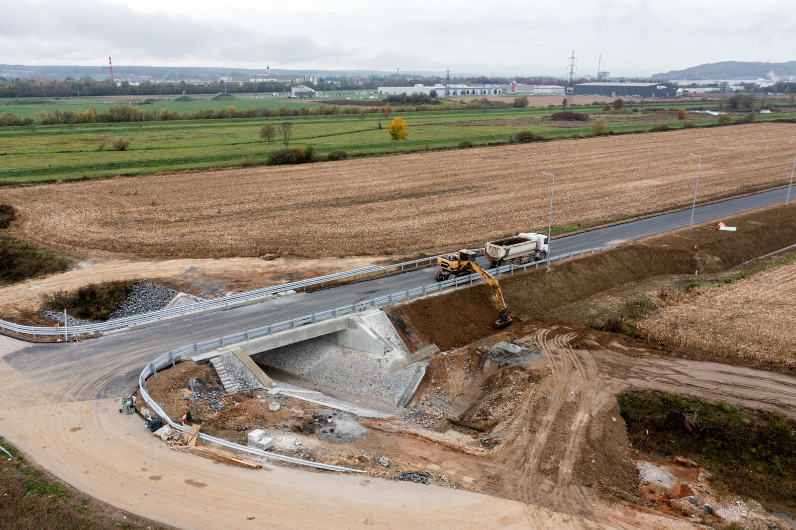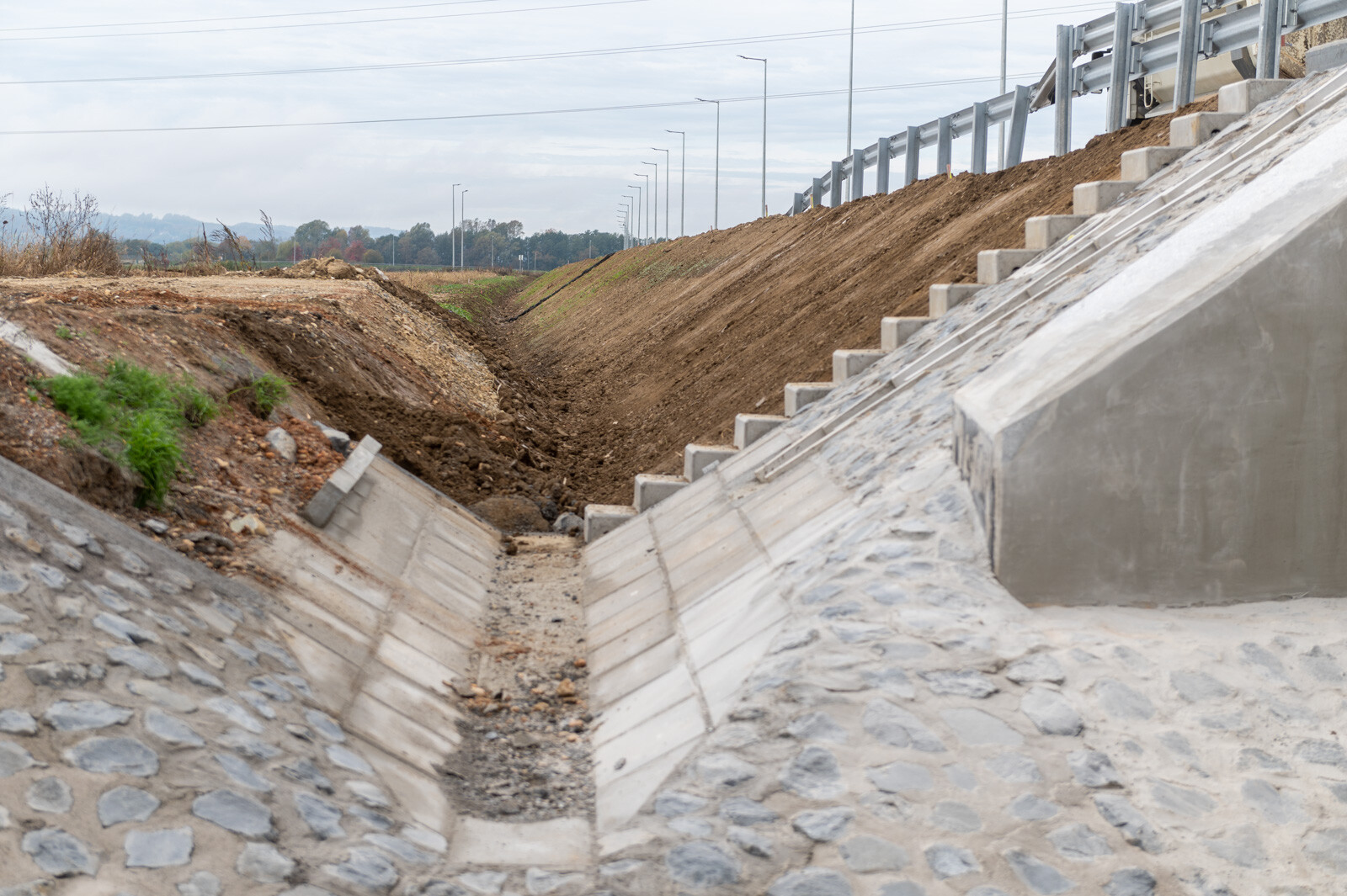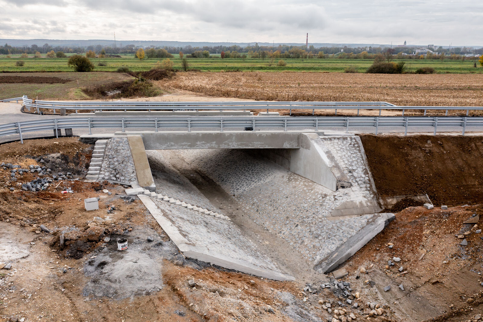 A NIF Zrt. által megadott információk szerint a lapunk által legutóbb májusban bemutatott projektben a Rábafüzesi-patak megépült felüljáróján már elkészült a hídszegély melletti öntött aszfalt kiöntés is. Emellett folyamatban van a híd alatti rézsű kőburkolat készítése, a híd vizsgáló lépcsőinek elhelyezése, a rézsűk humuszolása és füvesítése, valamint a híd és a csatlakozó út szalagkorlátjainak az építése is. A beruházásban az útszakaszhoz kapcsolódó közvilágítási, vízvezeték és szennyvízhálózat is megvalósul.
