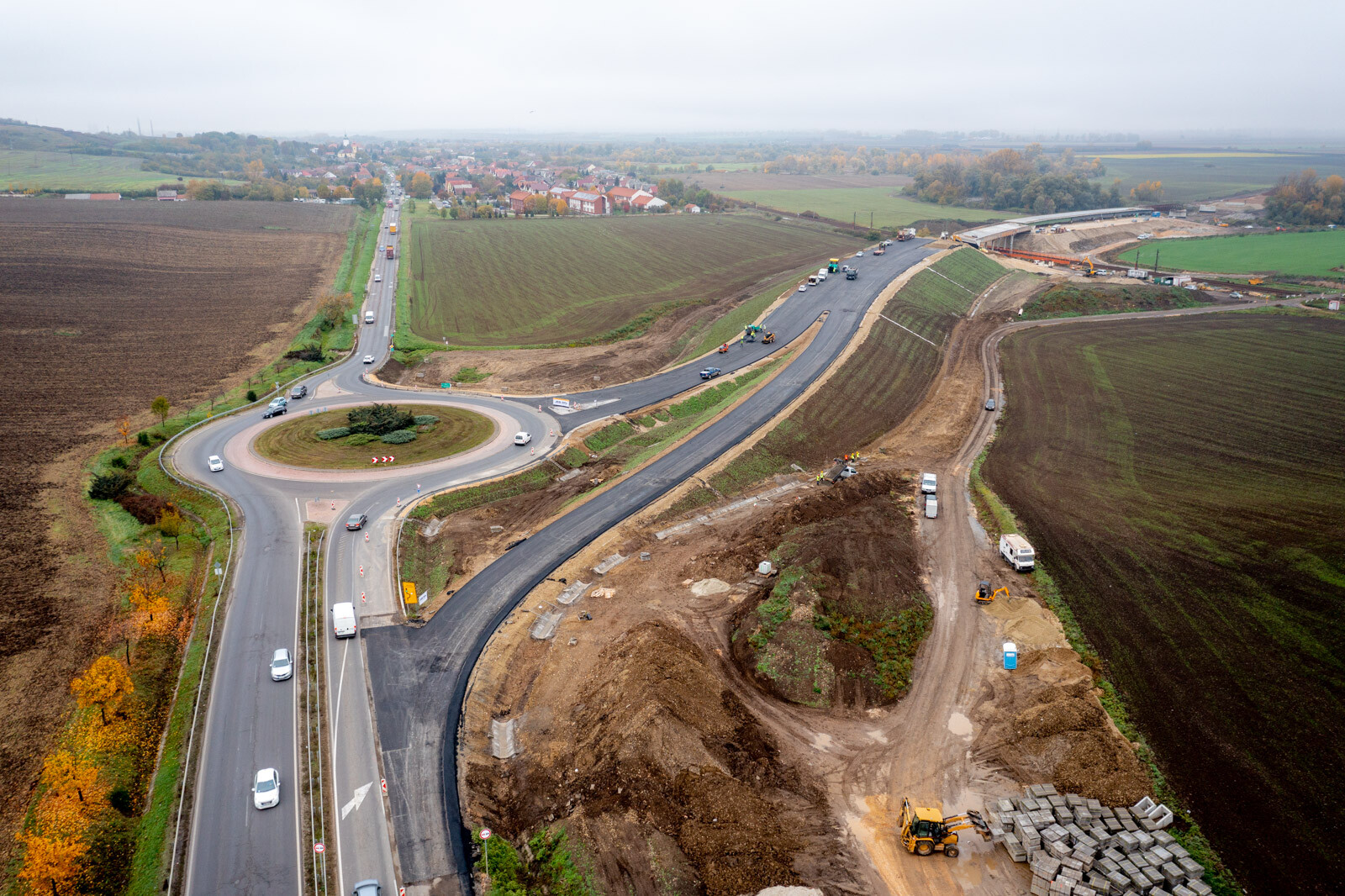 A szakasz elején és közepén megindult a pályaszerkezet építése is, és a CKt réteget követően már az aszfalt alap- és kötőréteg próbaszakaszok készültek. Mindemellett ideiglenes út is épül: a 27-es útnál elkészülő körforgalom átadásához van szükség egy terelő út kialakítására az építkezés idejére, itt szintén elindult a kivitelezés. Emellett a 2606-os út körforgalmának földmunkái is elkezdődtek. Az építkezés a forgalmat 2023 tavaszáig ezeken a helyszíneken várhatóan nem fogja befolyásolni.